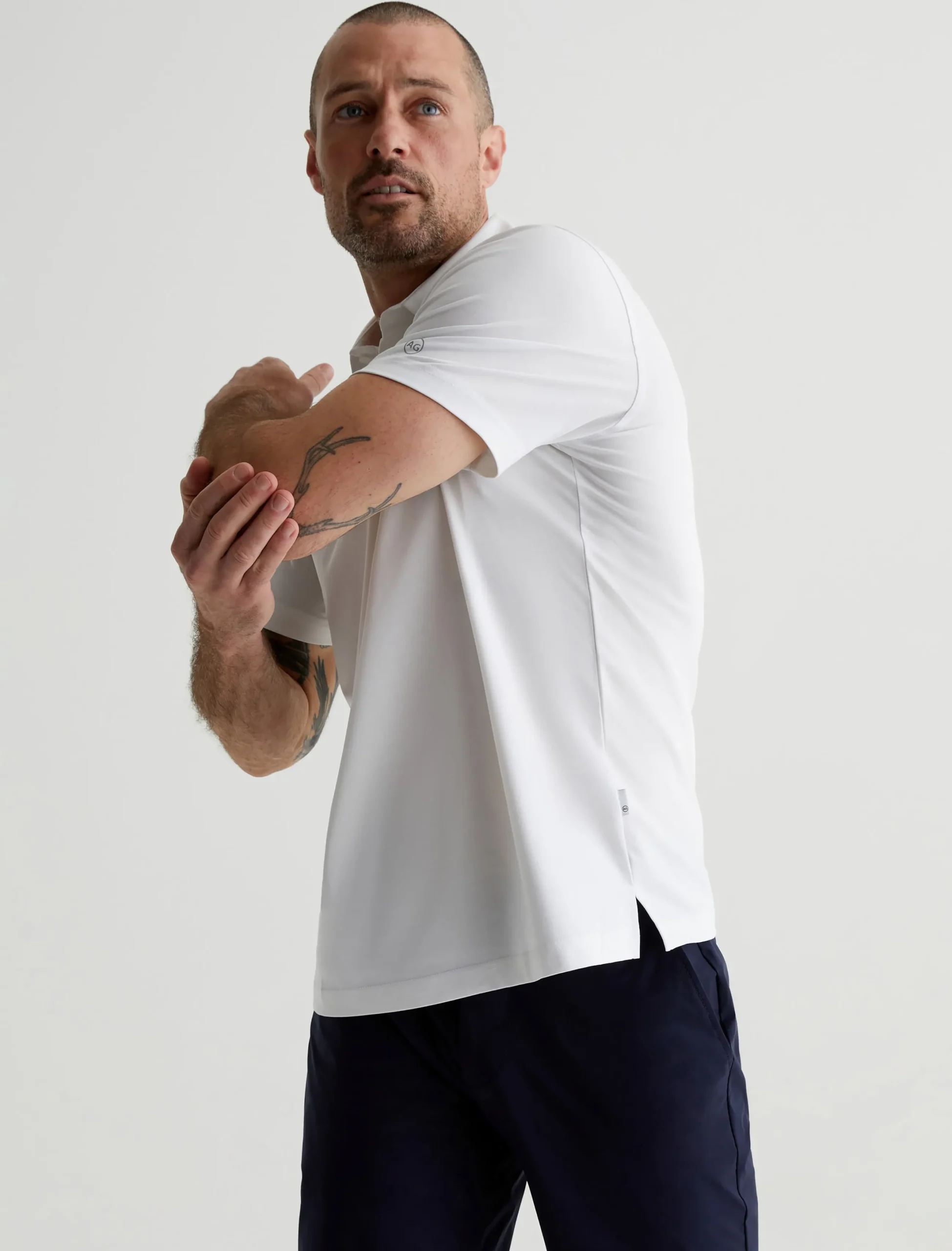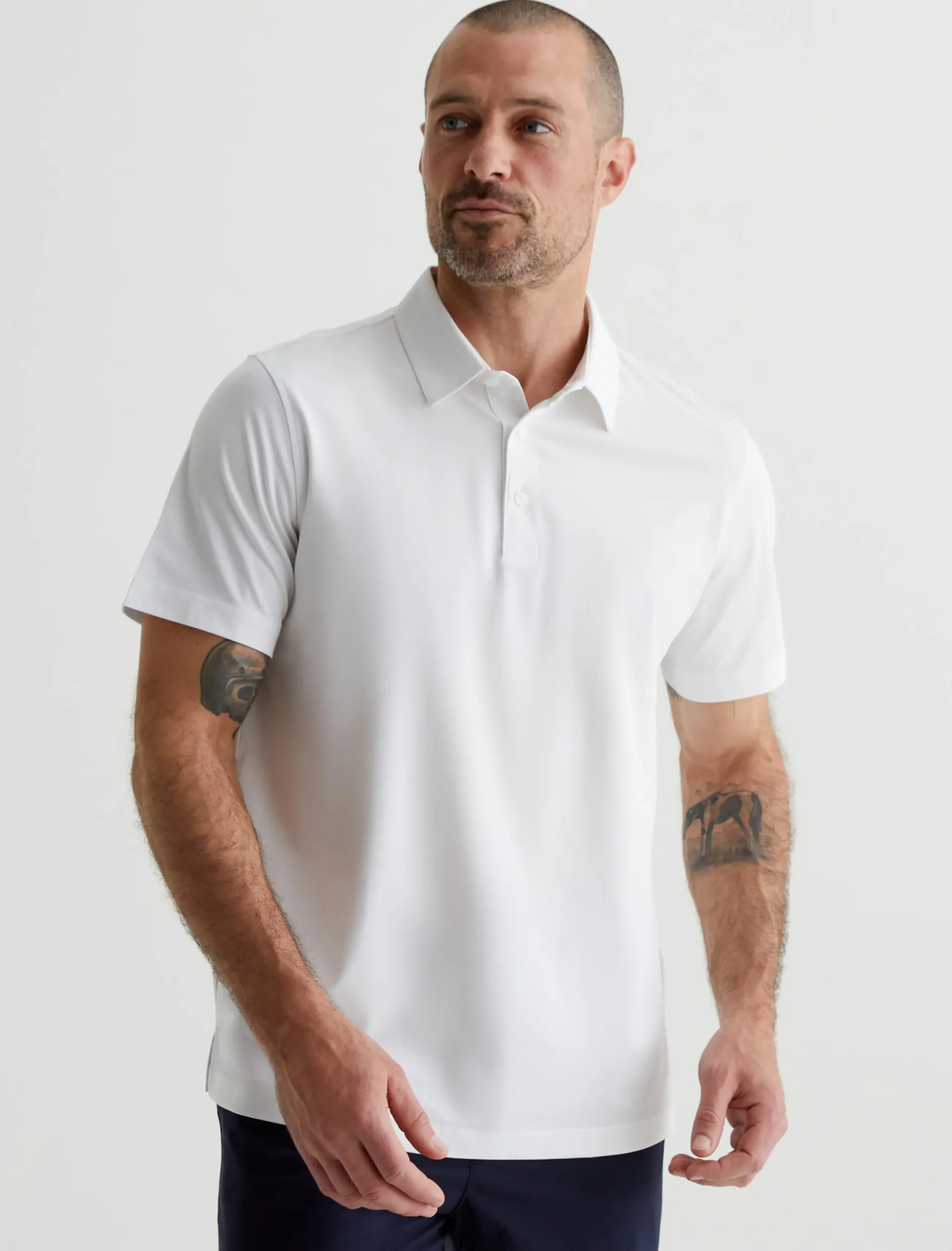 Stay cool and comfortable in any situation with the Ace Active Performance Polo. Designed for a classic short-sleeve fit in white, the style features Performance Stay-Dry Jersey that combines the softness of cotton with high-tech moisture-wicking construction. It’s designed to keep you drier than the typical jersey. Details include a spread collar, button placket, and a silicone heat transfer logo on the left sleeve.
