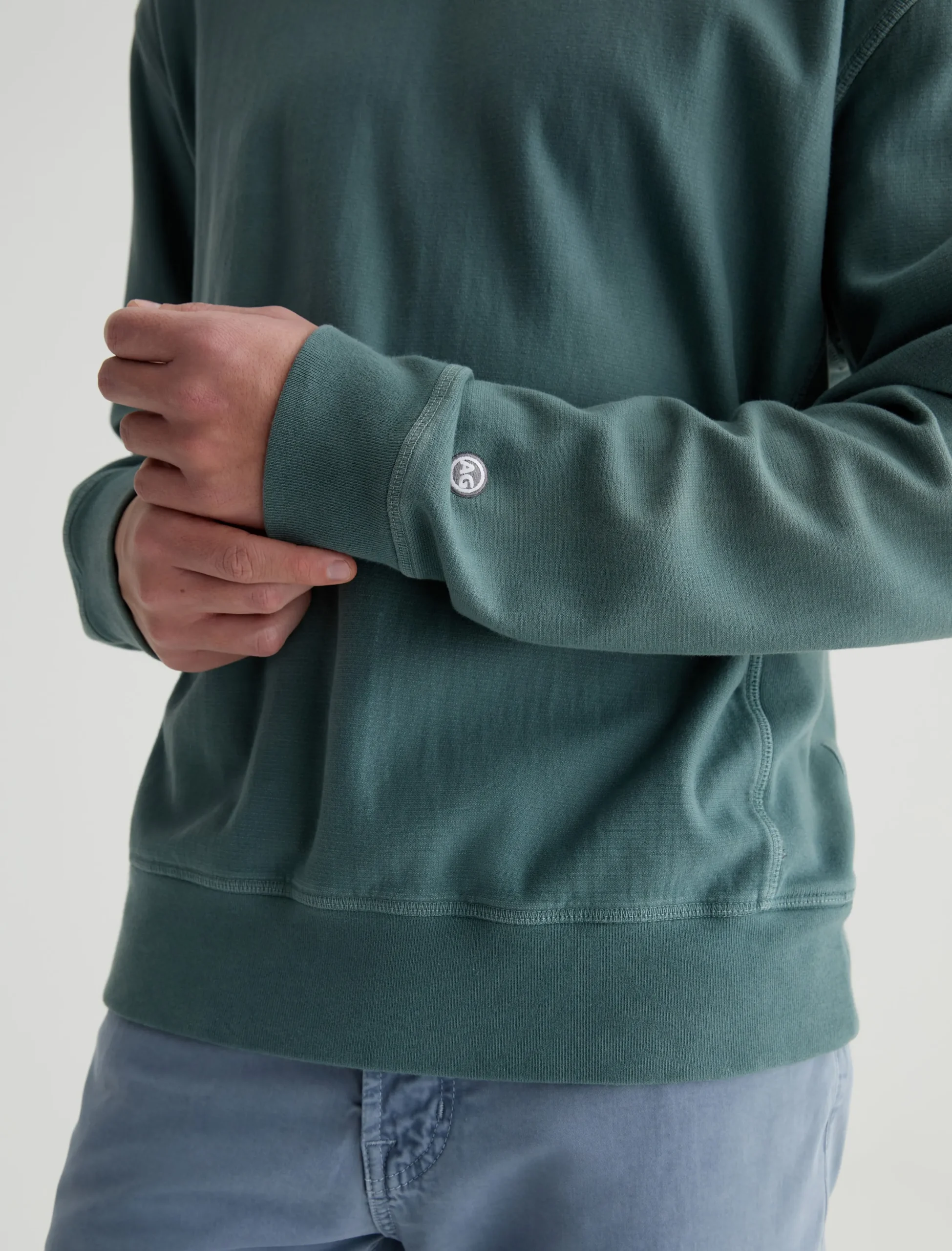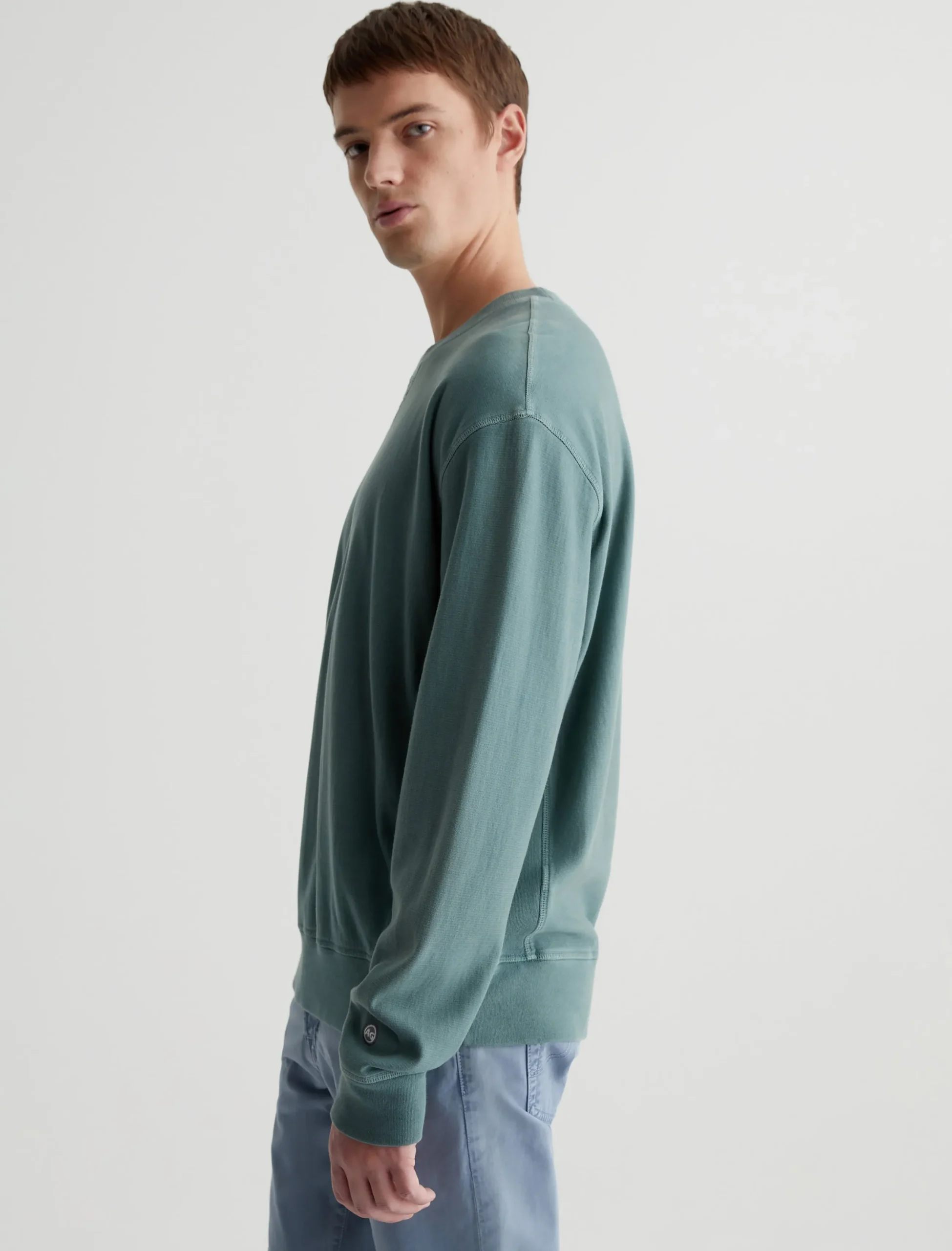 The Arc Panelled Sweatshirt is a classic crewneck pullover in a relaxed fit. Made from 100% cotton Essential Luxe Terry that’s been sulfur-dyed for a slightly faded green color, this men’s long-sleeve style has ribbed side panels, rib trim, and overlock stitching at the seams.