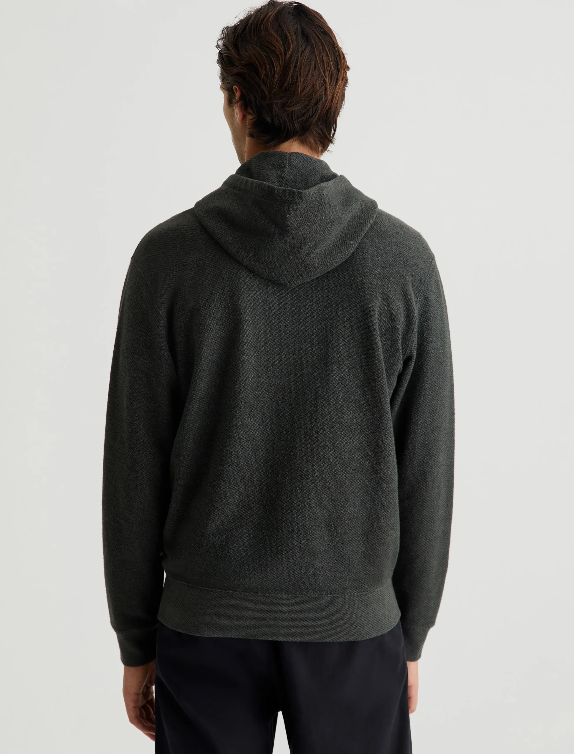 The Arc Zip Hoodie is your new go-to for casual days. It’s relaxed and easy to wear in 100% cotton terry with the textured side facing out. Done here in dark green with a speckled appearance, this cozy layer features an adjustable drawstring hood, roomy pockets at the front, and soft banded trim.