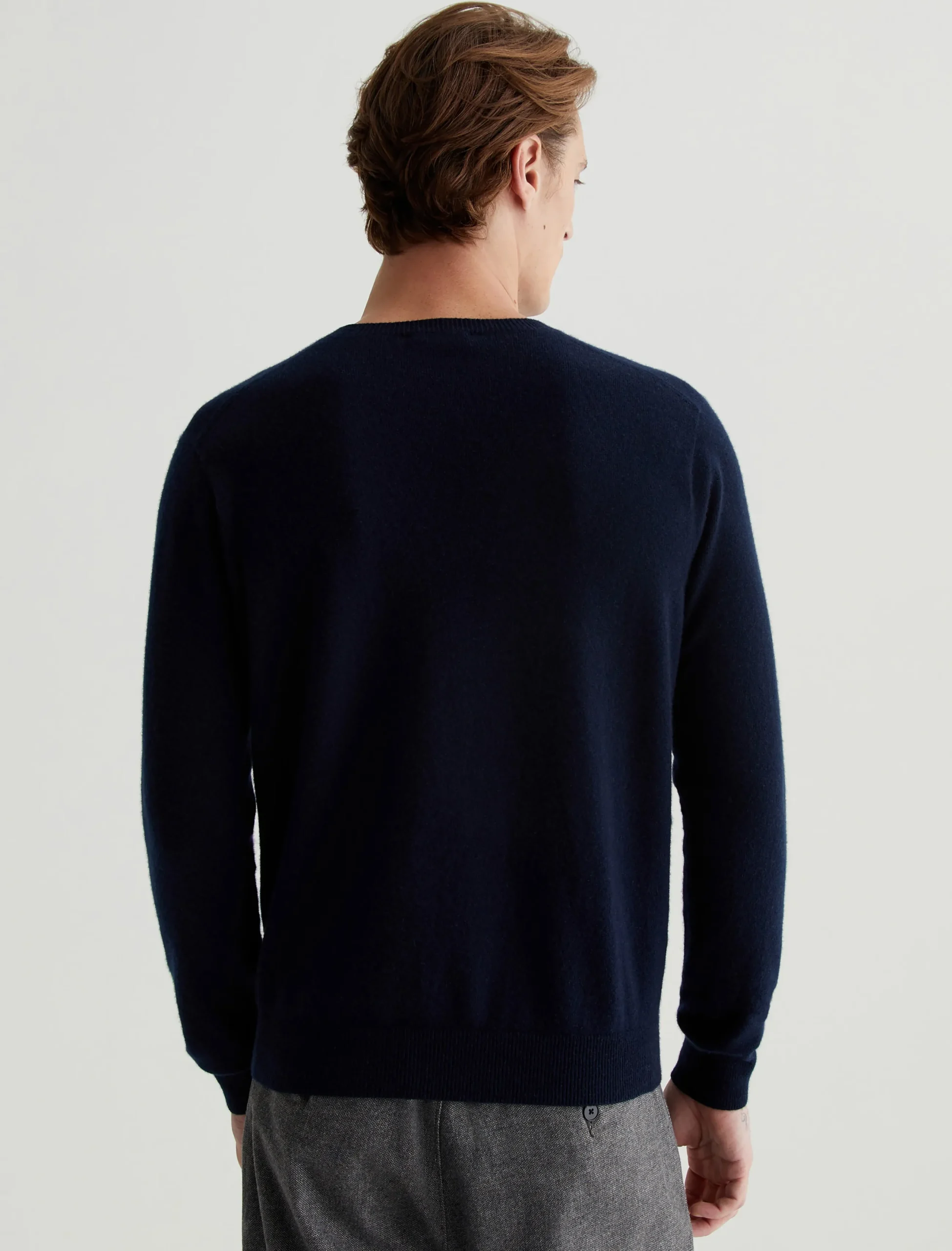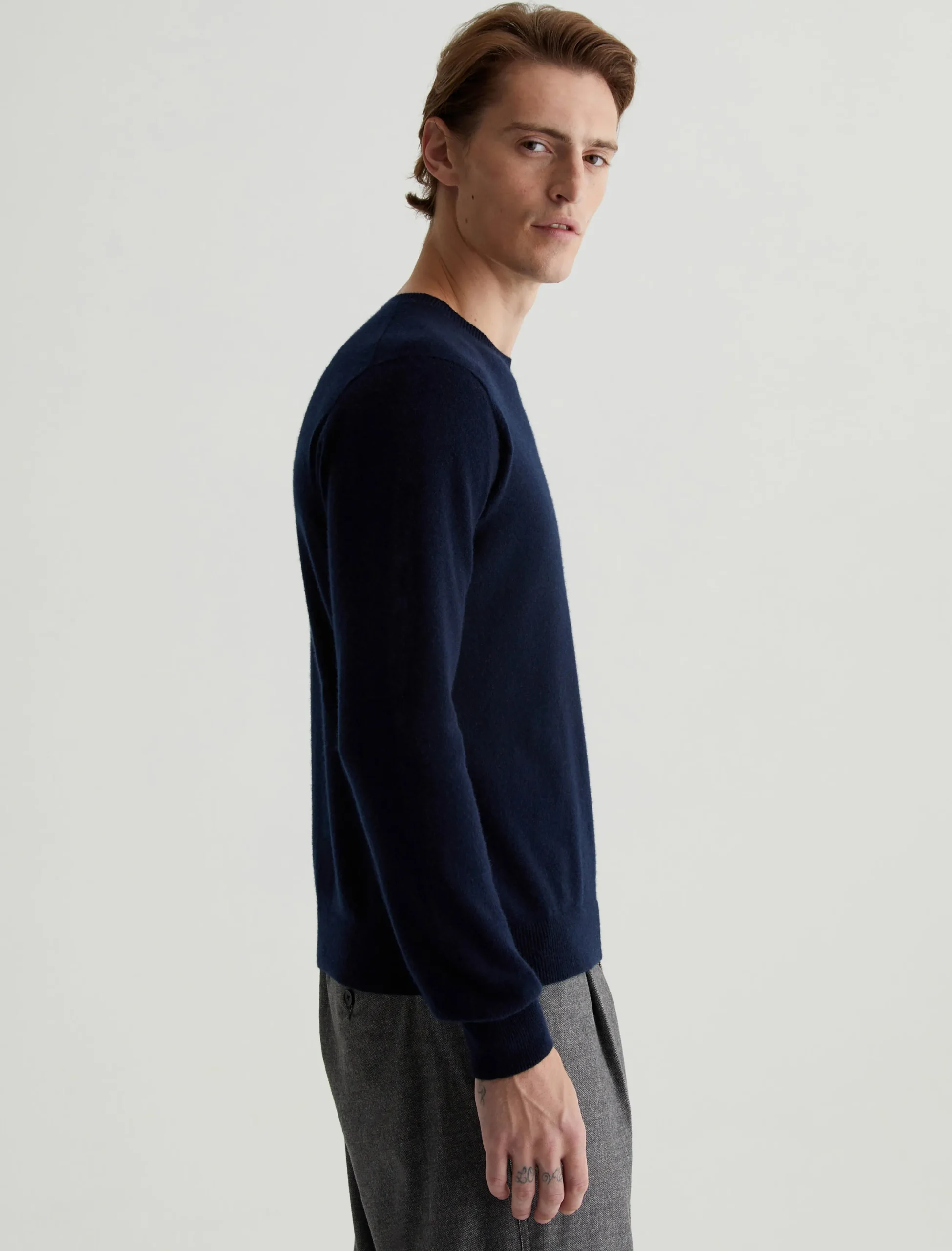 The Beck Crew is a classic-fit crewneck sweater with long sleeves, ribbed detailing, and a timeless navy shade. Spun from soft cashmere, it’s a luxe staple to wear on its own or layered under a jacket.