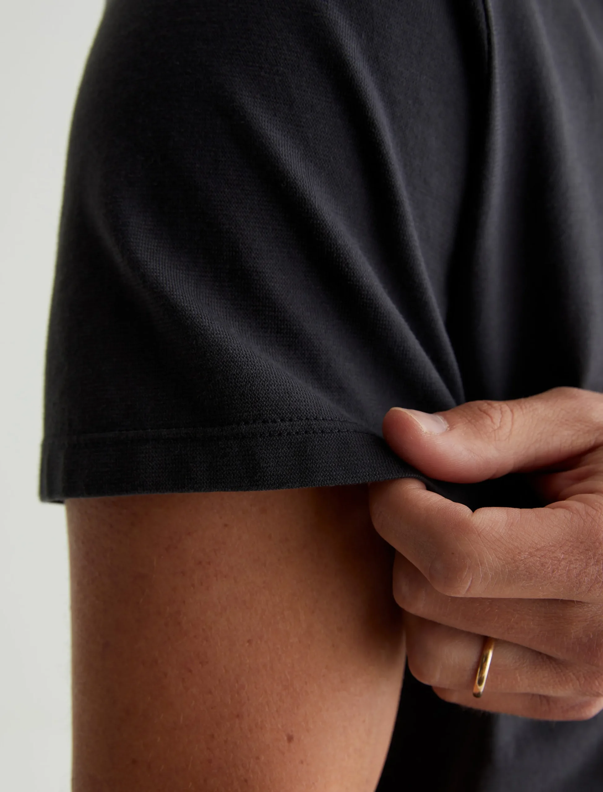 The Bryce Crew in dark grey is a classic fit crewneck, short sleeve tee. The tee offers a 1X1 baby rib at the neck to create a great crew shape and serves as the perfect base when layering all year long. Our Jersey Knit offers a luxurious comfort that is unrivaled—knitted with both S-twist and Z-twist yarn to sustain longevity and stability, preventing unnecessary twisting and torquing. During the production process, the S-twist yarn is spun counter-clockwise creating a right-handed twill. The Z-twist yarn works in opposition, spinning clockwise for a left-handed twill. This opposition—when working together—yields a softer, more durable fabrication and gives strength to the yarn making it more difficult to pull apart. Designed in 100% Cotton.