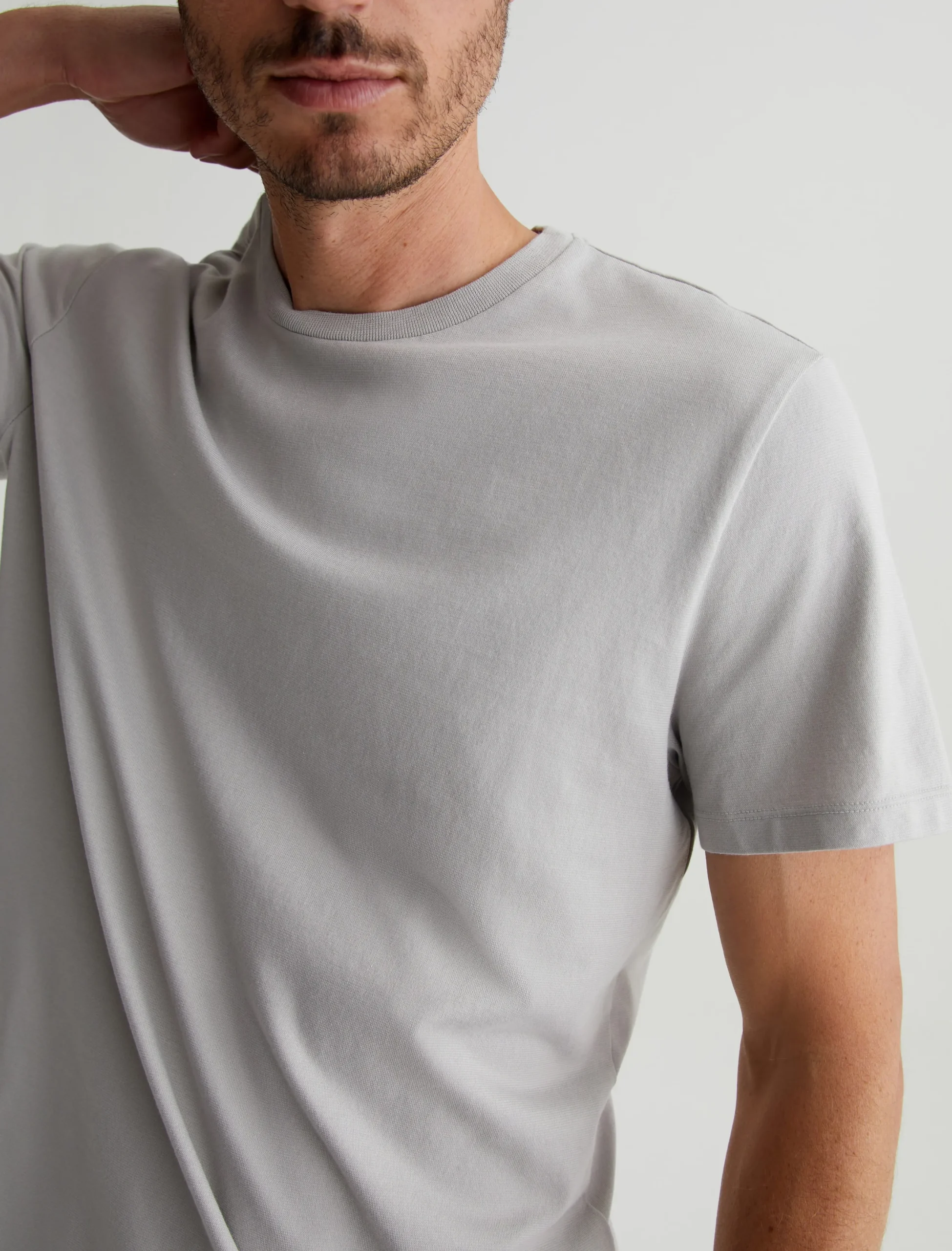 The Bryce Crew in grey is a classic fit crewneck, short sleeve tee. The tee offers a 1X1 baby rib at the neck to create a great crew shape and serves as the perfect base when layering all year long. Our Jersey Knit offers a luxurious comfort that is unrivaled—knitted with both S-twist and Z-twist yarn to sustain longevity and stability, preventing unnecessary twisting and torquing. During the production process, the S-twist yarn is spun counter-clockwise creating a right-handed twill. The Z-twist yarn works in opposition, spinning clockwise for a left-handed twill. This opposition—when working together—yields a softer, more durable fabrication and gives strength to the yarn making it more difficult to pull apart. Designed in 100% Cotton.
