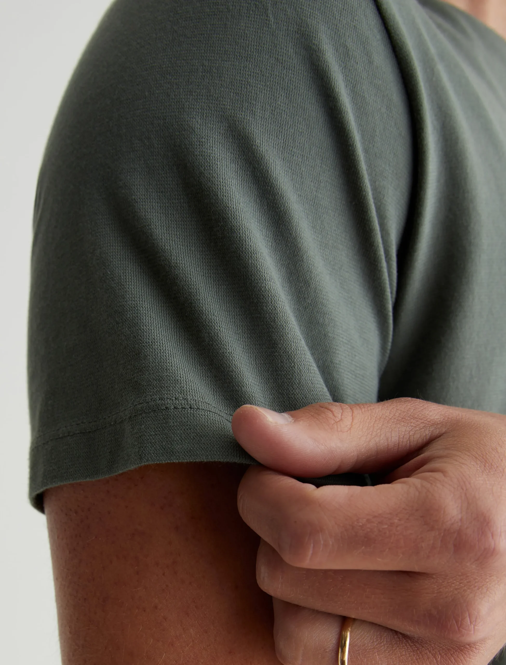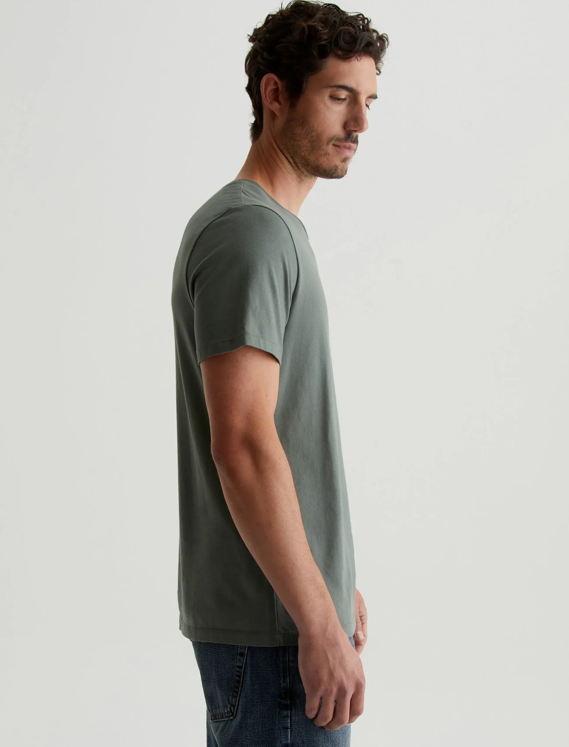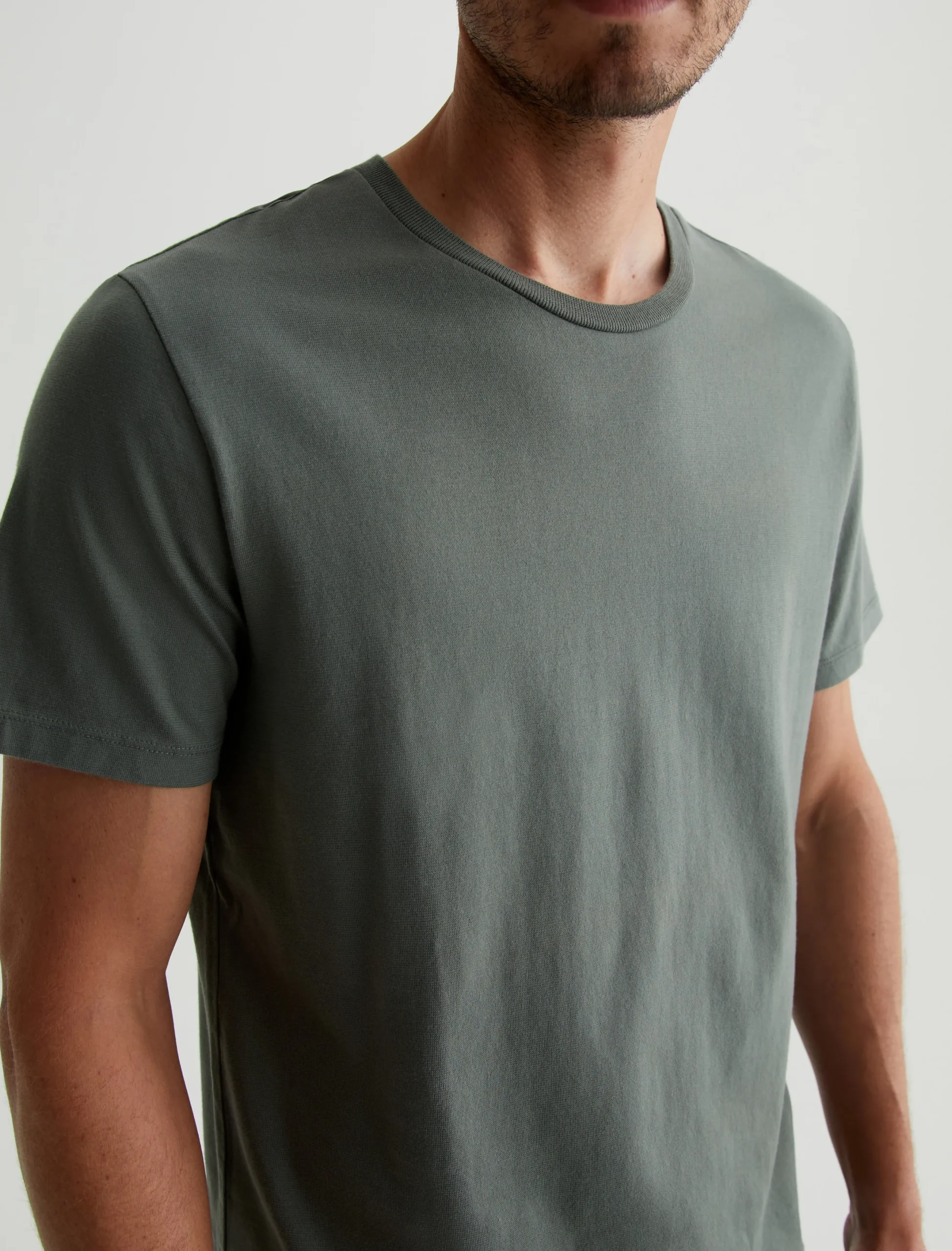 The Bryce Crew in hunter sage is a classic fit crewneck, short sleeve tee. The tee offers a 1X1 baby rib at the neck to create a great crew shape and serves as the perfect base when layering all year long. Our Jersey Knit offers a luxurious comfort that is unrivaled—knitted with both S-twist and Z-twist yarn to sustain longevity and stability, preventing unnecessary twisting and torquing. During the production process, the S-twist yarn is spun counter-clockwise creating a right-handed twill. The Z-twist yarn works in opposition, spinning clockwise for a left-handed twill. This opposition—when working together—yields a softer, more durable fabrication and gives strength to the yarn making it more difficult to pull apart. Designed in 100% Cotton.