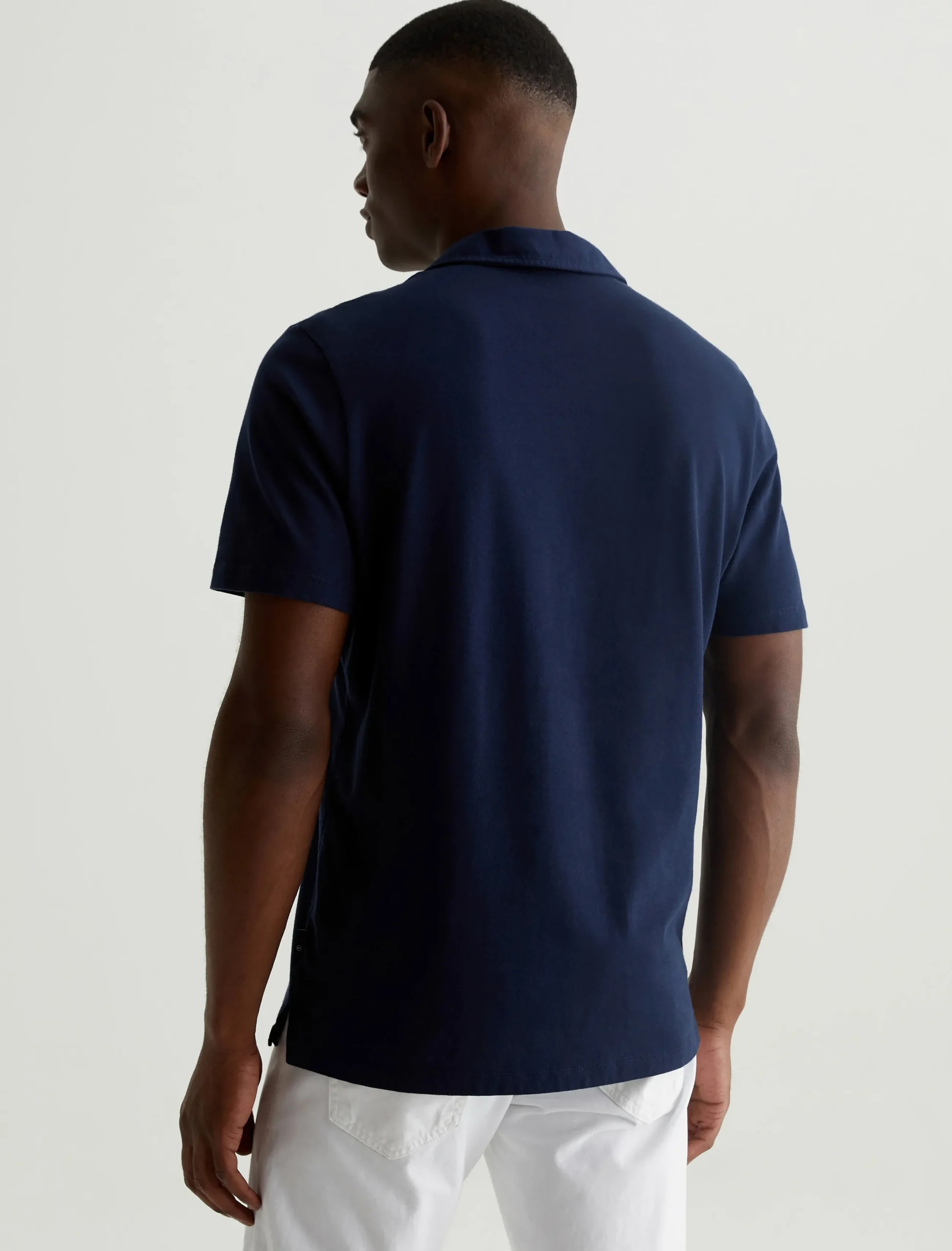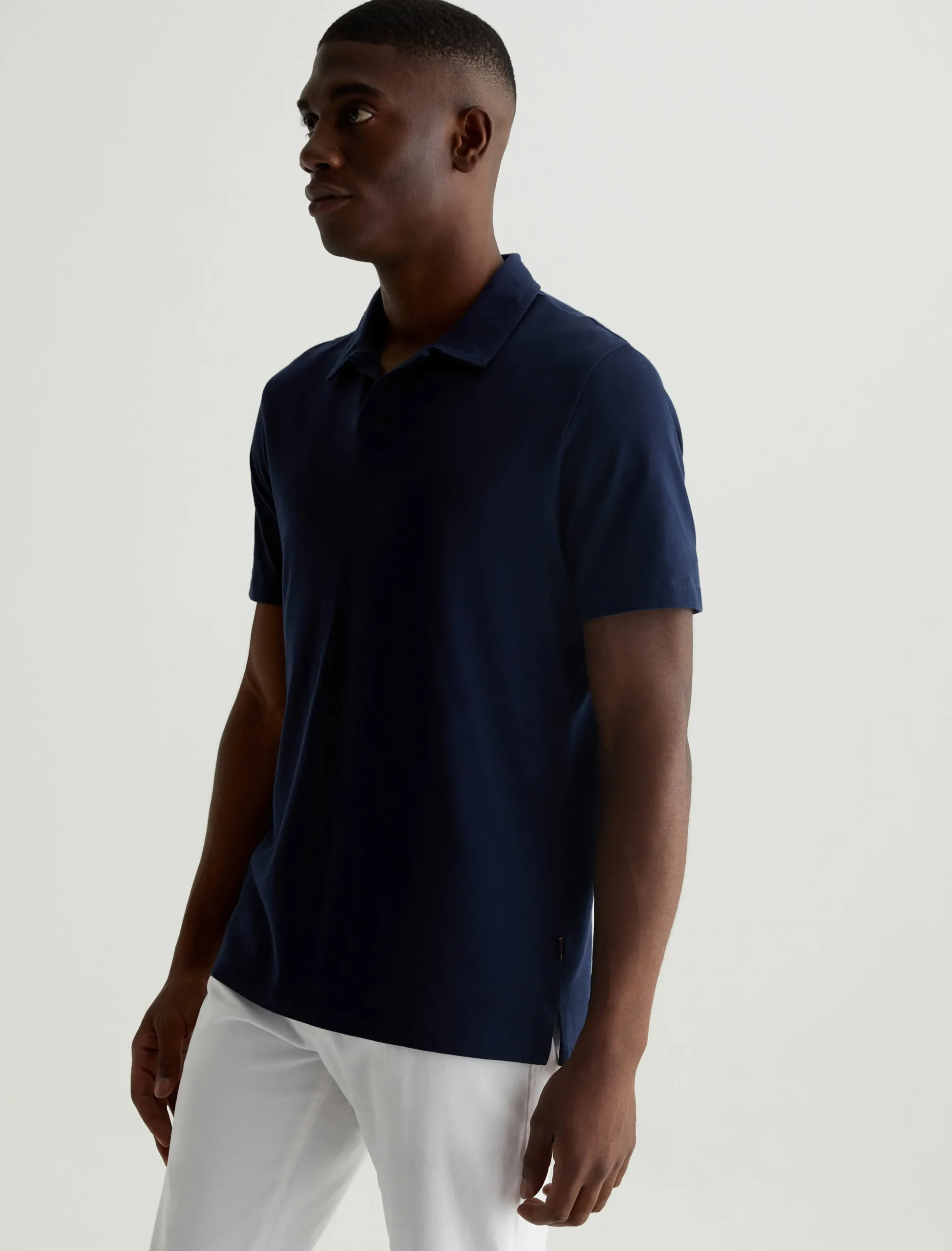 The Bryce Johnny Collar shirt is a classic short-sleeve polo tee with a relaxed neckline and pointed collar. Crafted from our Light Cotton Jersey in a timeless navy shade, it’s soft and easy to wear—the perfect companion to a pair of jeans or something a little more tailored.