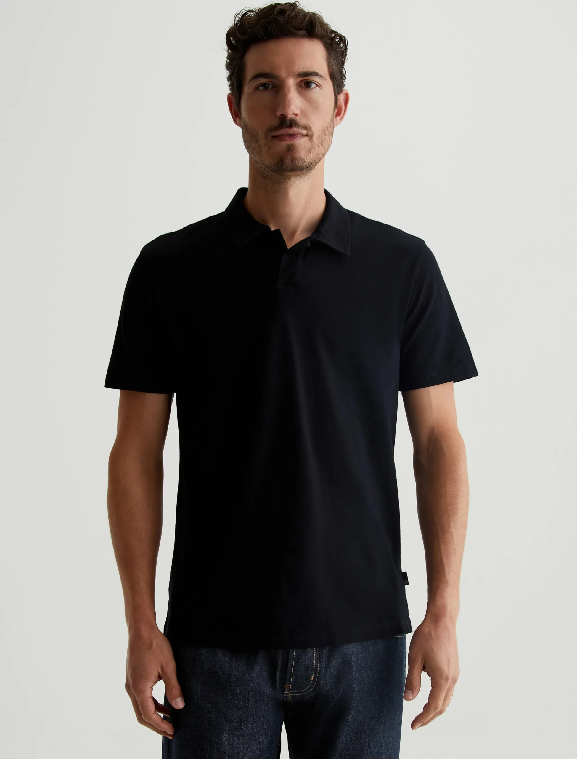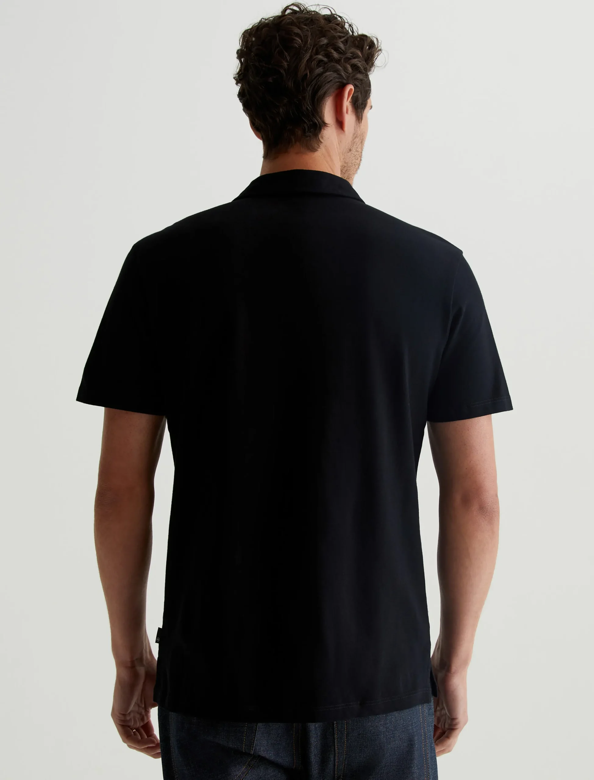 The Bryce Johnny Collar shirt is a classic short-sleeve polo tee with a relaxed neckline and pointed collar. Crafted from our Light Cotton Jersey in black, it’s soft and easy to wear—the perfect companion to a pair of jeans or something a little more tailored.