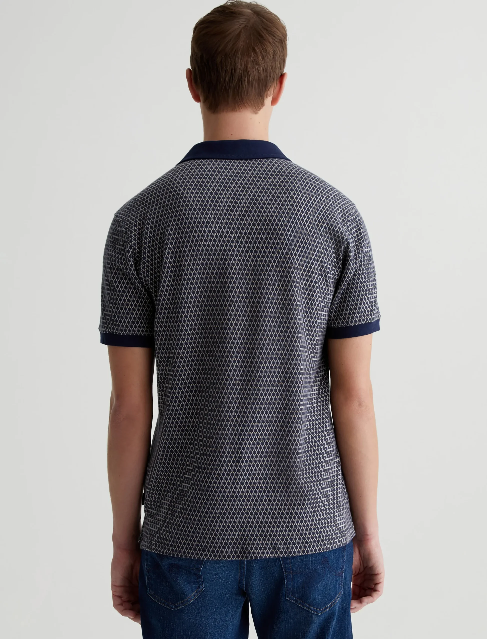 The Bryce Johnny Collar shirt is a classic short-sleeve polo tee with a relaxed neckline and pointed collar. An effortless way to bring pattern interest into your everyday wardrobe, it’s crafted from Luxe Heavy Jacquard and accented by solid navy trim.