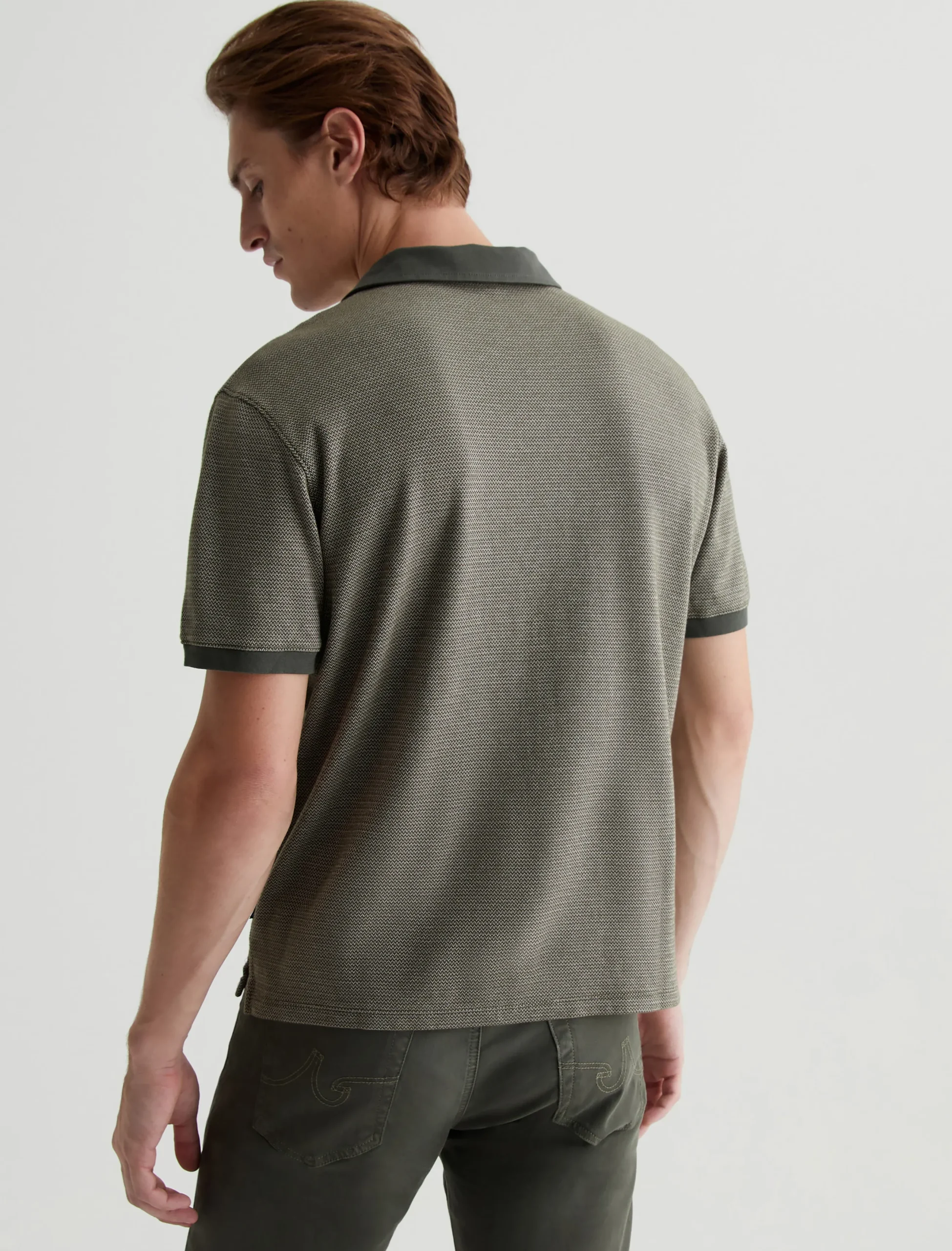 The Bryce Johnny Collar shirt is a classic short-sleeve polo tee with a relaxed neckline and pointed collar. Updated in our Luxe Heavy Jacquard, it’s got a delicate chevron pattern accented by solid trim.