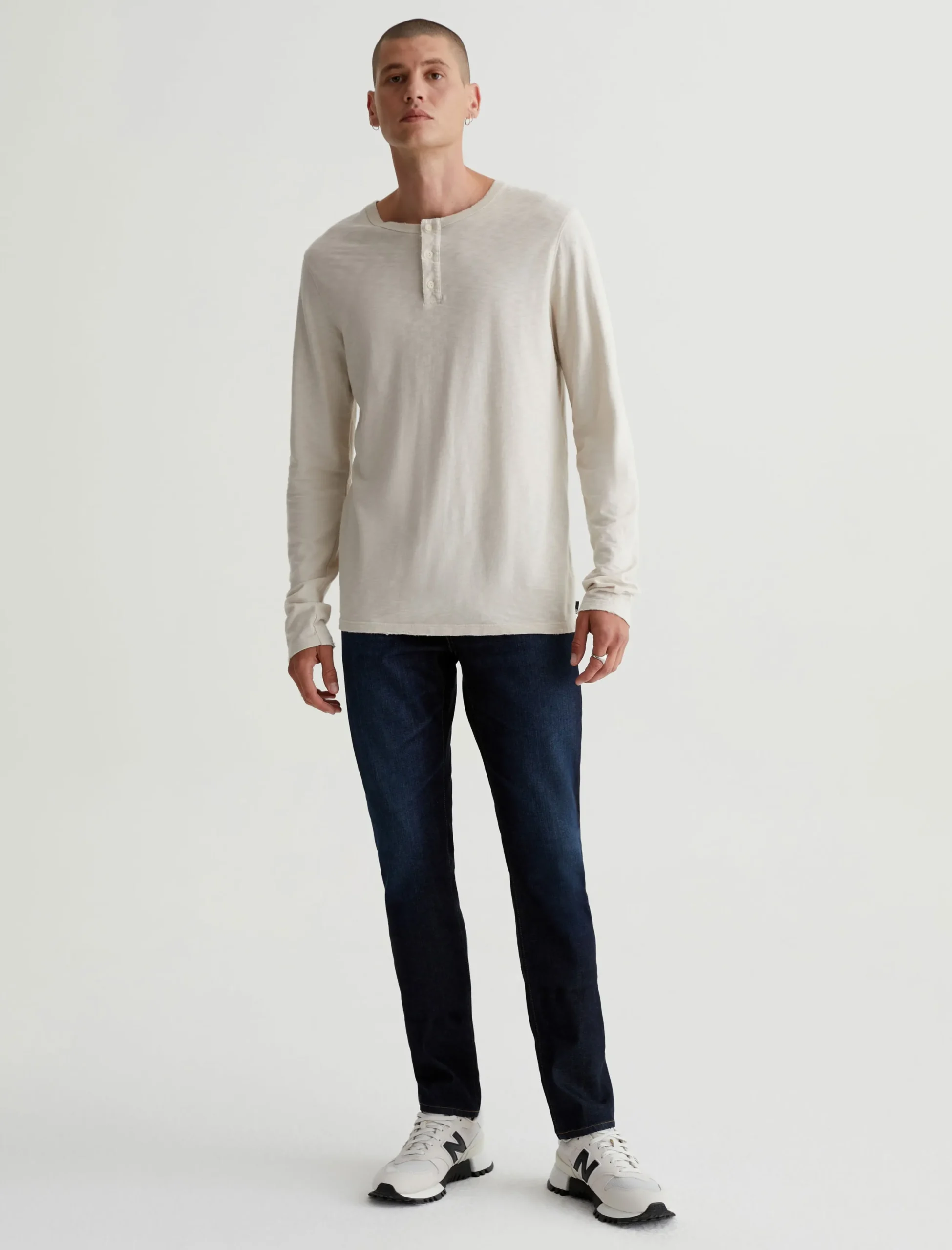 The Bryce Long Sleeve Henley is a true classic you can wear in any season. Done in a pale beige shade, our staple long-sleeve henley has a crew neckline with a 3-button placket, plus lightly distressed edges for a lived-in character. This essential style is crafted from 100% cotton Luxe Slub Jersey featuring S-twist and Z-twist yarns for soft yet durable construction that resists unnecessary twisting and torquing.