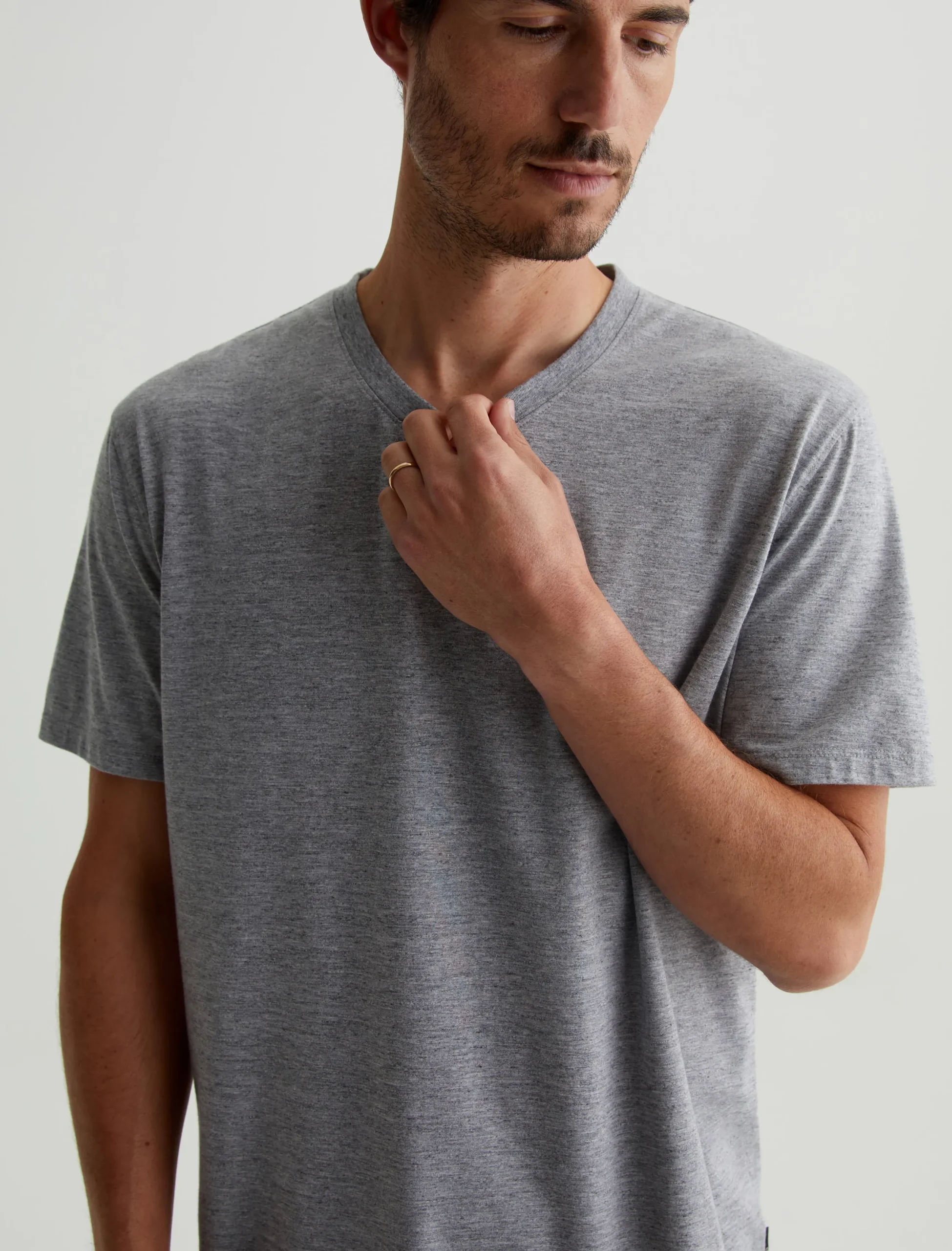 The Bryce Vee for men features a heather grey hue and a classic V-neck line. This men’s t-shirt is designed in a lightweight Heather Comfort Jersey.