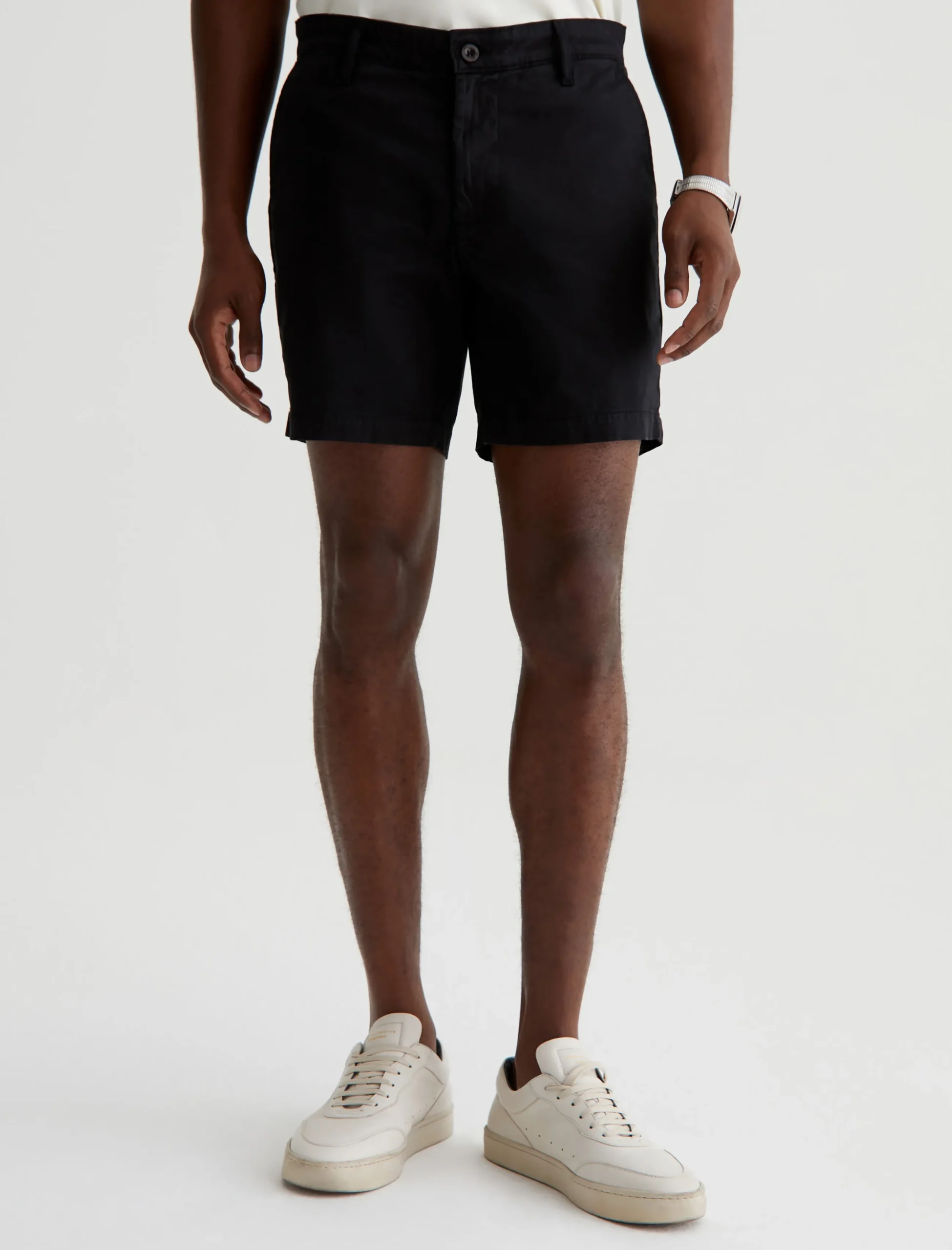 The Cipher Short is a warm-weather essential with a timeless tailored look and a luxuriously soft finish. Made from 7.4 oz. Brighton Sueded Sateen in black, this comfortable stretch-blend style has a mid-rise waist and a slim fit that lands at mid-thigh.