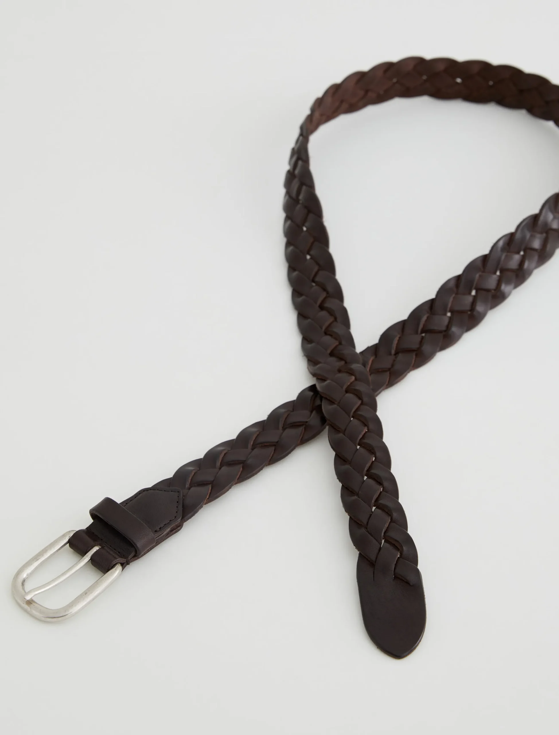 Made from smooth Italian leather, this braided men’s belt comes in rich, dark brown shade. It’s finished by a silver-tone buckle with a rounded shape.