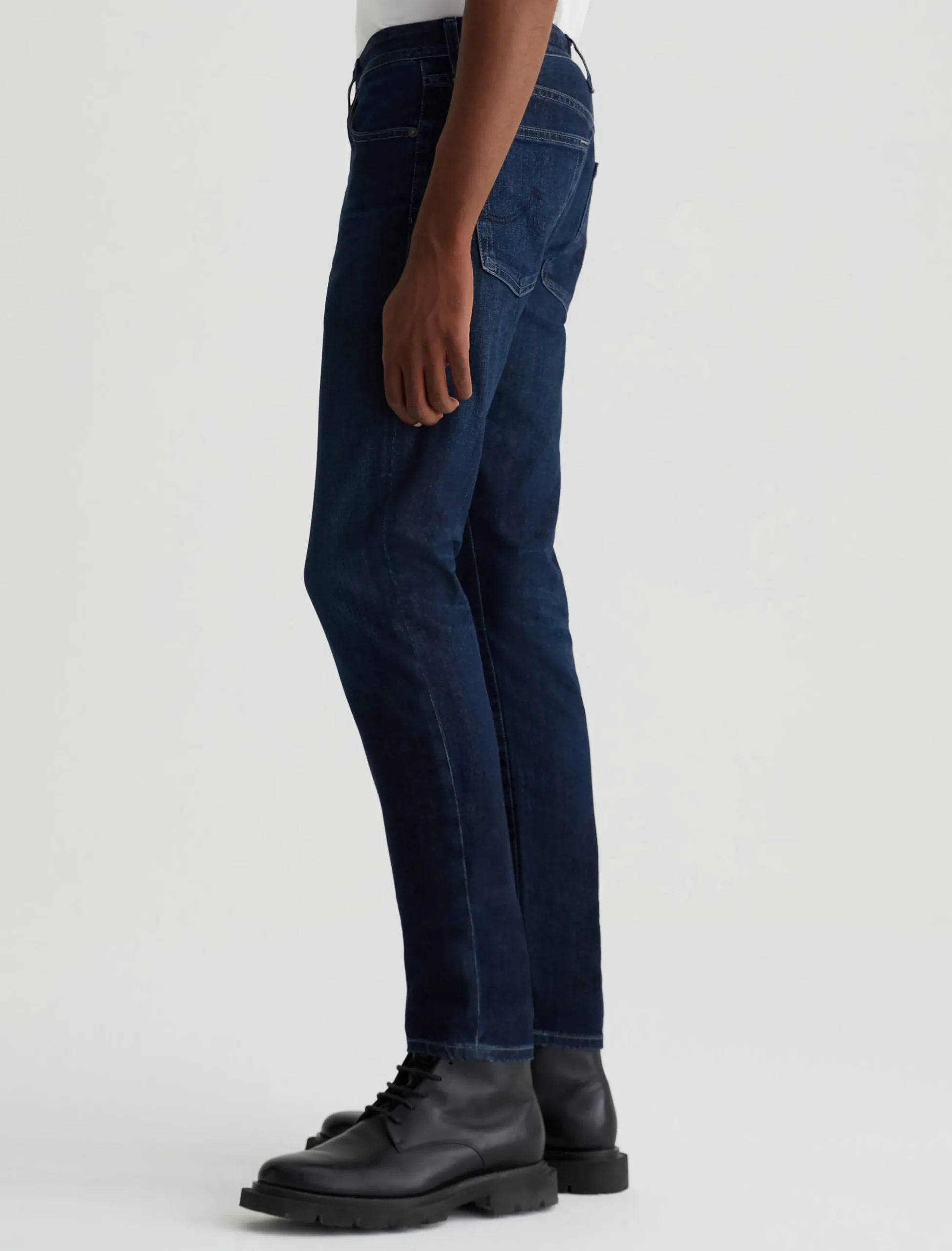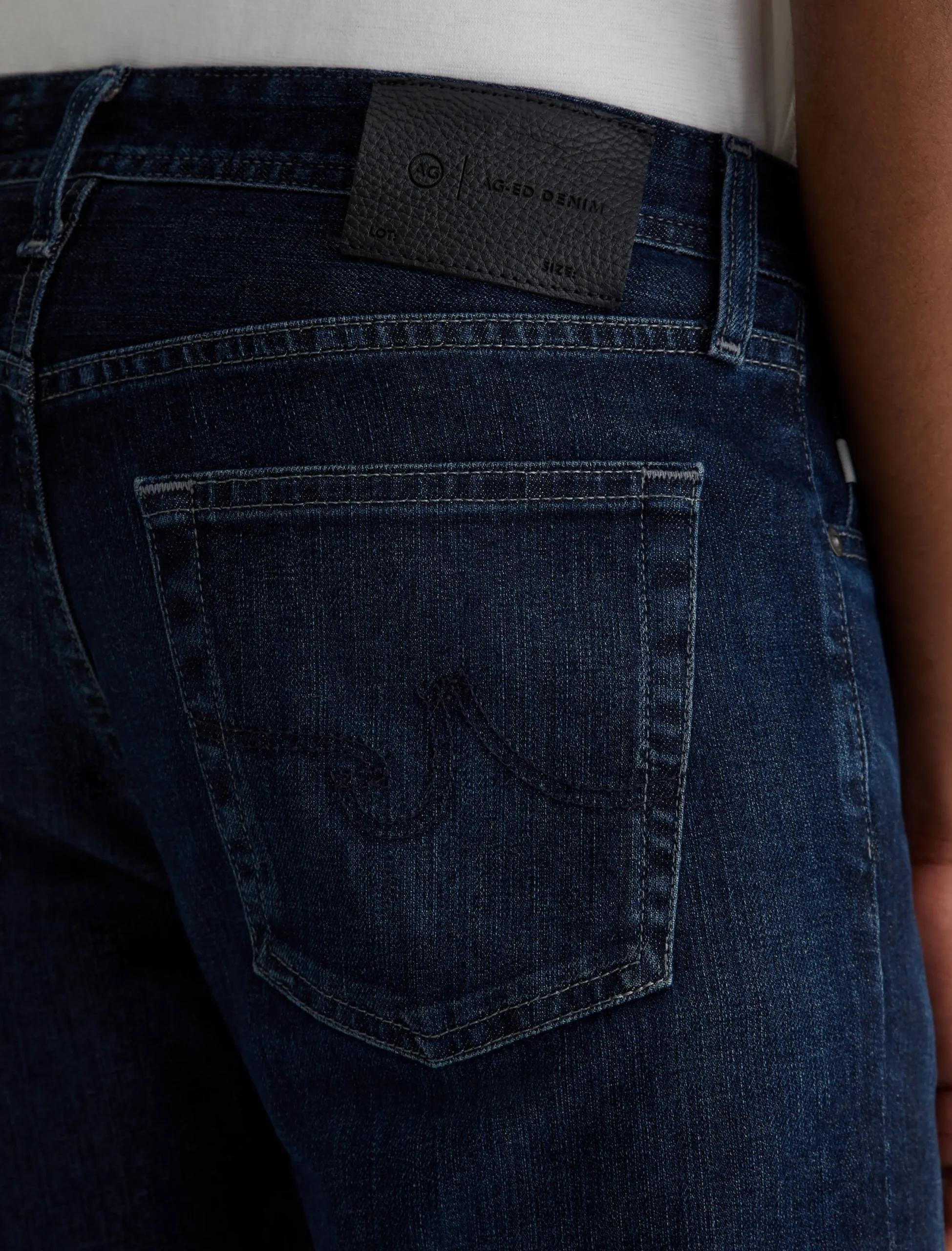 Dylan features a slim skinny silhouette in a dark blue wash with a subtle 4-year AG-ed™ fade.. Made from 11 oz. Lead Denim with comfort stretch, these five-pocket jeans are cut slim through the thighs and then taper down at the leg opening.