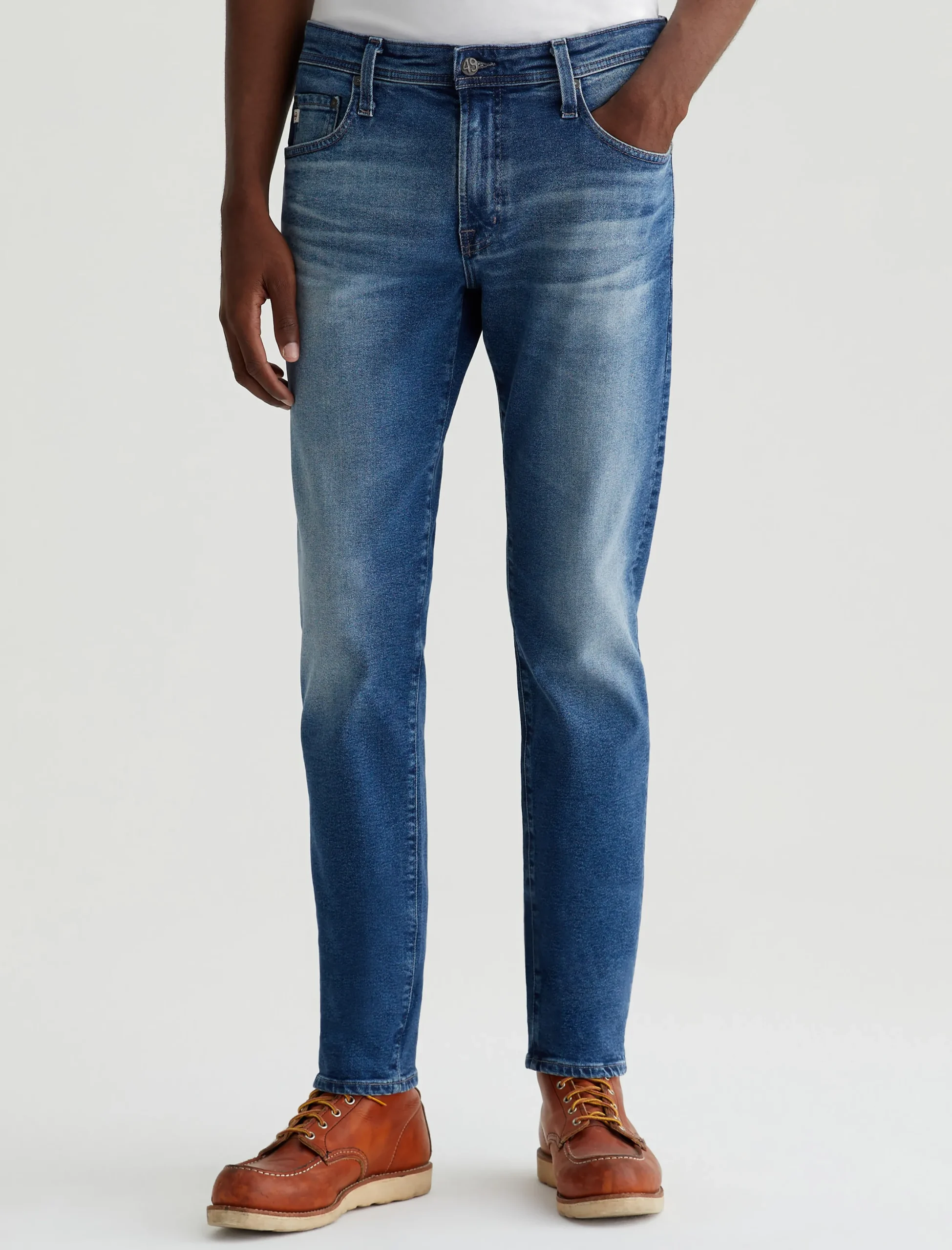 Dylan is a men’s slim skinny jean in an AG-ed™ medium blue wash with a 15-year fade. Accented by whiskering and subtle crease marks for lived-in character, these five-pocket men’s jeans are made from 11 oz. Classic Comfort Stretch Denim that’s perfect for everyday wear.