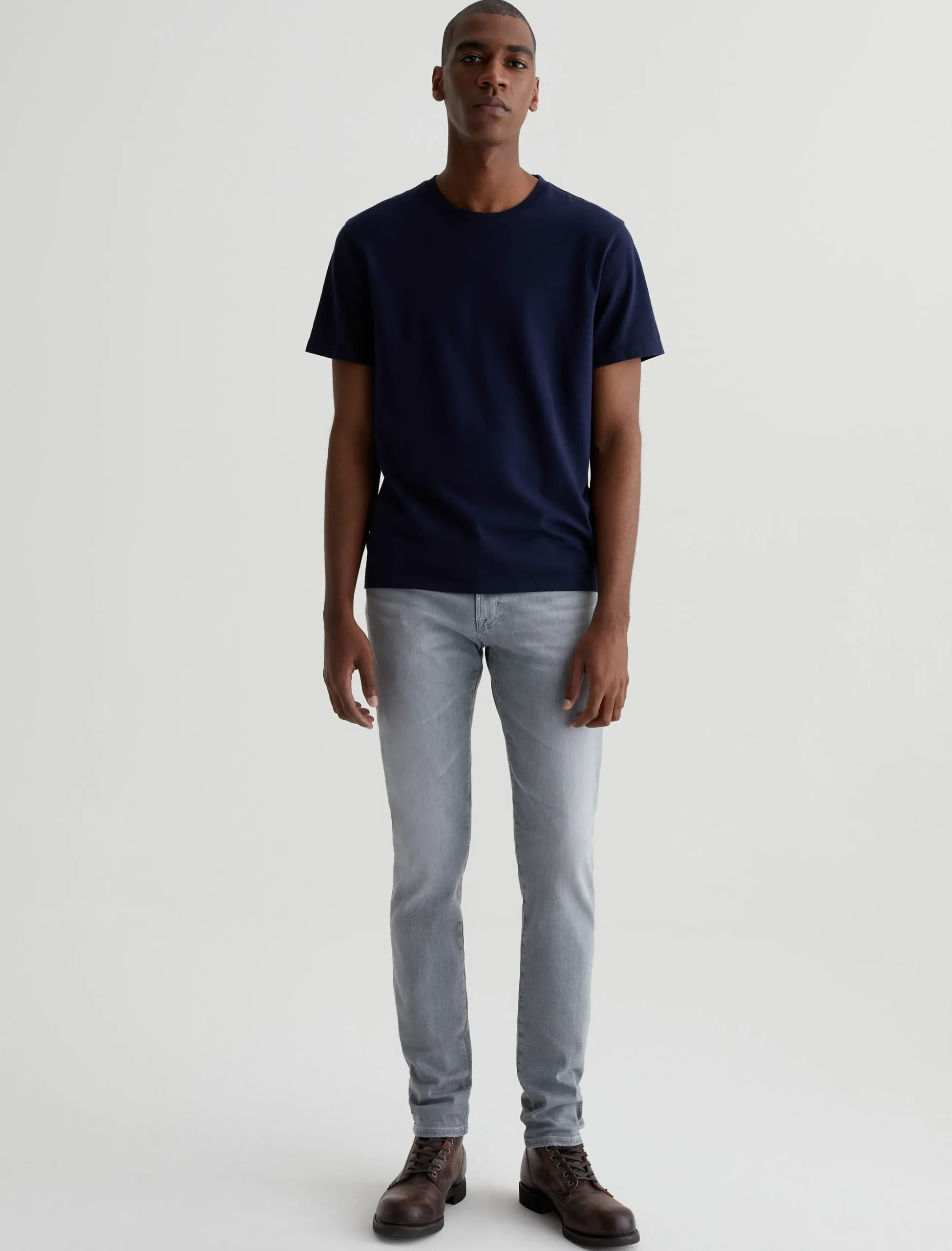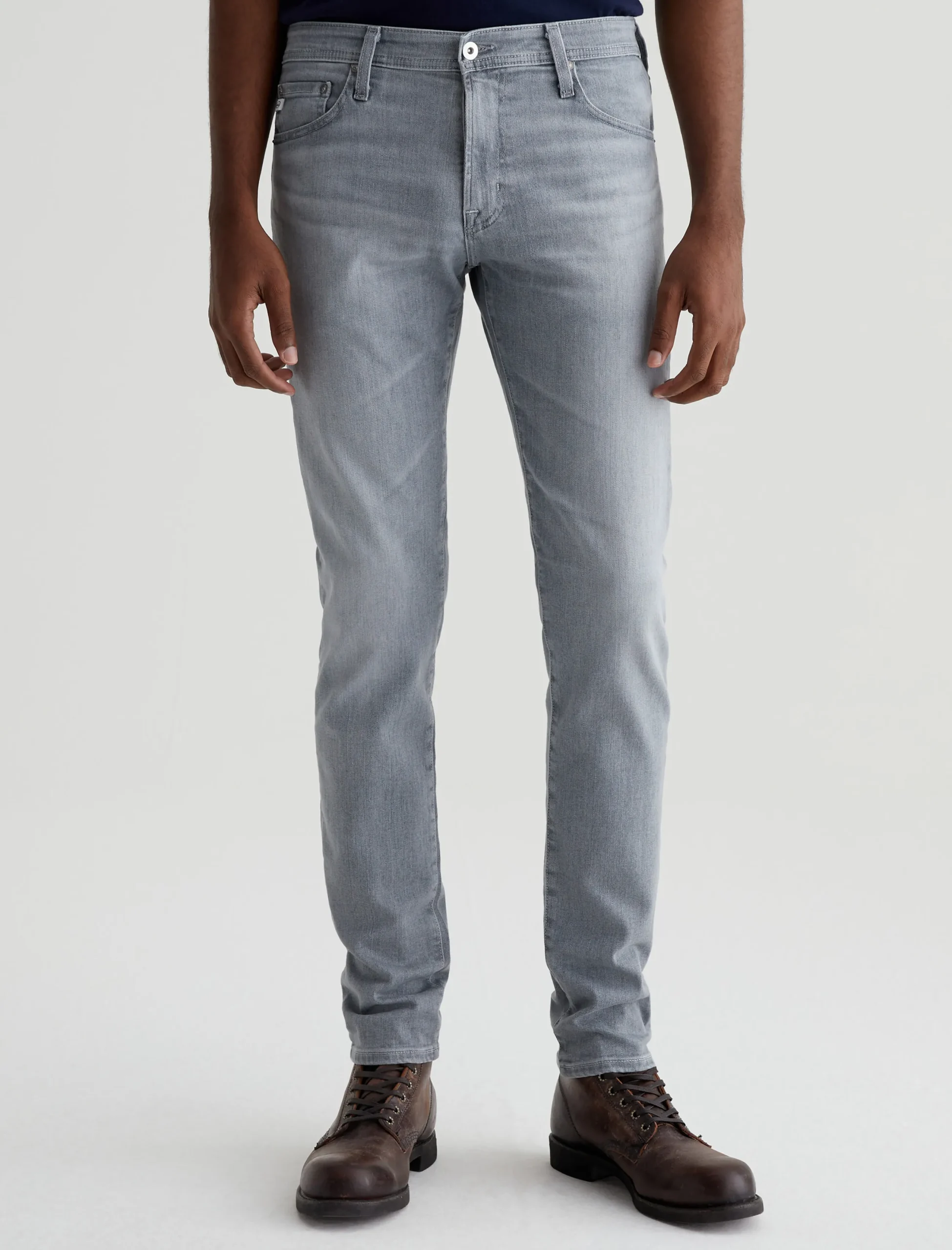 Dylan is a slim skinny jean in a light grey wash with fading and whiskering. Cut slim through the thighs and tapered at the leg opening, this five-pocket men’s jean is designed in 10 oz. Ashen Stretch Denim for premium comfort.