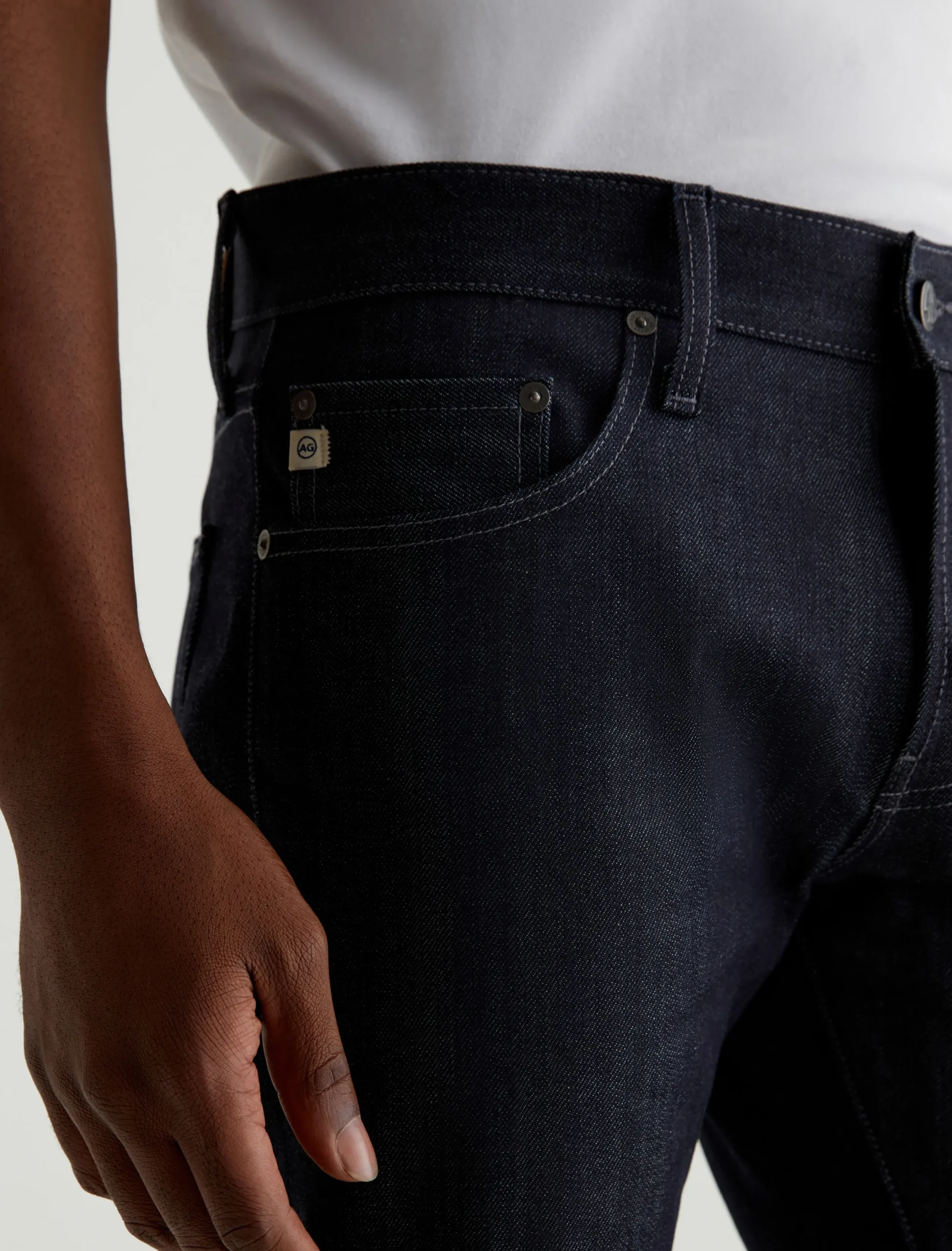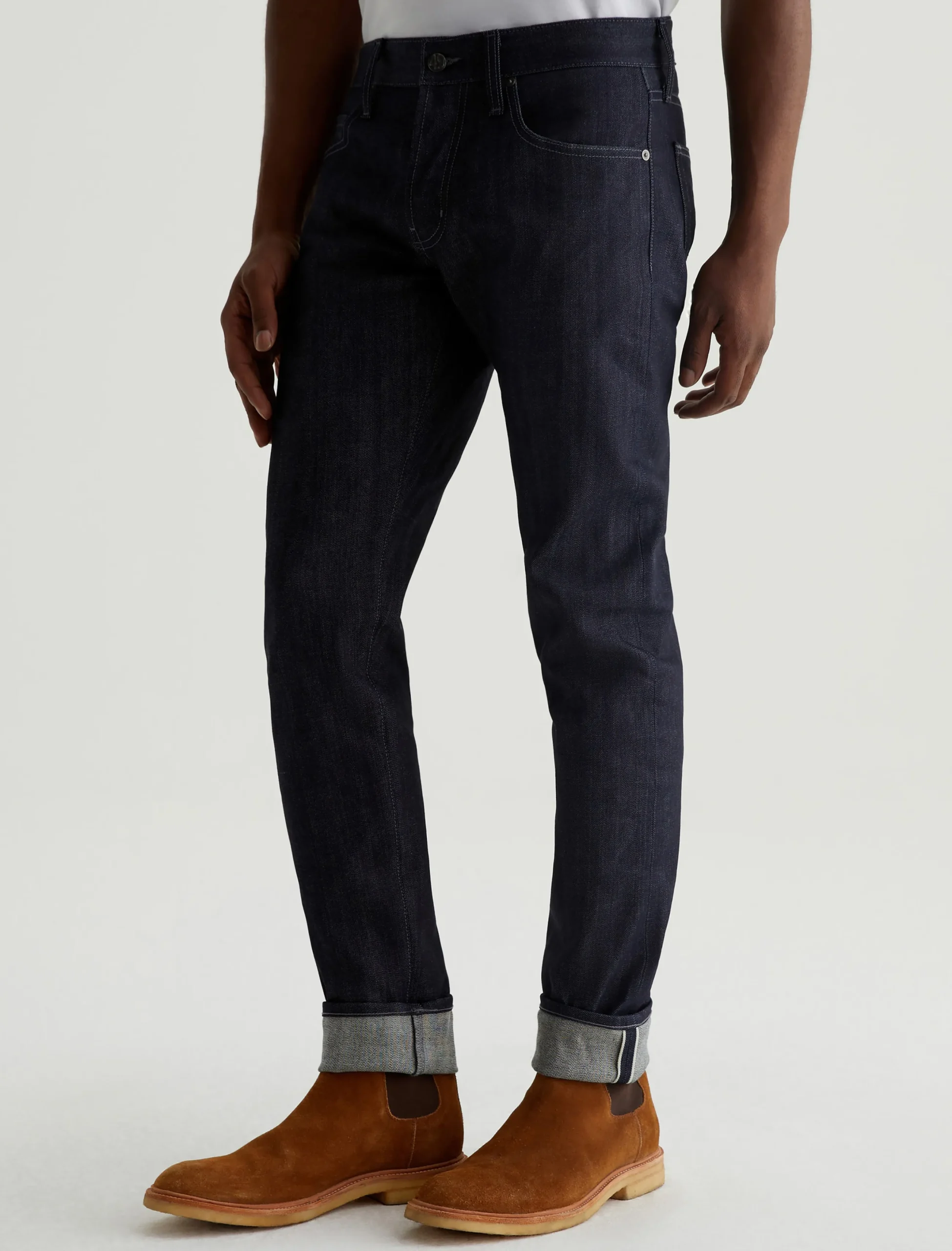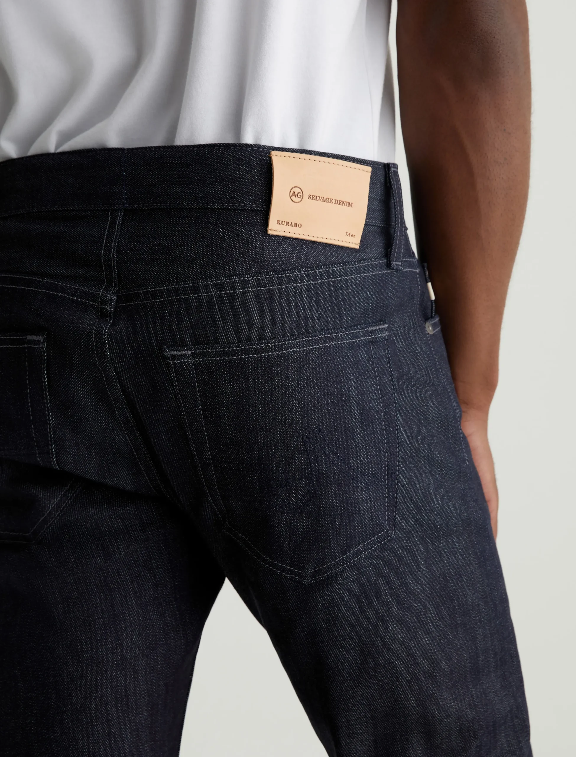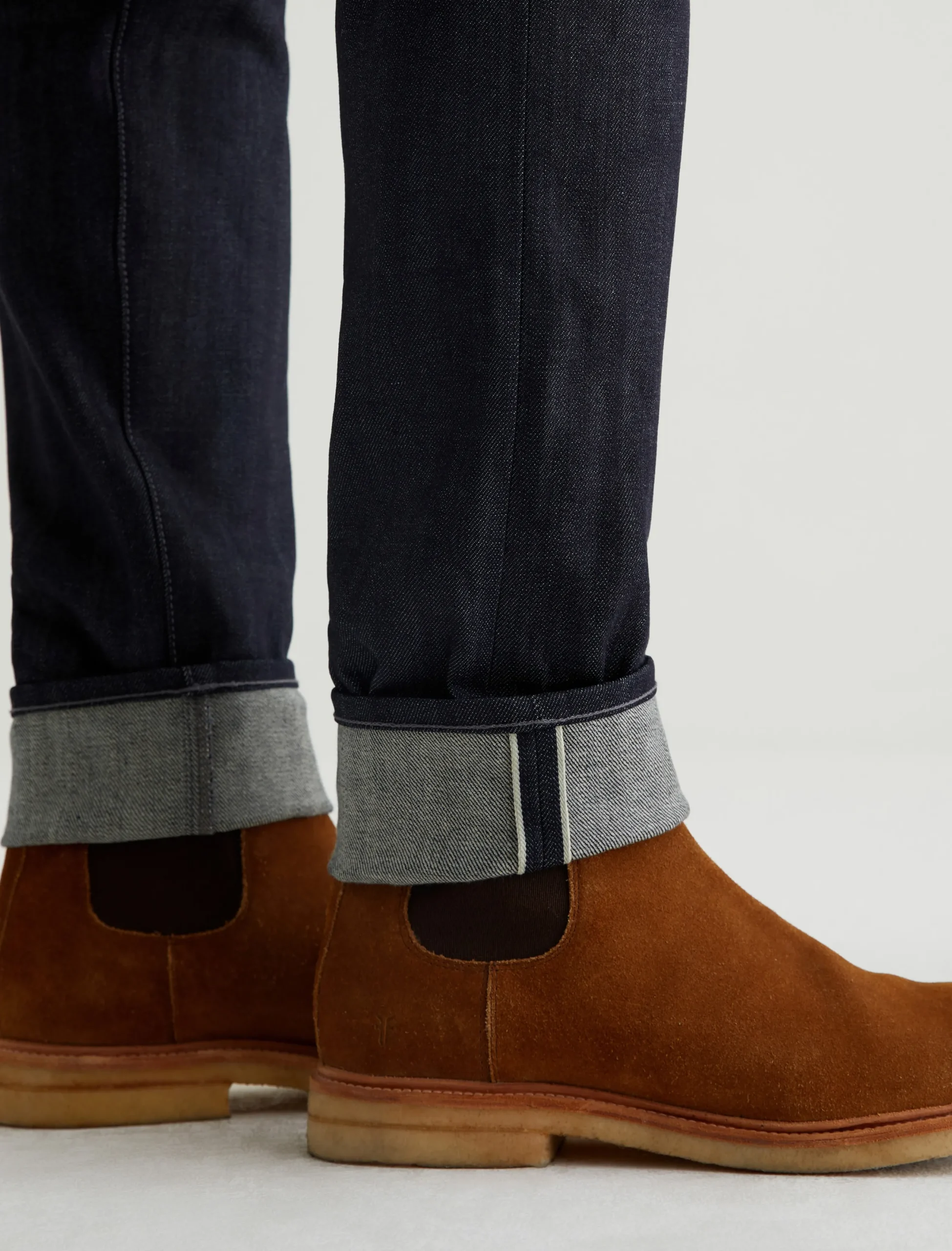 Dylan is cut slim through the thighs and tapered at the leg opening. Designed in 12 oz. Kurashiki Dark Selvage denim from Kurabo Industries in Japan, this slim jean comes in a clean indigo shade with tonal stitching. Detailed by a black ticker along the self-finished edge.