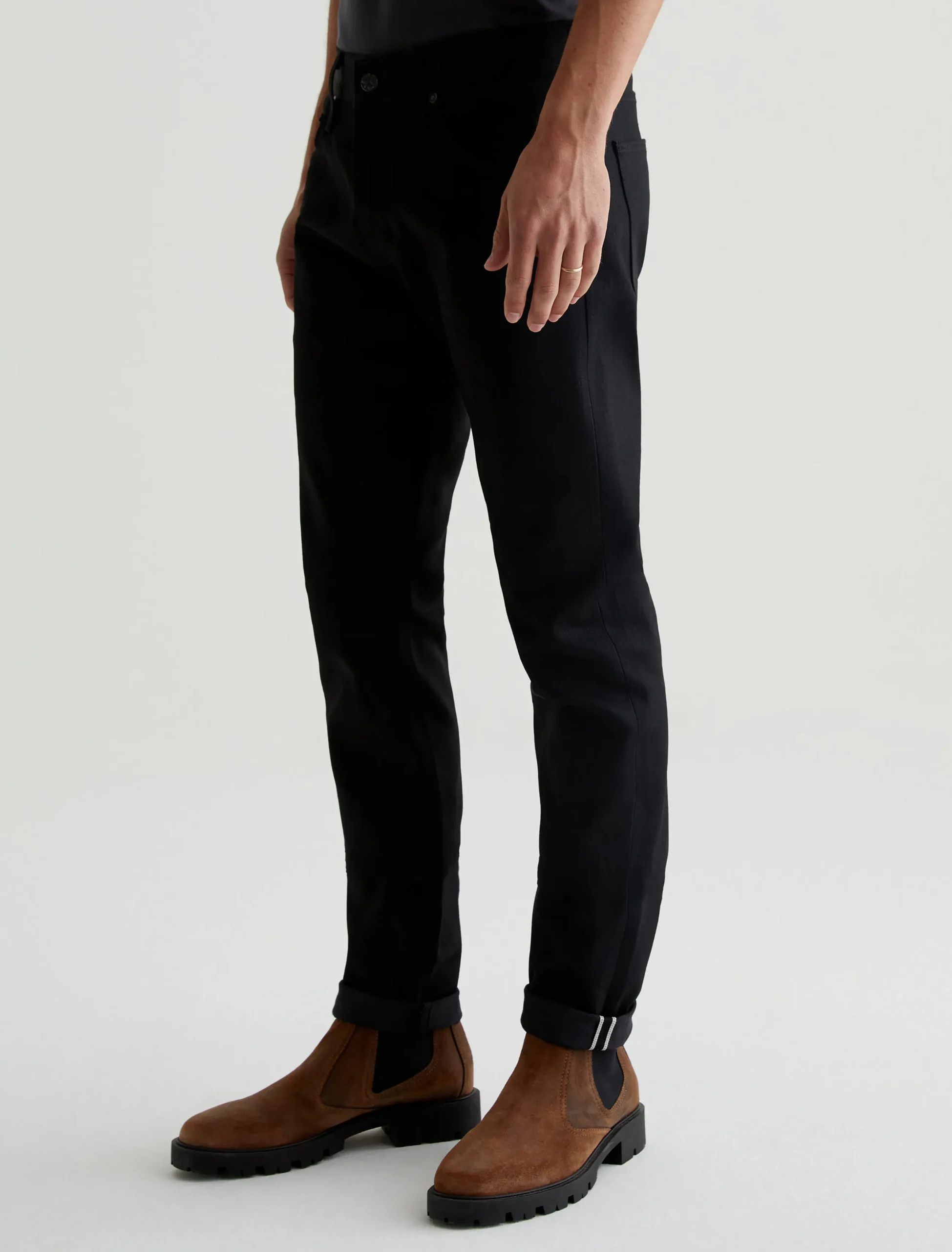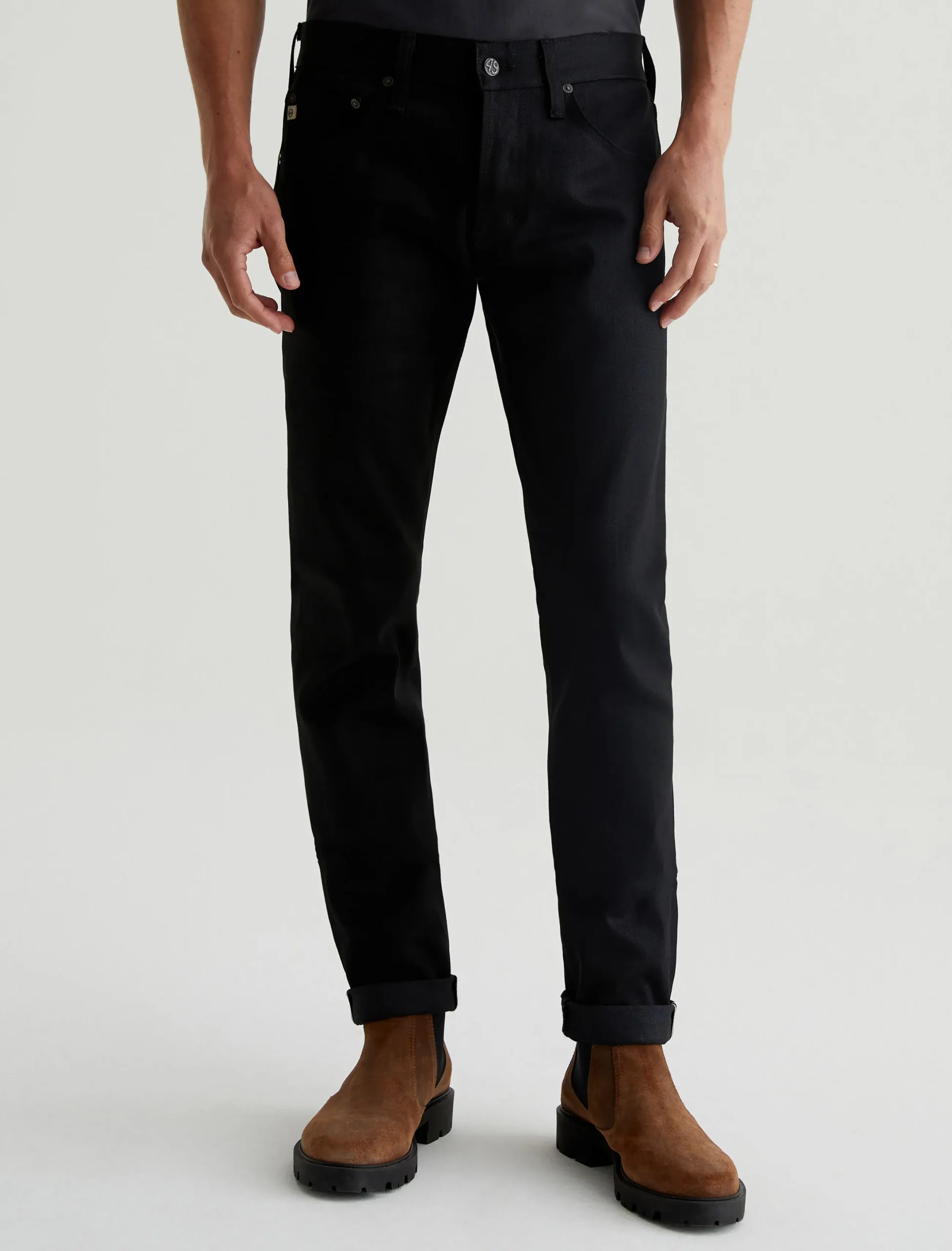 Dylan is a slim skinny jean for men features 12 oz. Double-Black Stretch Selvage Denim from Japan’s famed Kaihara Denim mill. Dylan is cut slim through the thighs and tapered at the leg opening. Rope-dyed for a double-black sulfur cast, this men’s skinny jean offers comfortable wear in 3×1 right-hand twill denim with a vintage slub character and stretch woven in. Detailed by a red ticker along the self-finished edge.