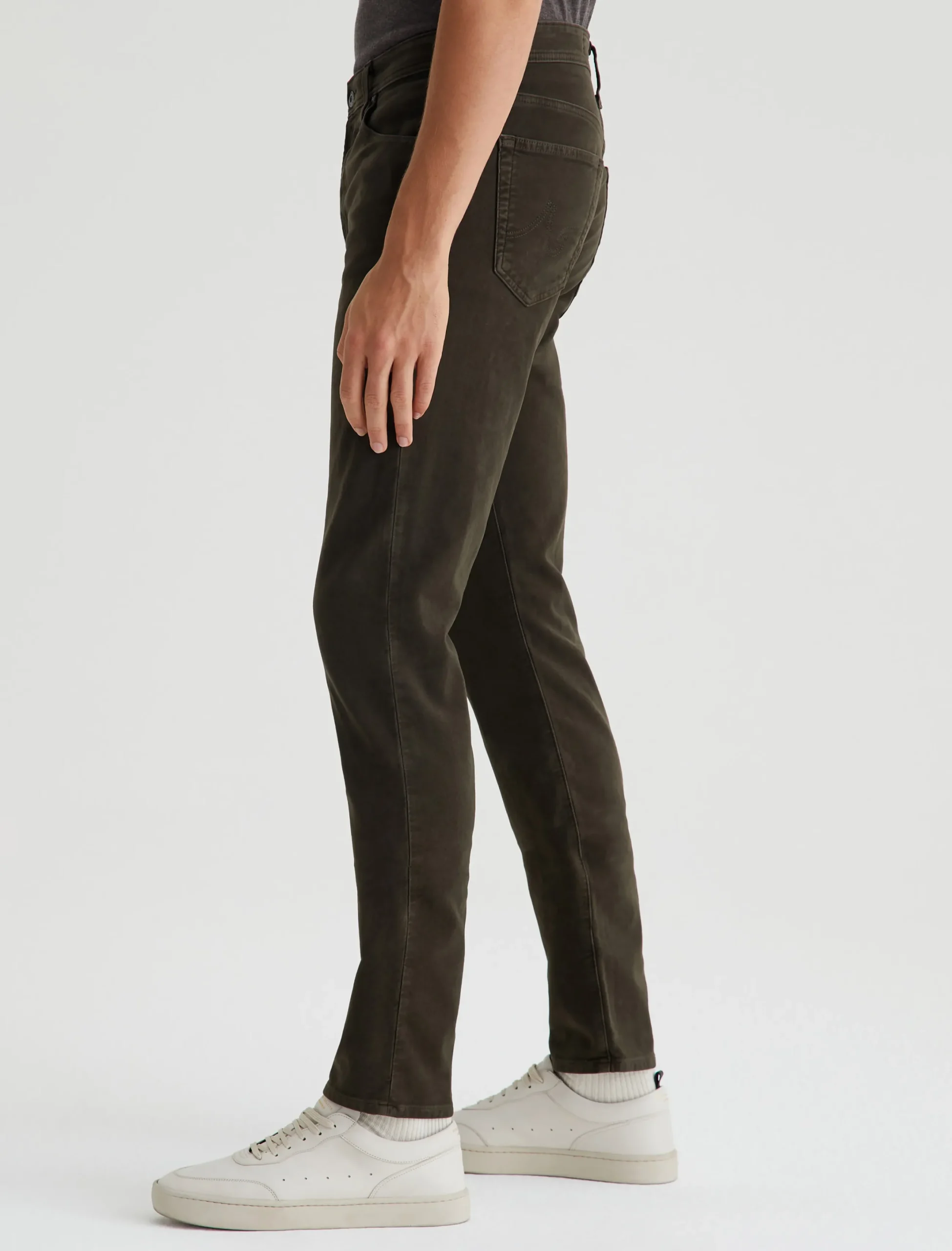 Everett is a slim straight jean for men featuring 8.7 oz. Brushed Stretch Moleskin in a sulfur-dyed brown shade. The five-pocket style has a comfortable mid-rise waist and a straight fit that’s relaxed from hip to the knee before slightly tapering at the leg opening.