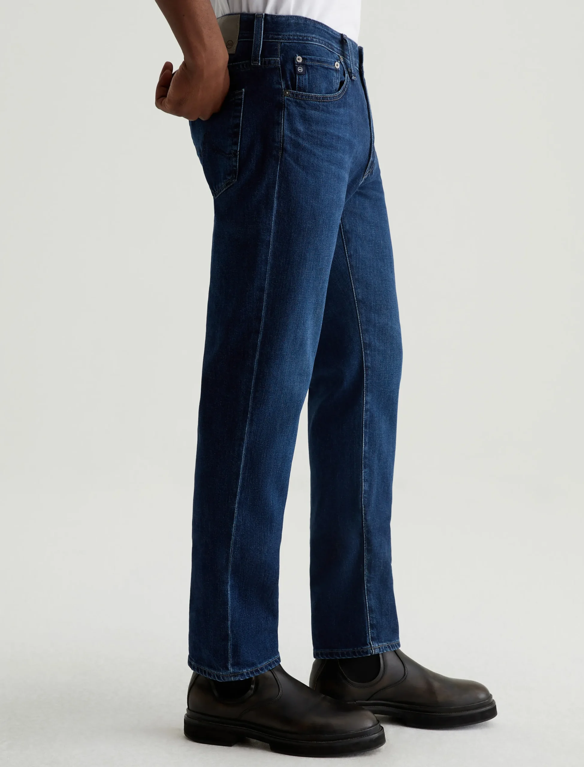 The Everett is a slim straight jean for men, done here in a dark wash with a bit of fading. It’s cut with a comfortable mid-rise waist and a straight fit that’s relaxed from hip to the knee before slightly tapering at the leg opening. This men’s slim straight jean is designed in 10 oz. Daytripper Stretch Denim.