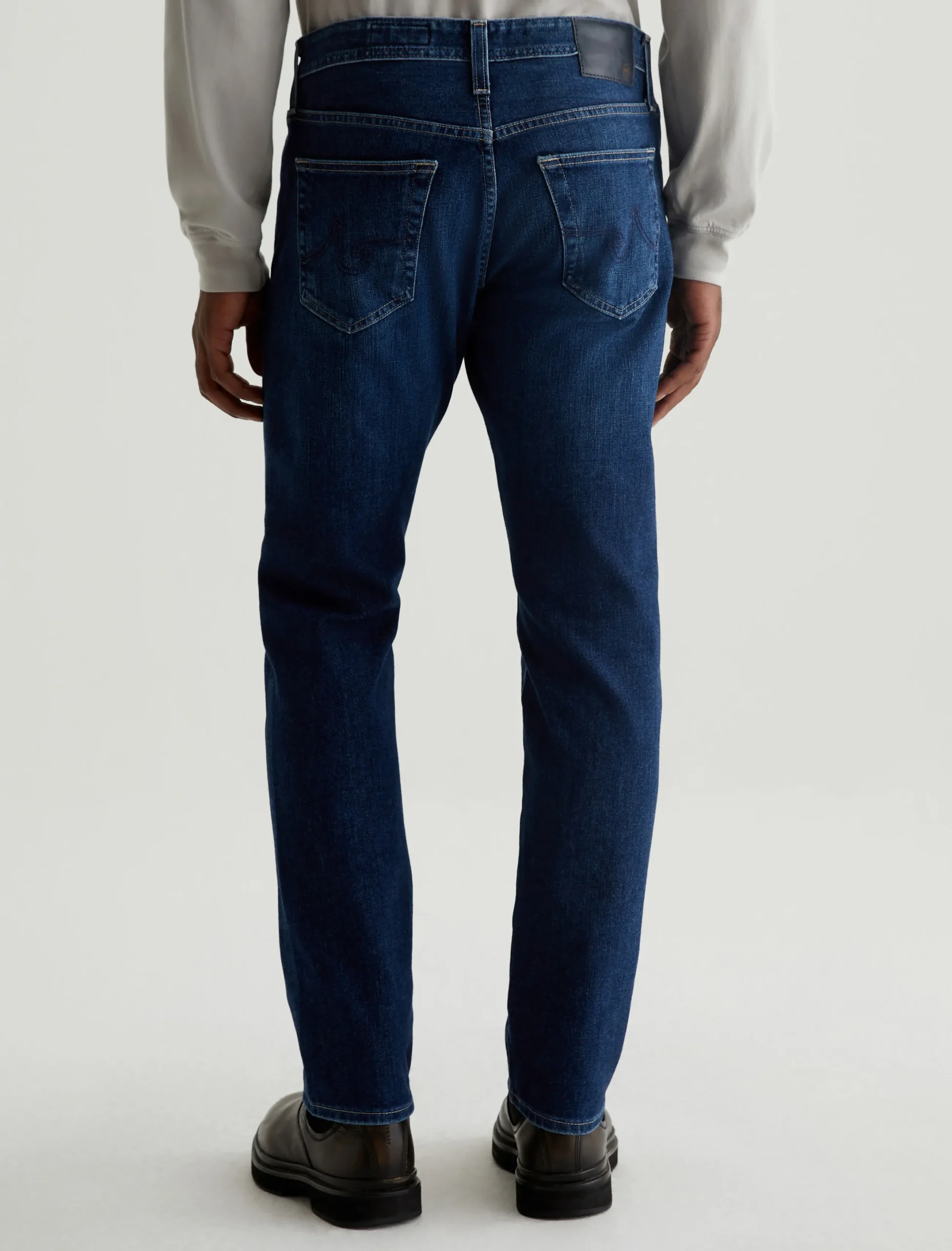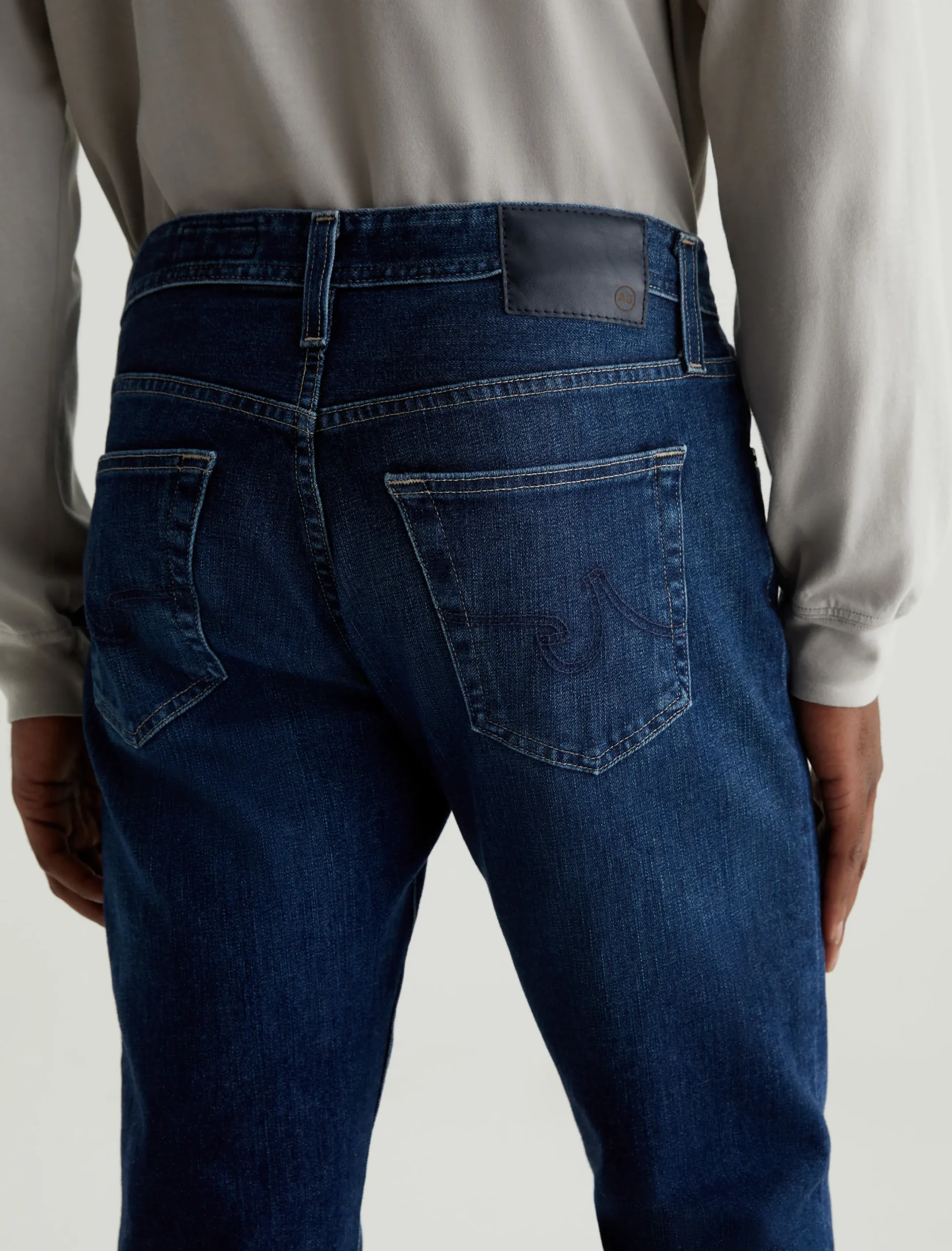 Everett is a slim straight jean for men featuring a dark denim wash—cut in a comfortable mid-rise waist with a straight fit that’s relaxed from hip to the knee before slightly tapering at the leg opening. This men’s slim straight jean is designed in 11 oz. Flex 360° Denim.
