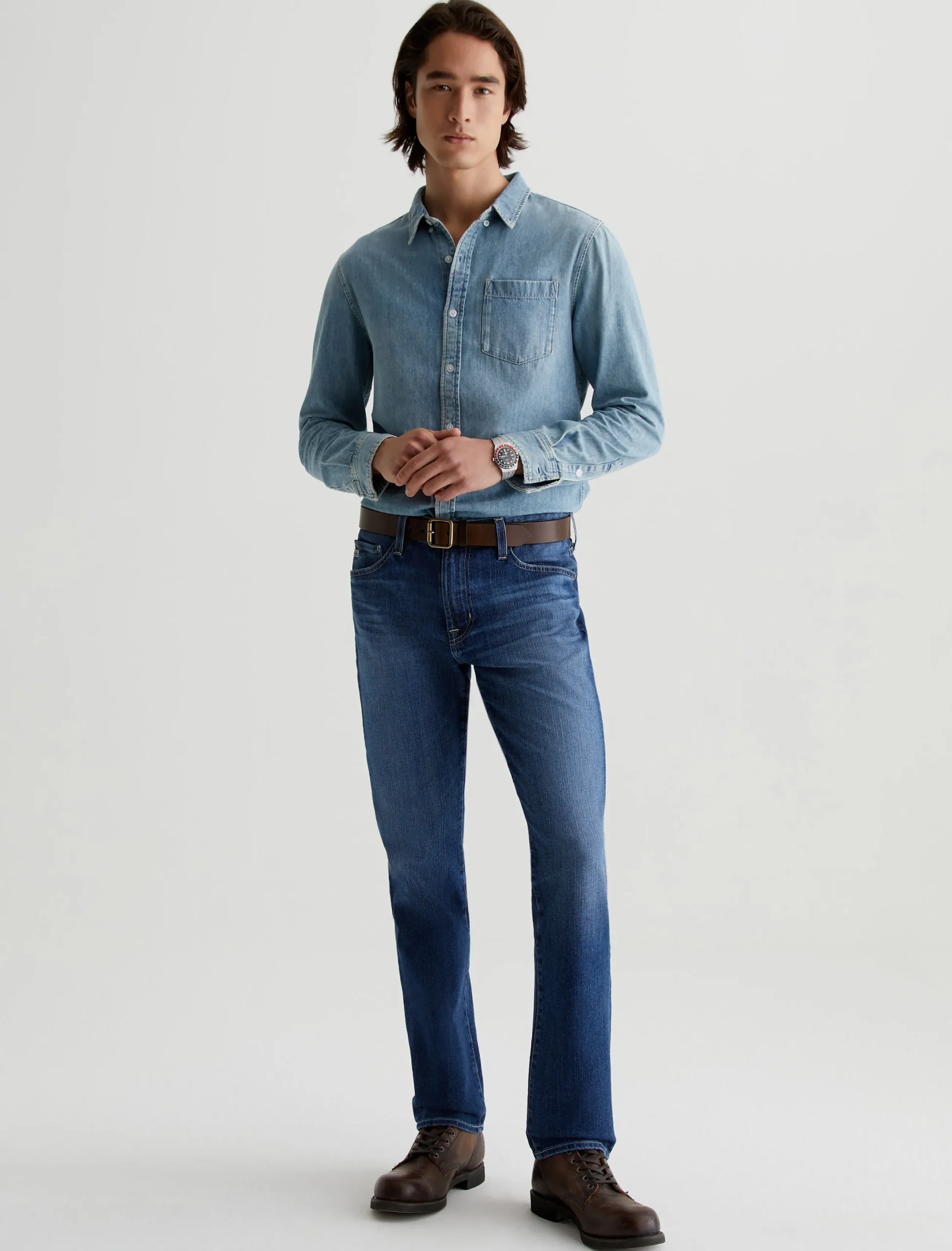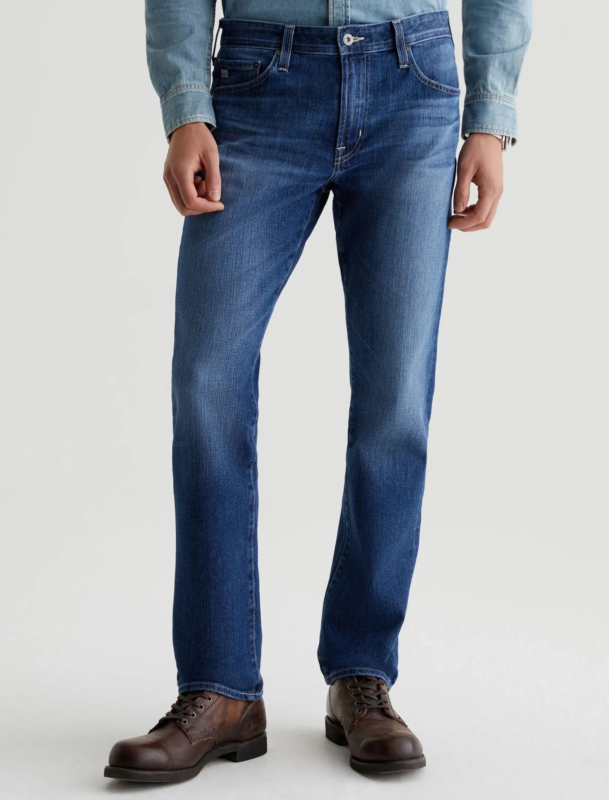 The Everett 360° is a slim-straight fit made from high-tech stretch denim. Anchored by a comfortable mid-rise waist, it’s got a straight fit that’s relaxed from hip to knee before slightly tapering at the leg opening. These men’s slim-straight jeans are designed in 11 oz. Flex 360° Denim and washed to a medium indigo shade with faded details.