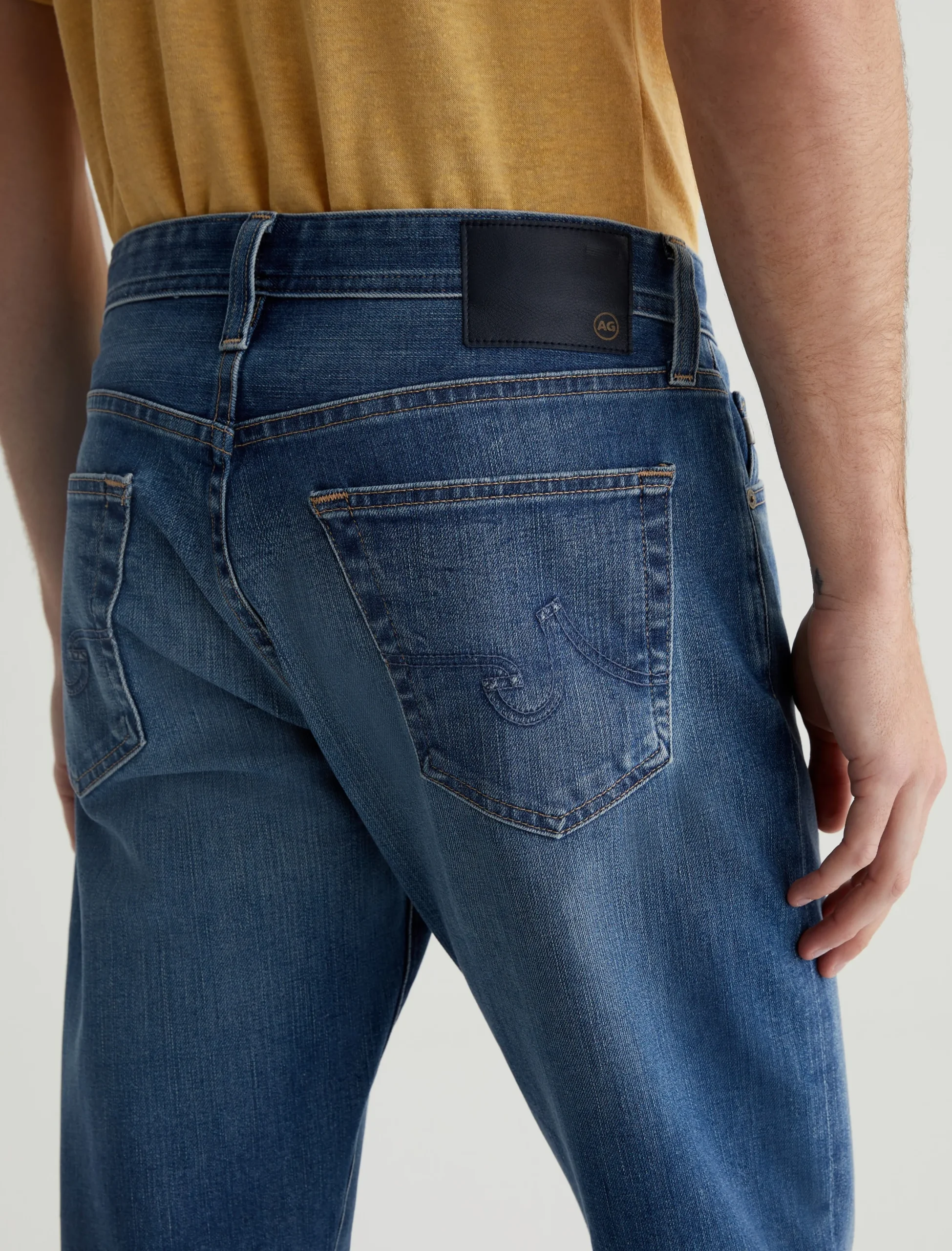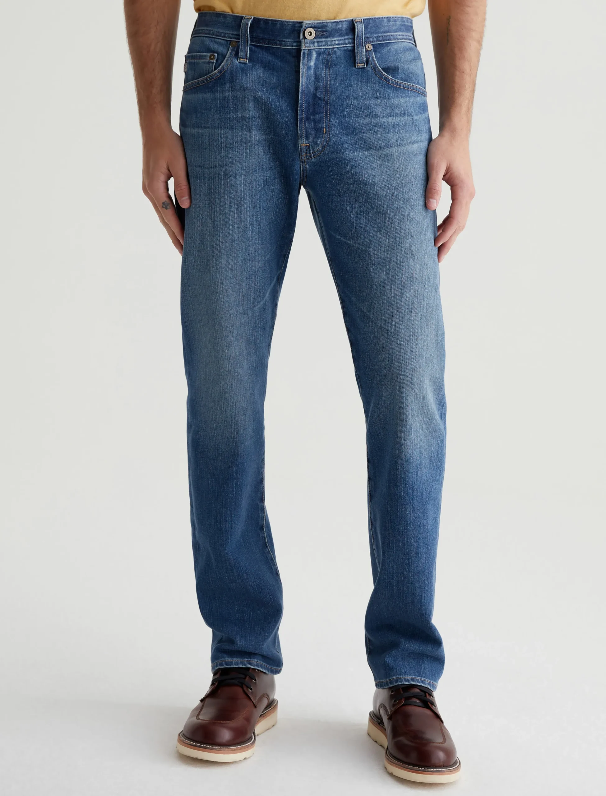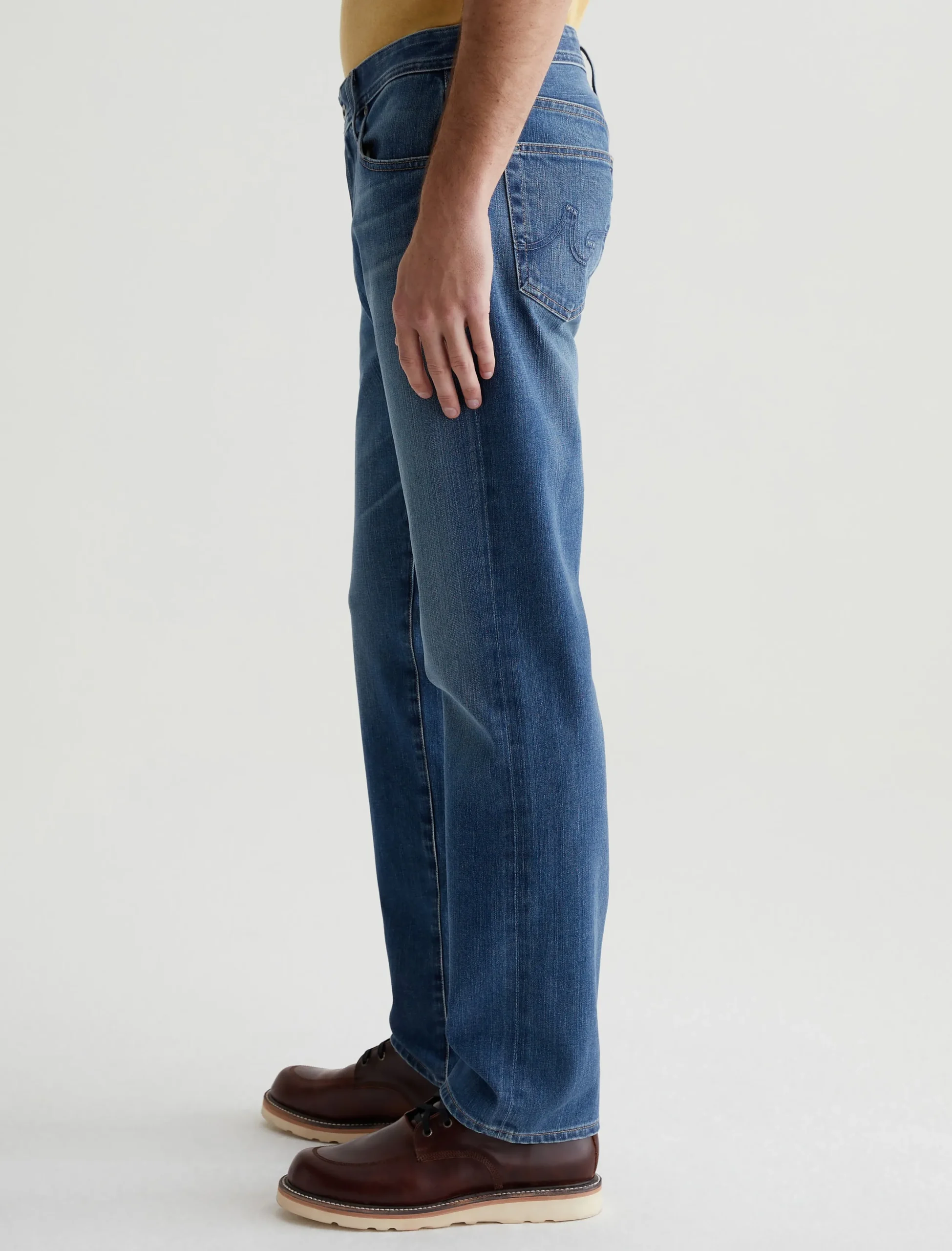 Everett is a slim straight jean for men. It’s designed with a comfortable mid-rise waist and a straight fit that’s relaxed from hip to the knee before slightly tapering at the leg opening. These slim straight men’s jeans feature classic five-pocket construction in 11.5 oz. 360° Denim with high stretch and a faded medium indigo wash.