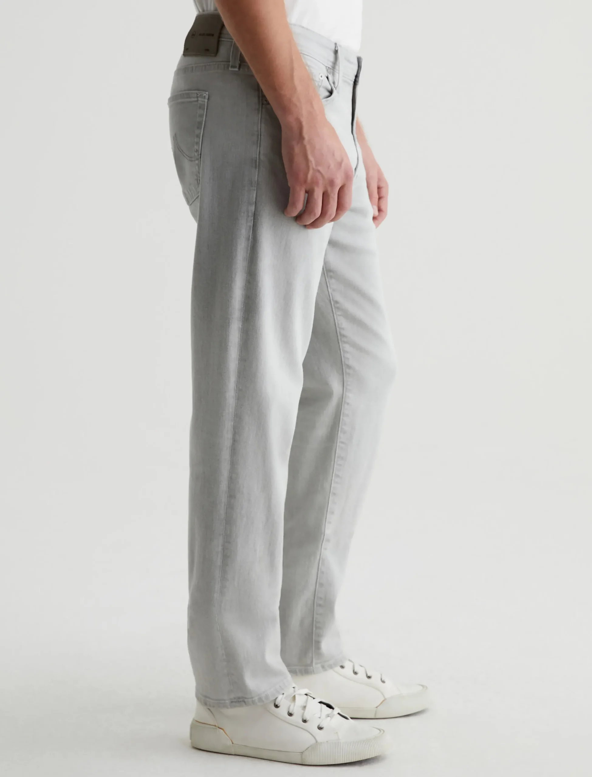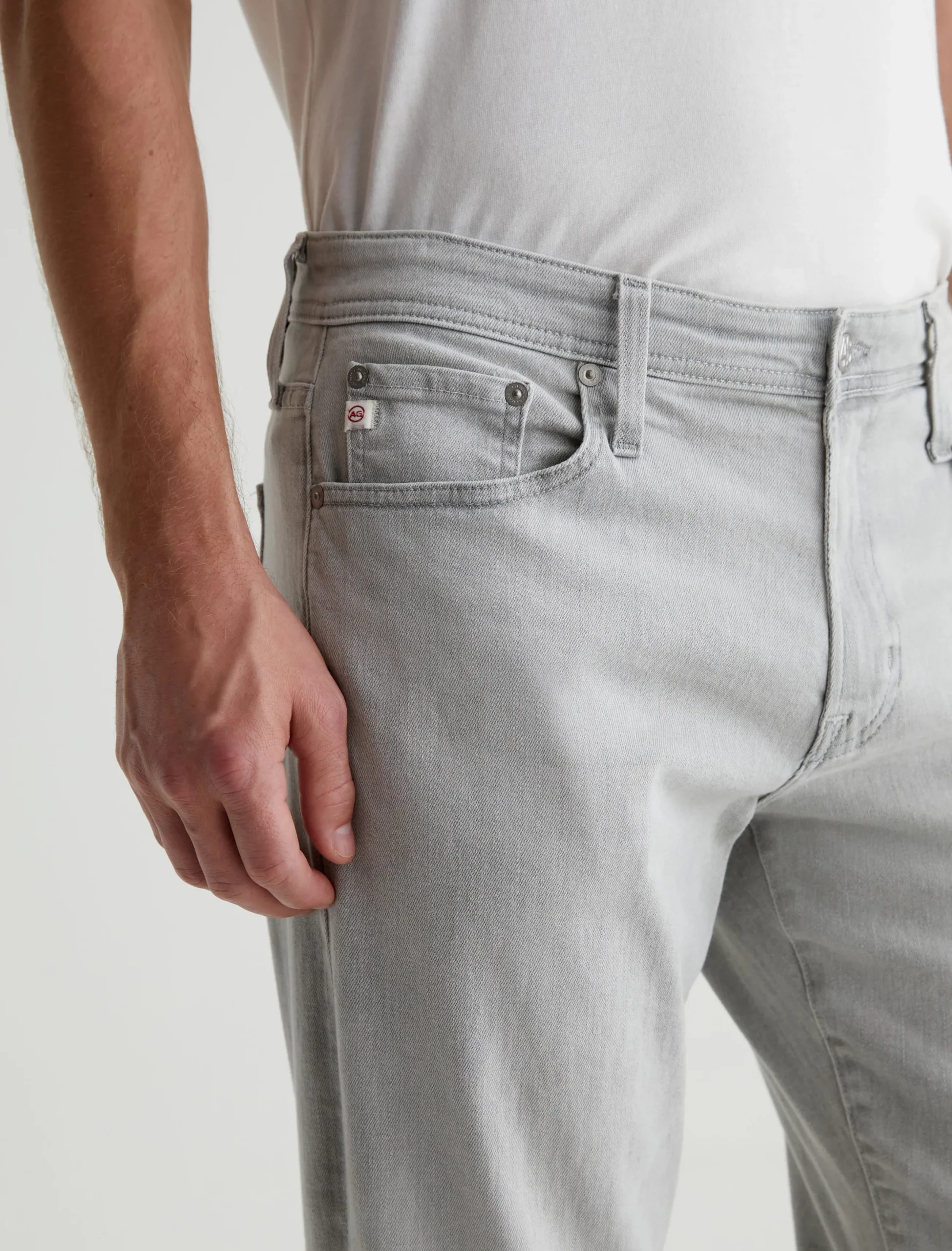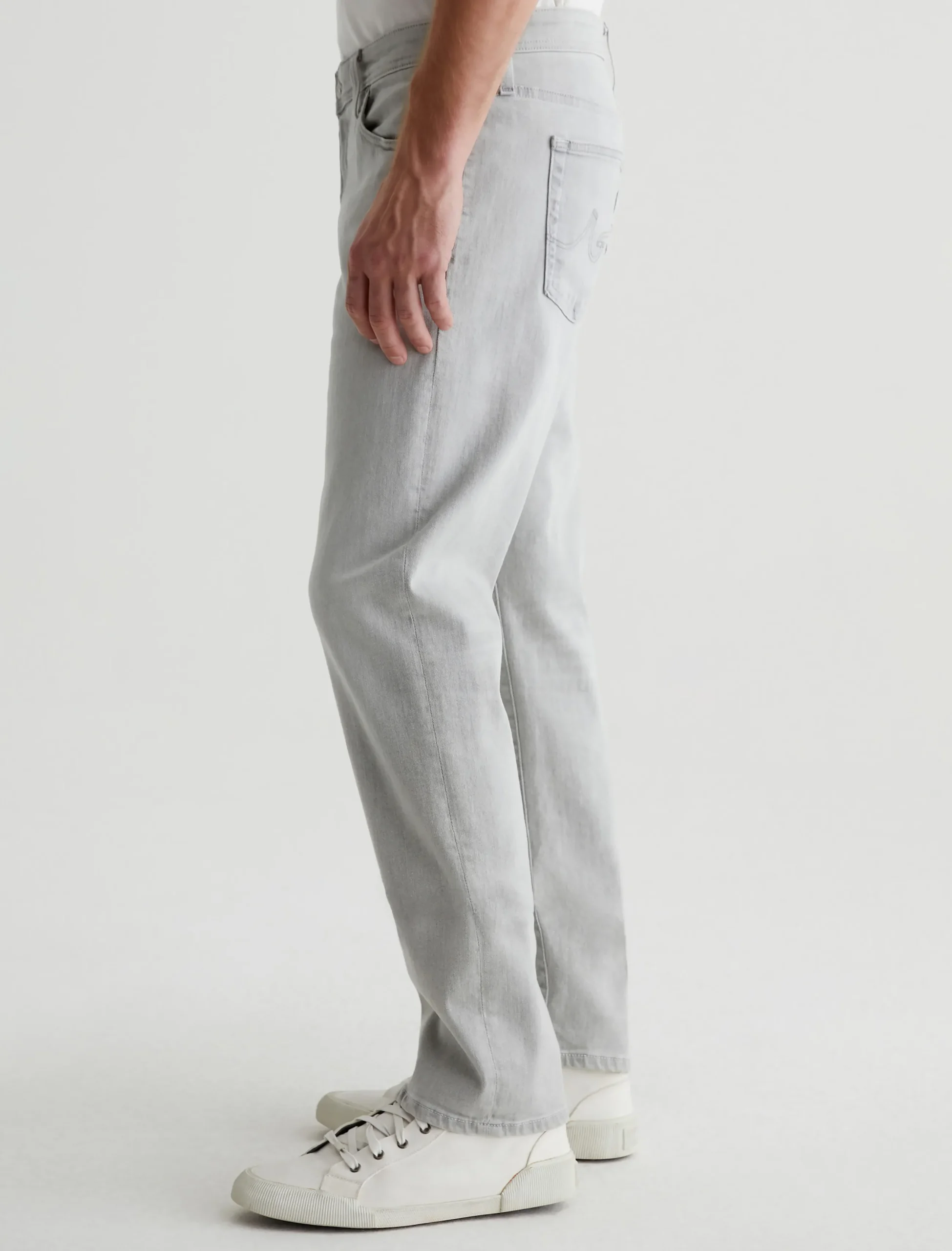 Our Everett slim straight jeans for men, updated here in pale grey with a 22-year AG-ed™ fade. Anchored by a comfortable mid-rise waist, the style has a straight fit that’s relaxed from hip to knee before slightly tapering at the leg opening. These slim straight men’s jeans are cut from 10 oz. Ashen Stretch Denim for elevated ease and enhanced recovery.