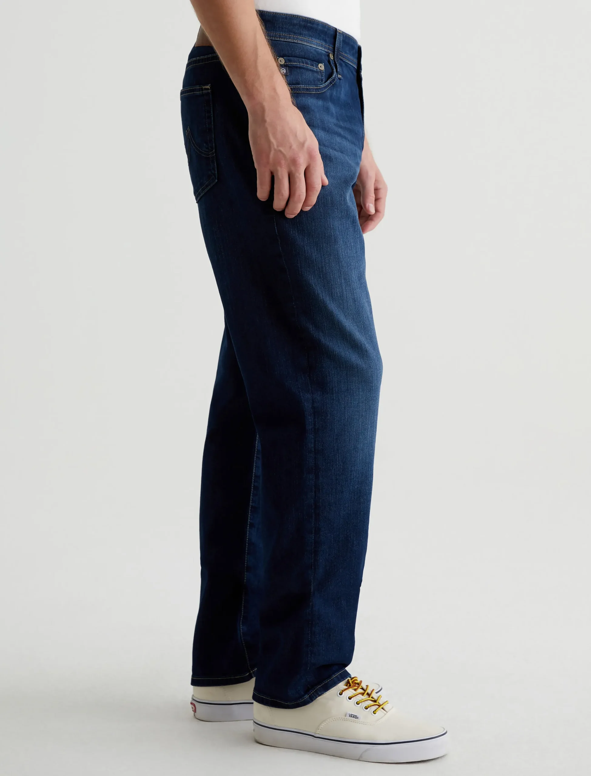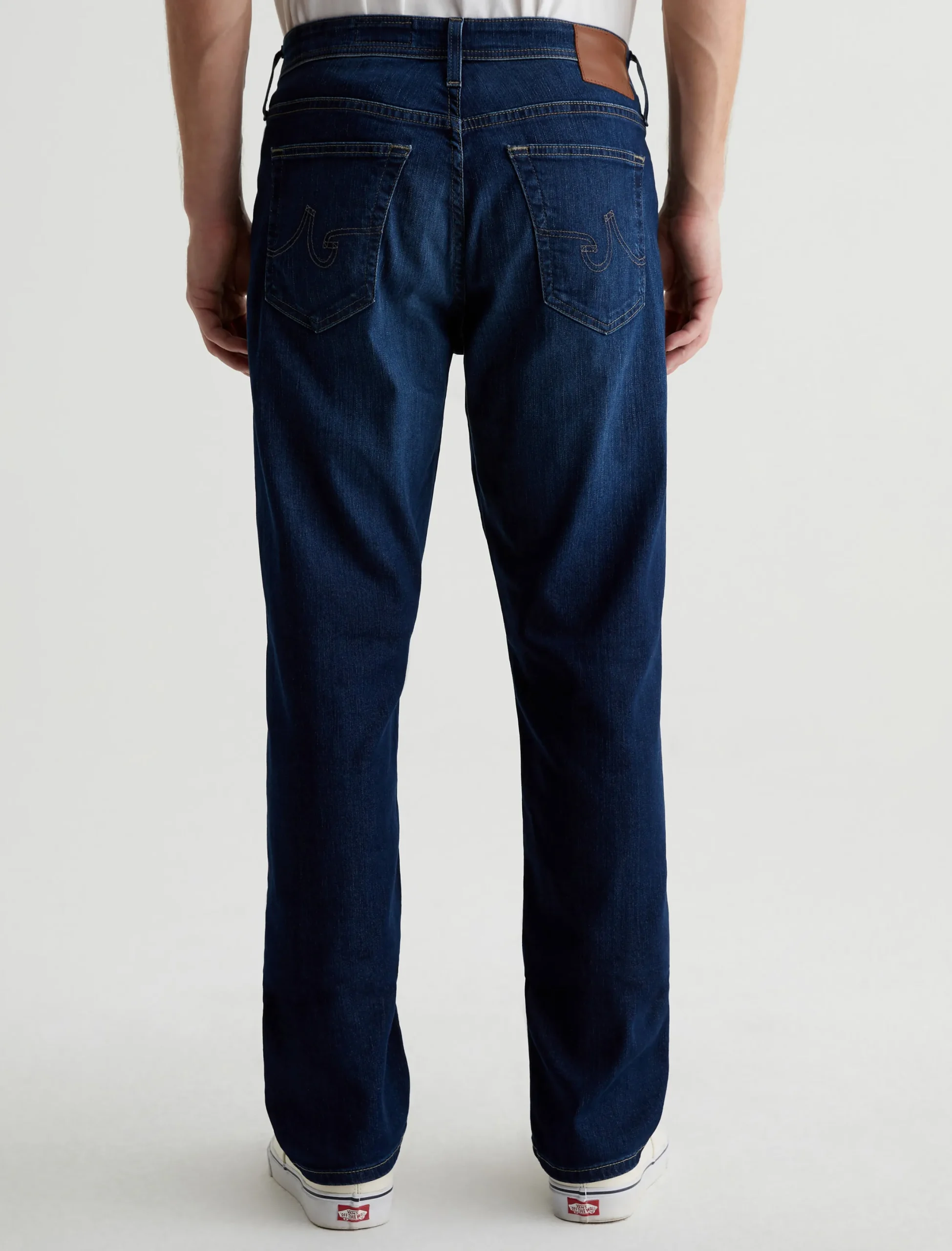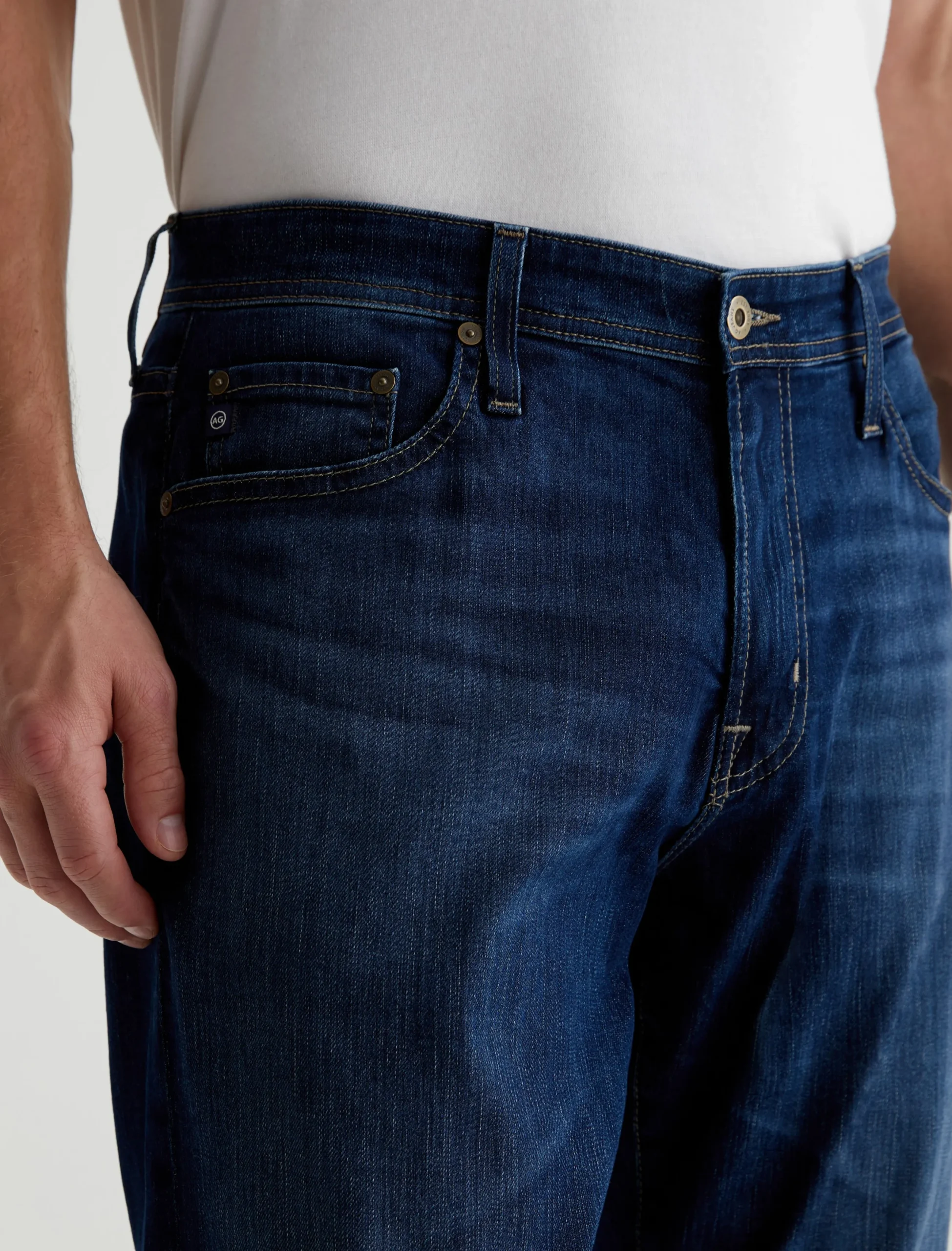Everett is a slim-straight fit for men, featured here in a dark indigo wash with fading and whiskering. The style has a mid-rise waist and a straight fit that’s relaxed from hip to knee before slightly tapering at the leg opening. These men’s slim-straight jeans are designed in 9 oz. Airluxe™ Aerial Nylon Denim with technical stretch that lets you move with ease.