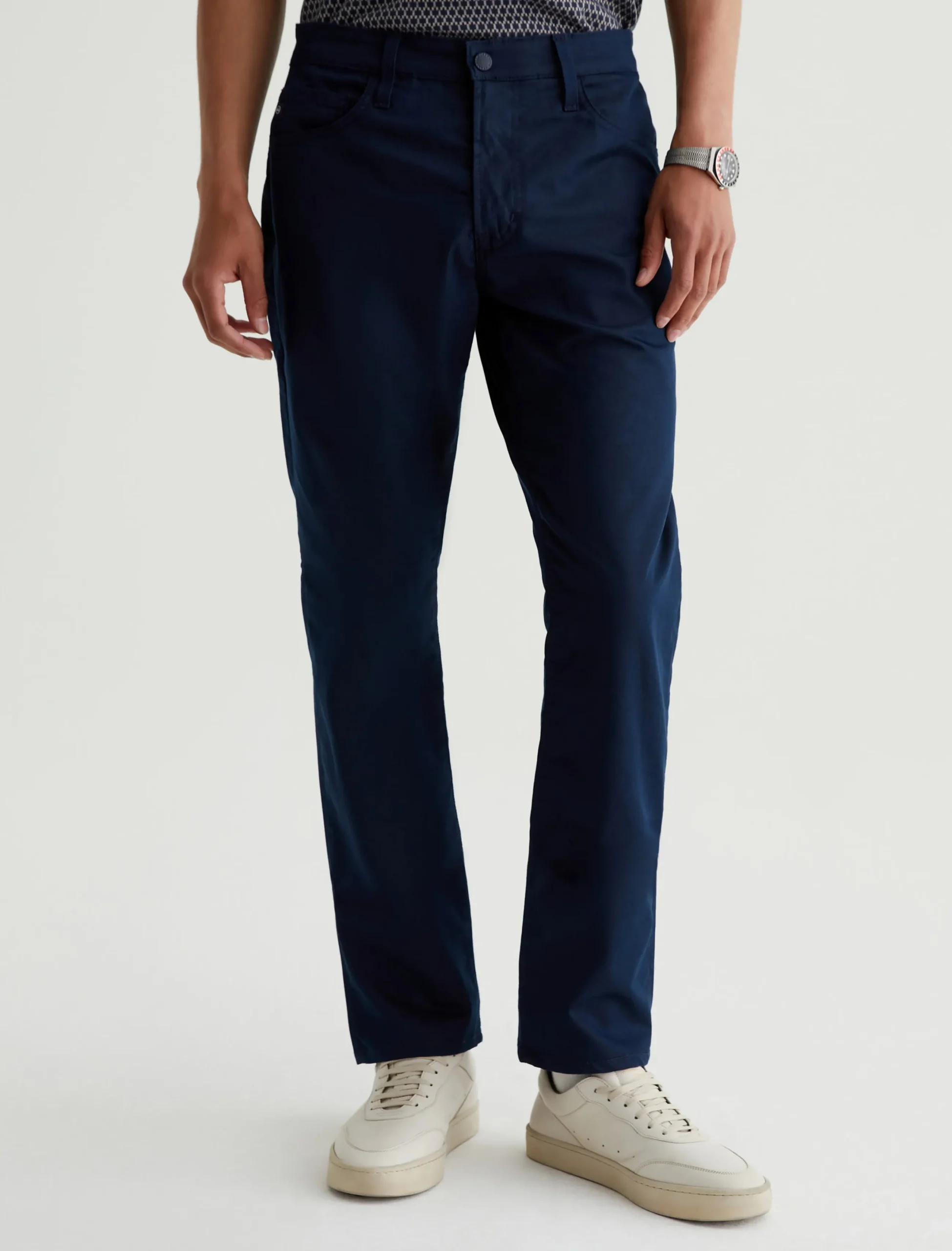 Our Everett slim straight offers exceptional comfort in 5.9 oz. Commuter Performance Sateen with active stretch and a refined feel. Anchored by a mid-rise waist, the five-pocket style has a straight fit that’s relaxed from hip to the knee before slightly tapering at the leg opening.