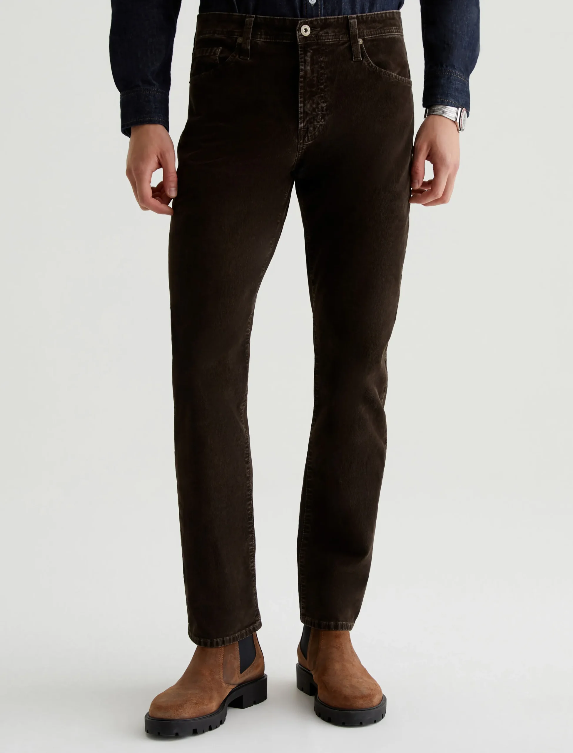 Our Everett slim-straight corduroy pants for men have a soft, plush feel in 8.8 oz. Range Stretch Cord fabric from Japan. Designed with fine-wale construction, this pair has been sulfur-dyed for a rich brown shade that’s got subtle variations of color at the seams and edges. The style has a mid-rise waist and a straight fit that’s relaxed from hip to knee before slightly tapering at the leg opening.