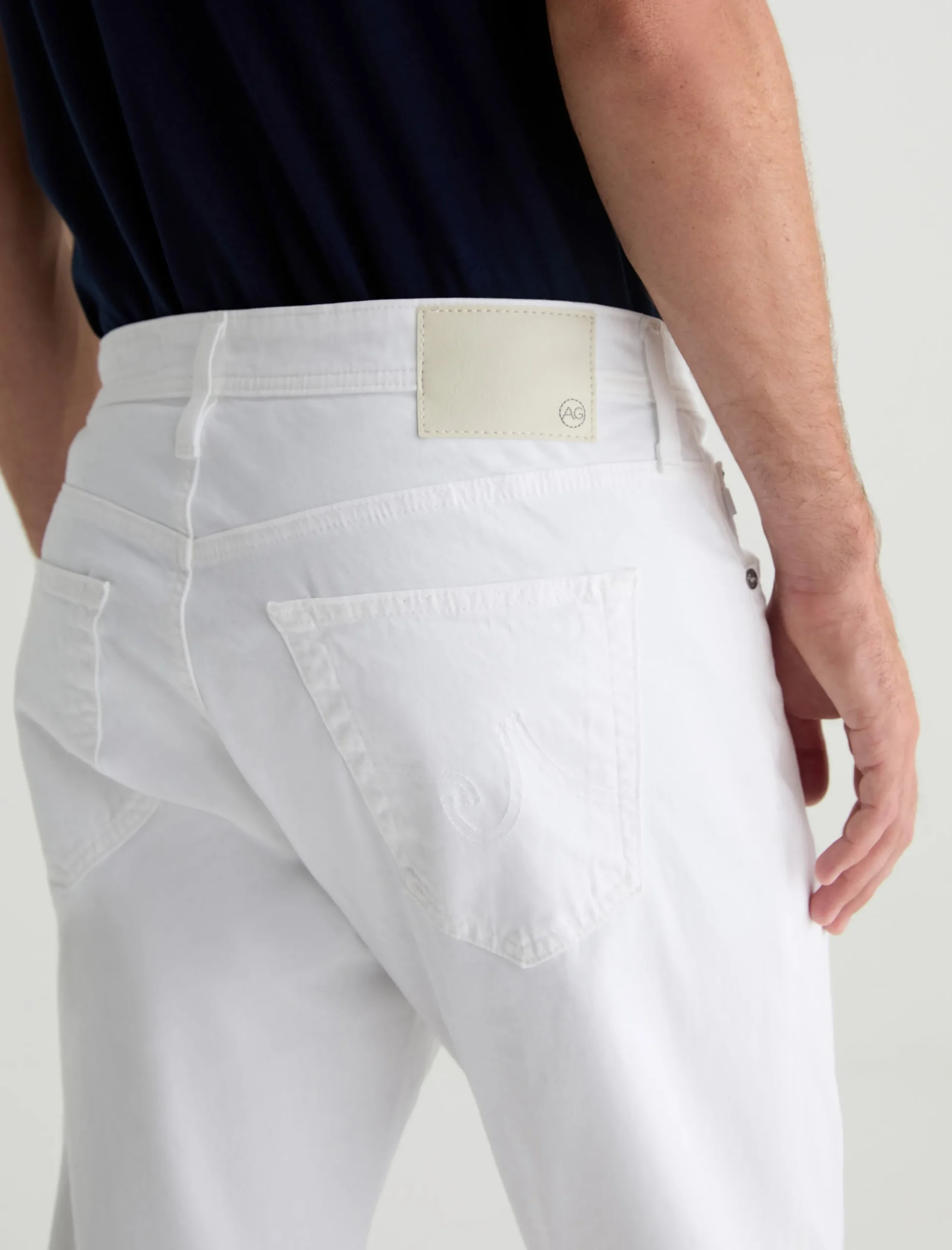 Everett is a slim straight jean for men featuring a white hue—cut in a comfortable mid-rise waist with a straight fit that’s relaxed from hip to the knee before slightly tapering at the leg opening. This men’s slim straight jean is designed in 8.4 oz. Sueded Stretch Sateen, a super stretch fabrication for maximum comfort and understated luxury.