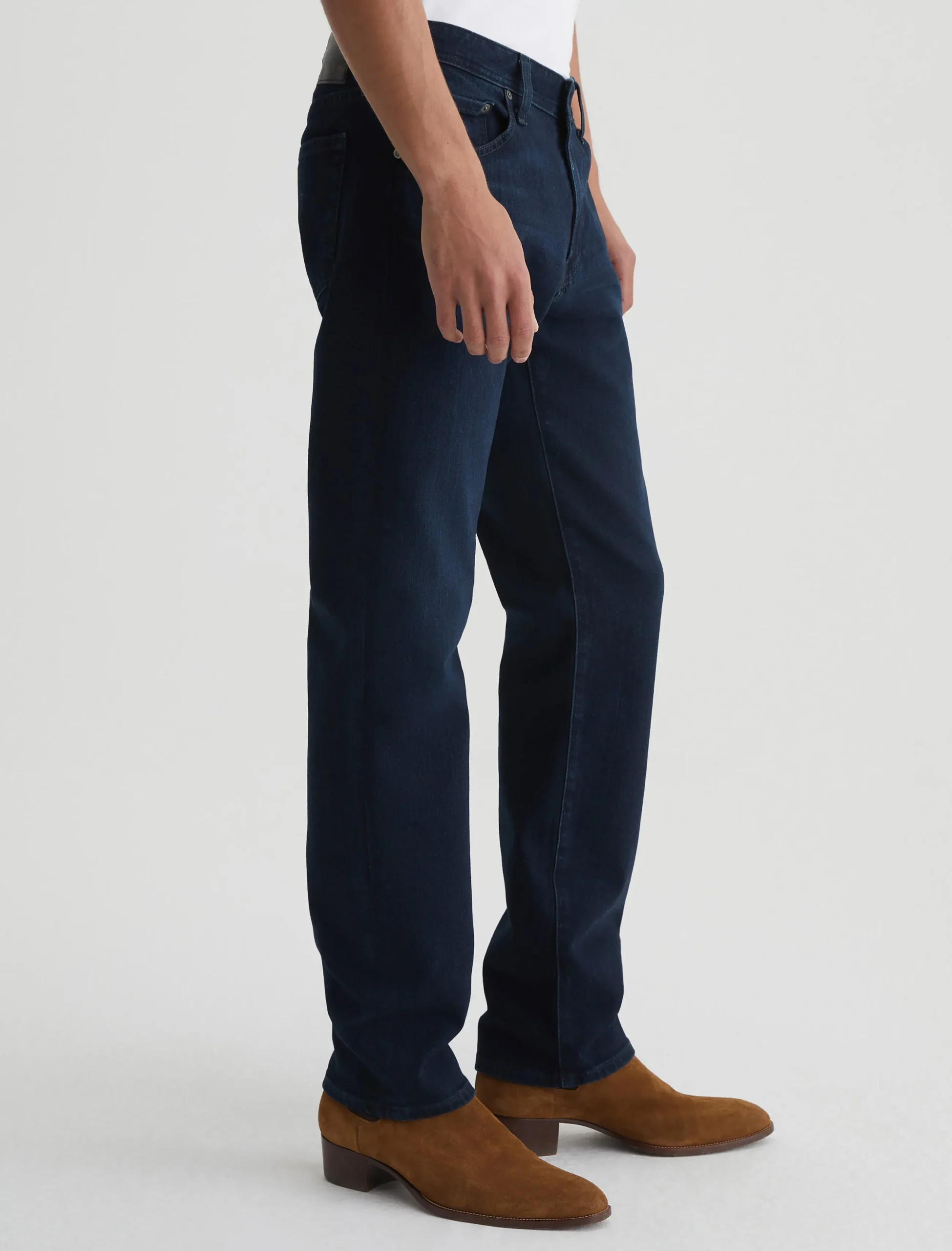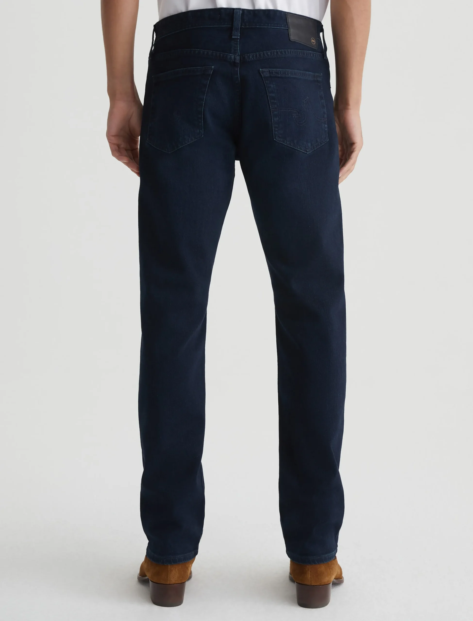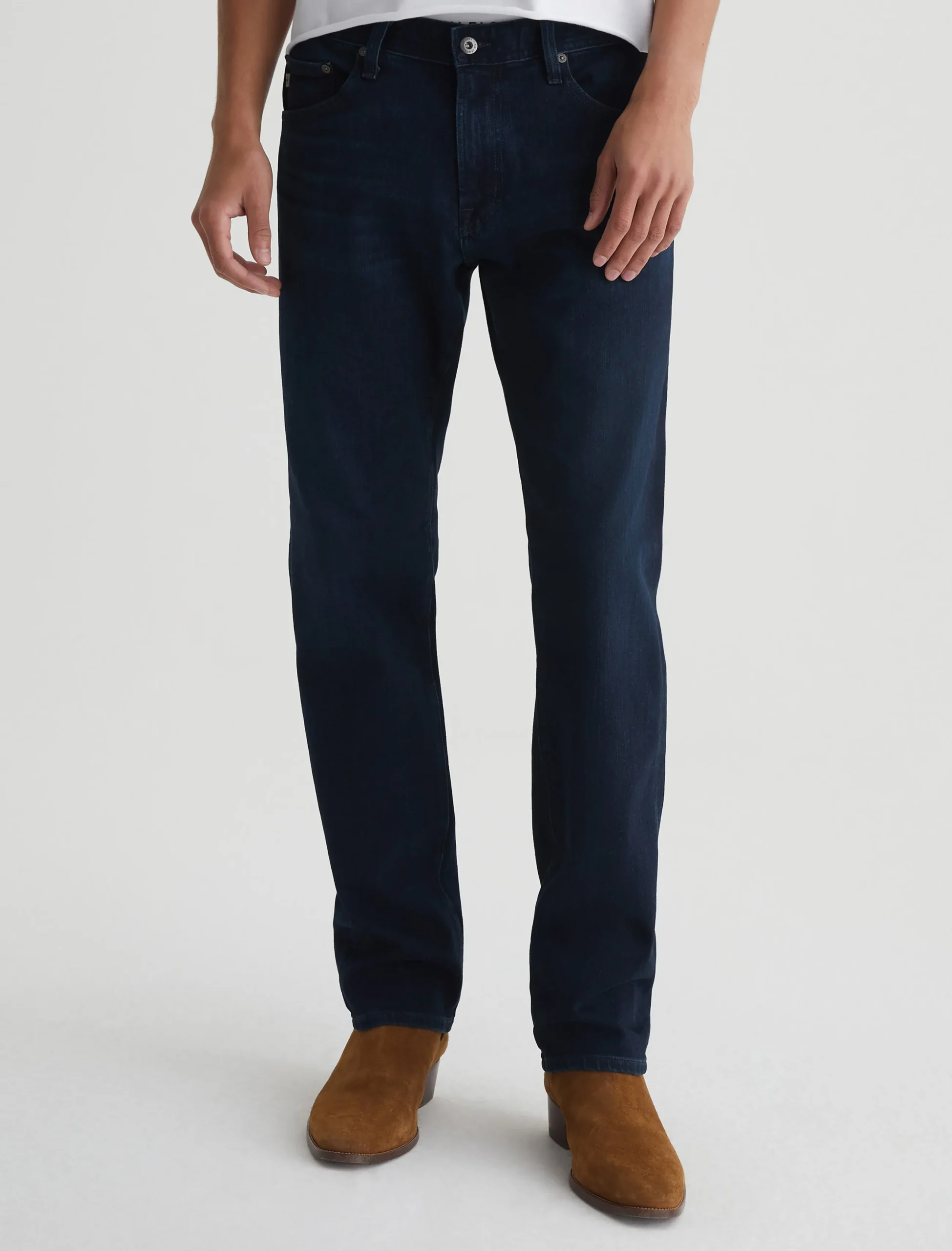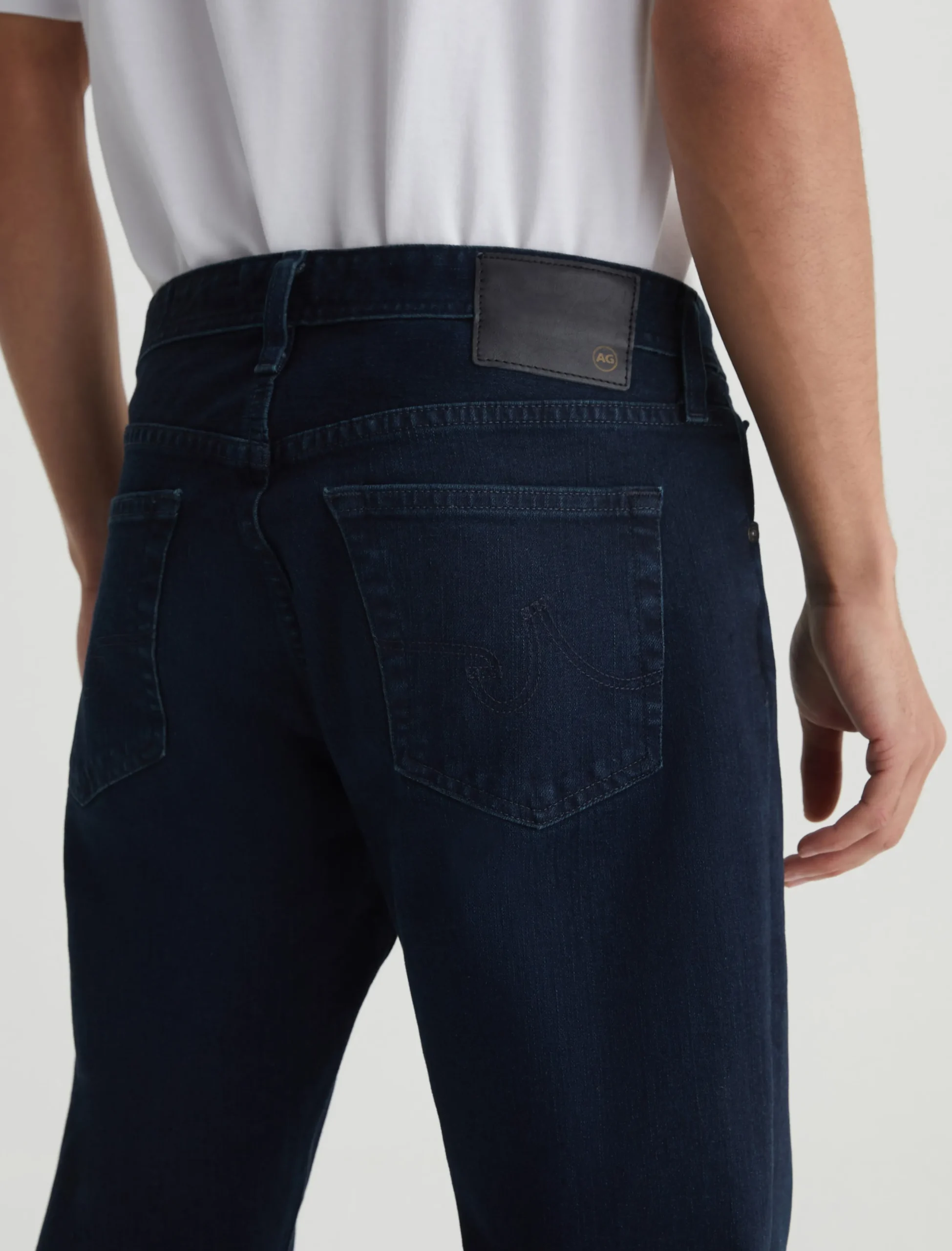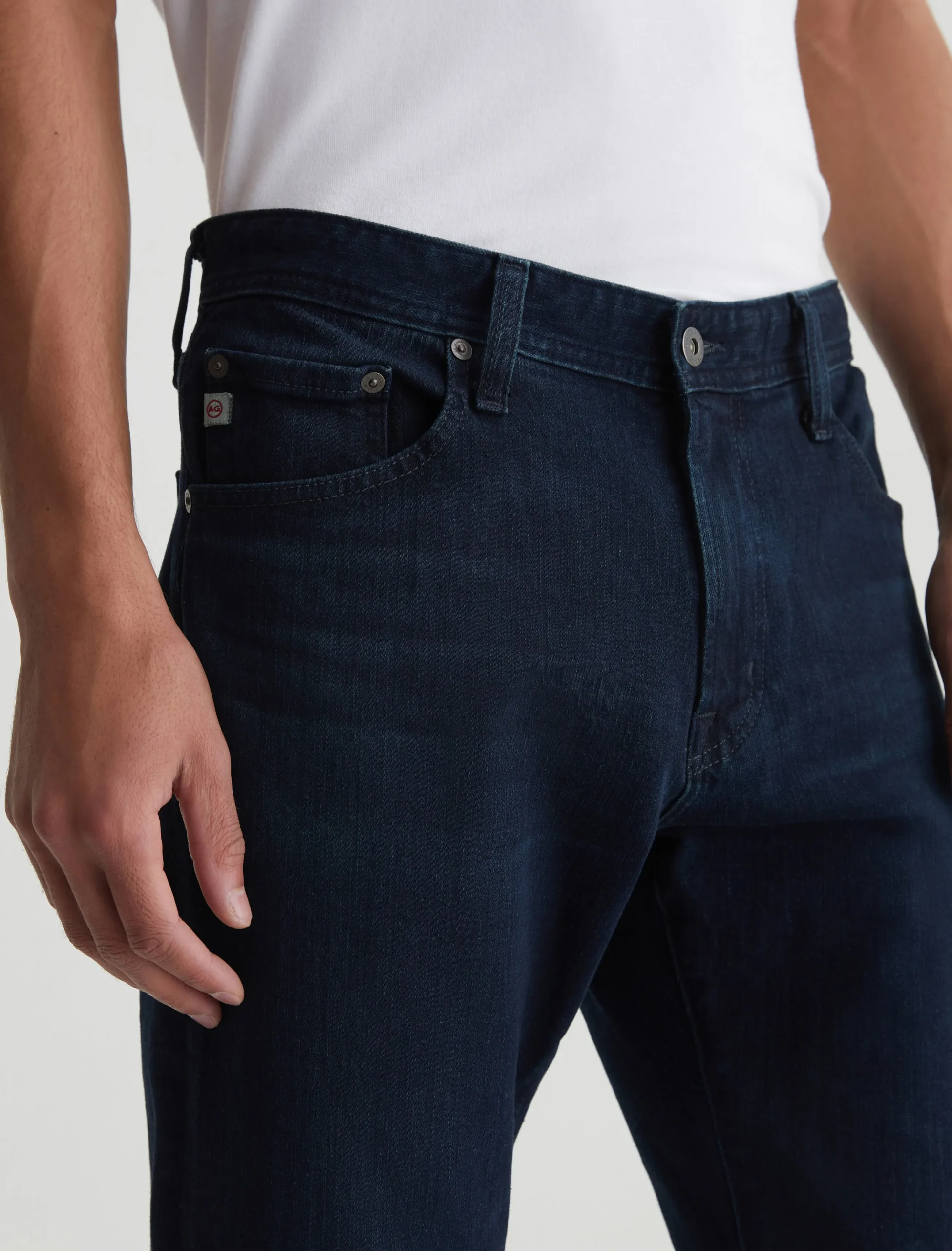 The Graduate is a tailored leg jean for men featuring a dark wash. The Graduate is cut in a slim mid-rise waist with a relaxed fit from the hip to the knee before tapering at the leg opening. This men’s slim straight jean is designed in 11.5 oz. 360° Denim.