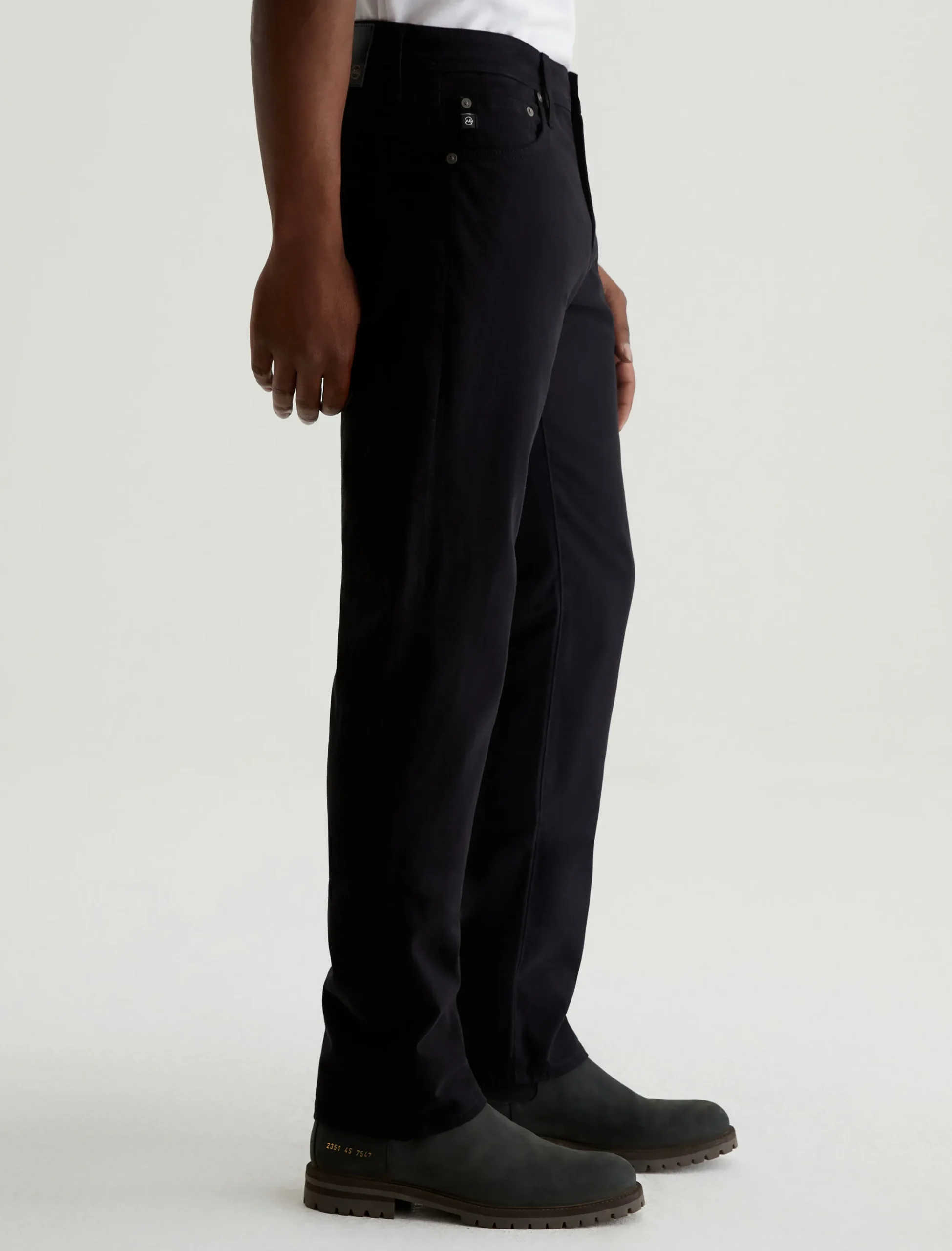 Graduate is a tailored leg jean for men featuring a rich black hue. Graduate is cut in a slim mid-rise waist with a relaxed fit from the hip to the knee before tapering at the leg opening. This men’s slim straight jean is designed in 8.4 oz. Sueded Stretch Sateen.