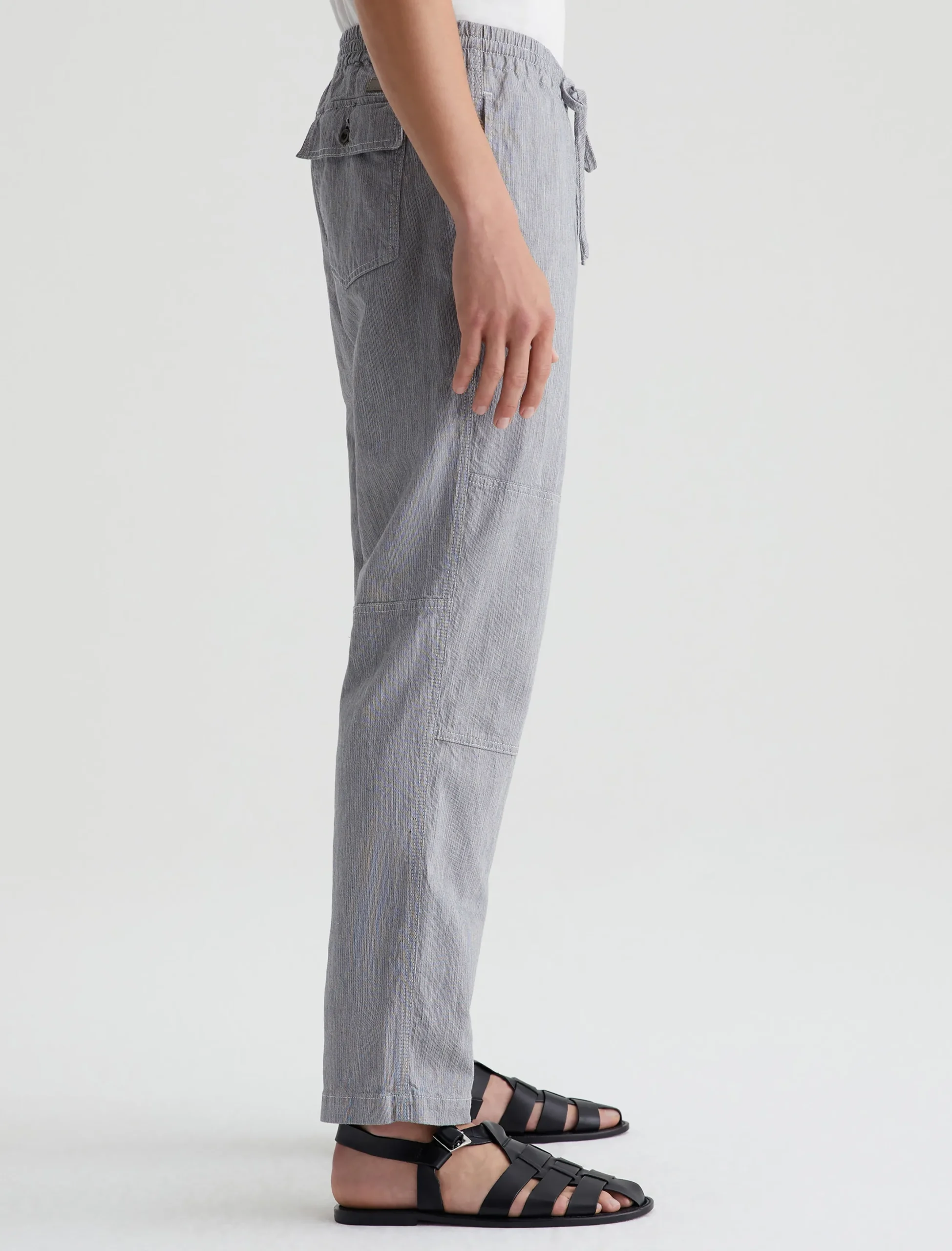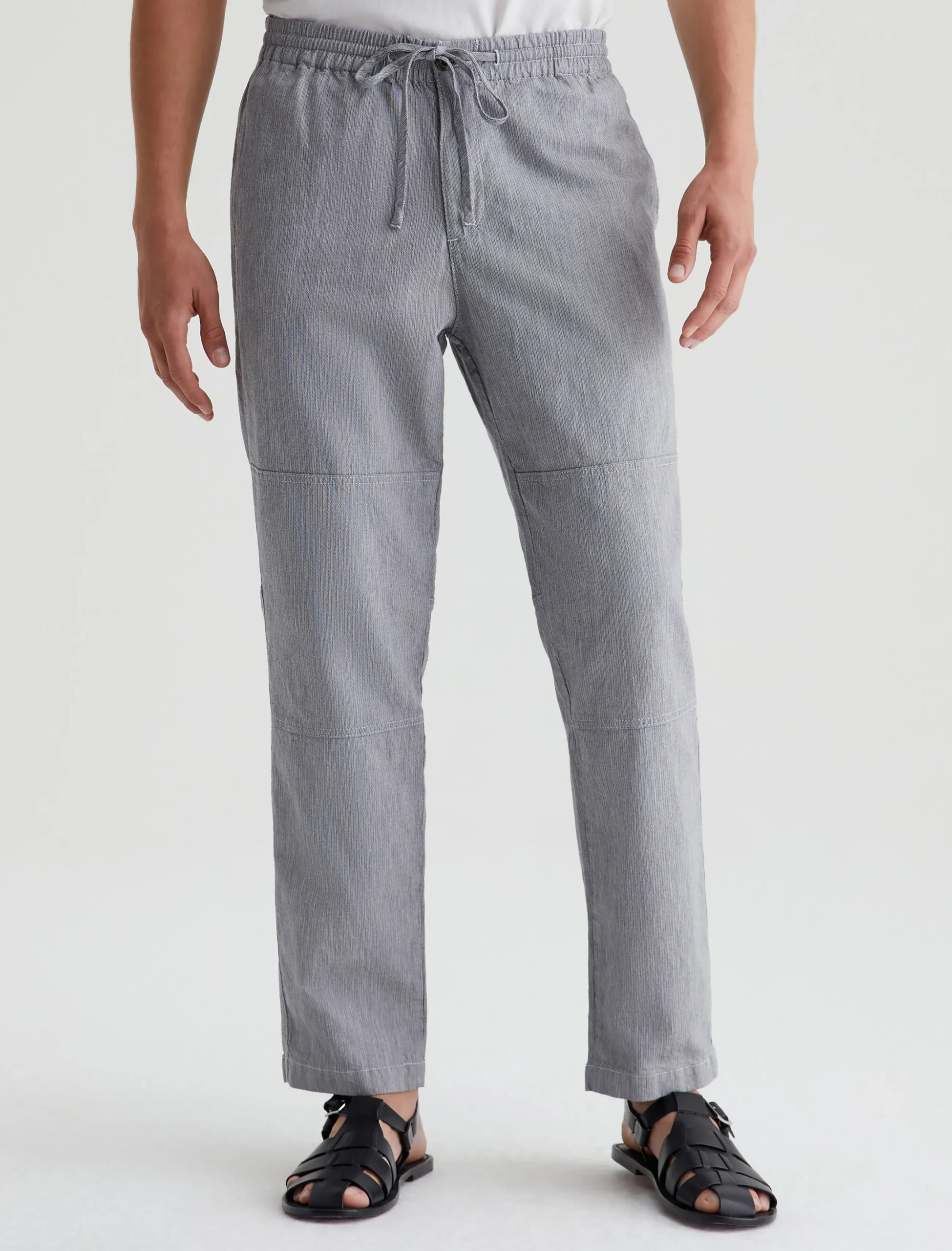 The Henry relaxed drawstring pant keeps your weekend style on point. Lightweight and subtly striped in ayarn-dyed comfortable elasticized waist with a contrasting drawstring, these cotton pants have an easy fit with on-seam pockets and paneled knees.