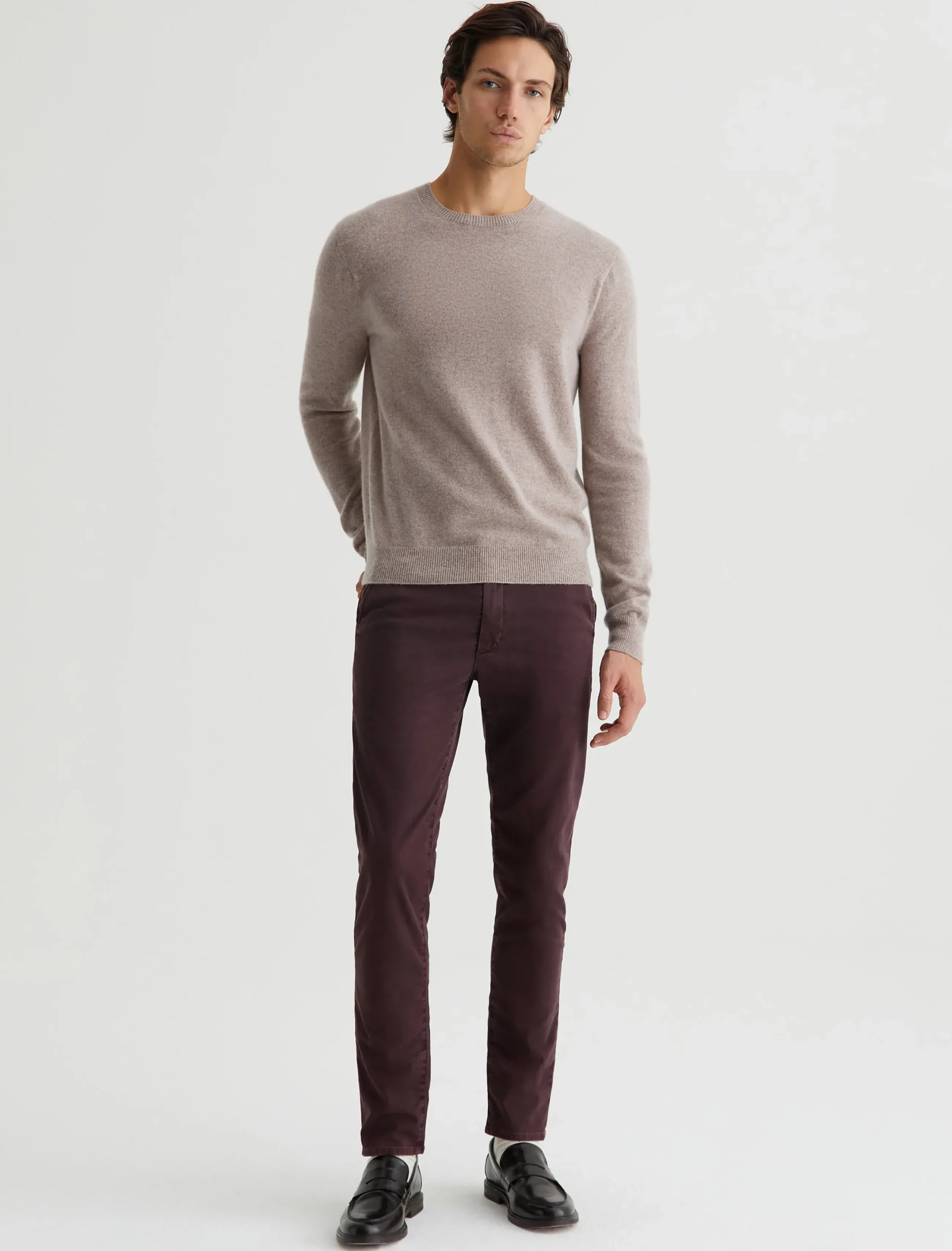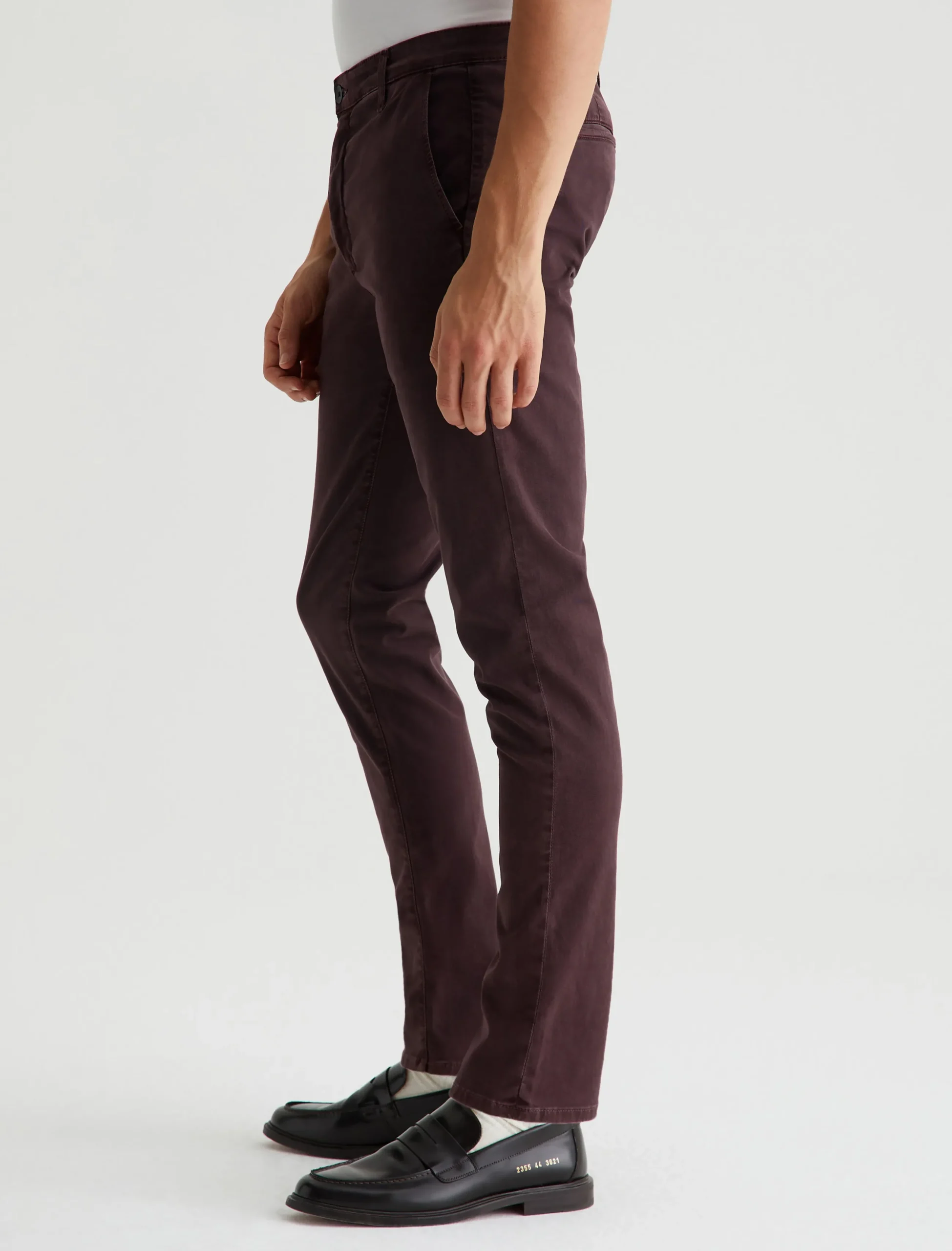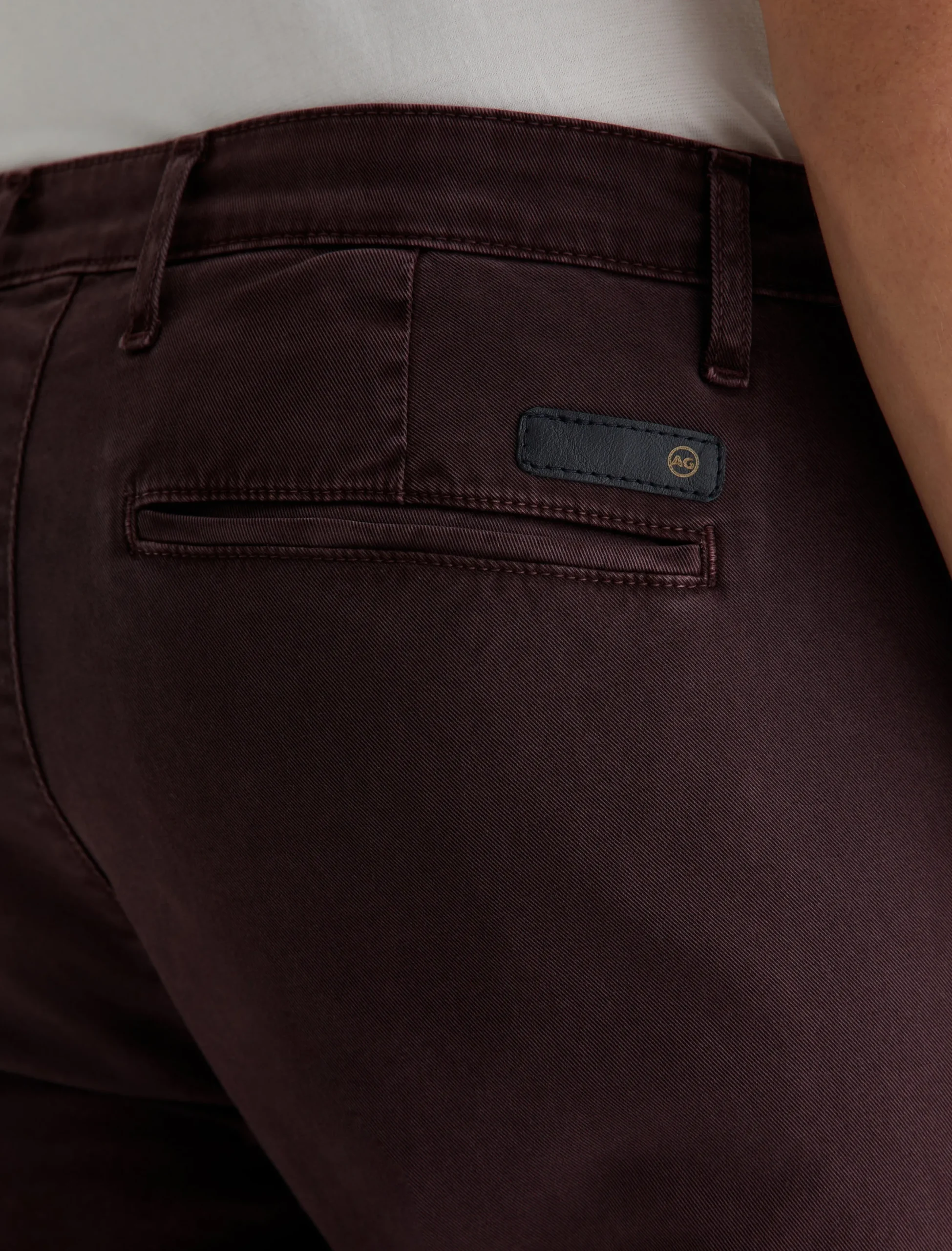 Jamison is a skinny trouser cut from 7.9 oz. Sorrento Stretch Twill in a sulfur-dyed burgundy shade. The tailored style has a slim upper block and tapered leg openings. Slant front pockets and welt pockets at the back complete the tailored look..