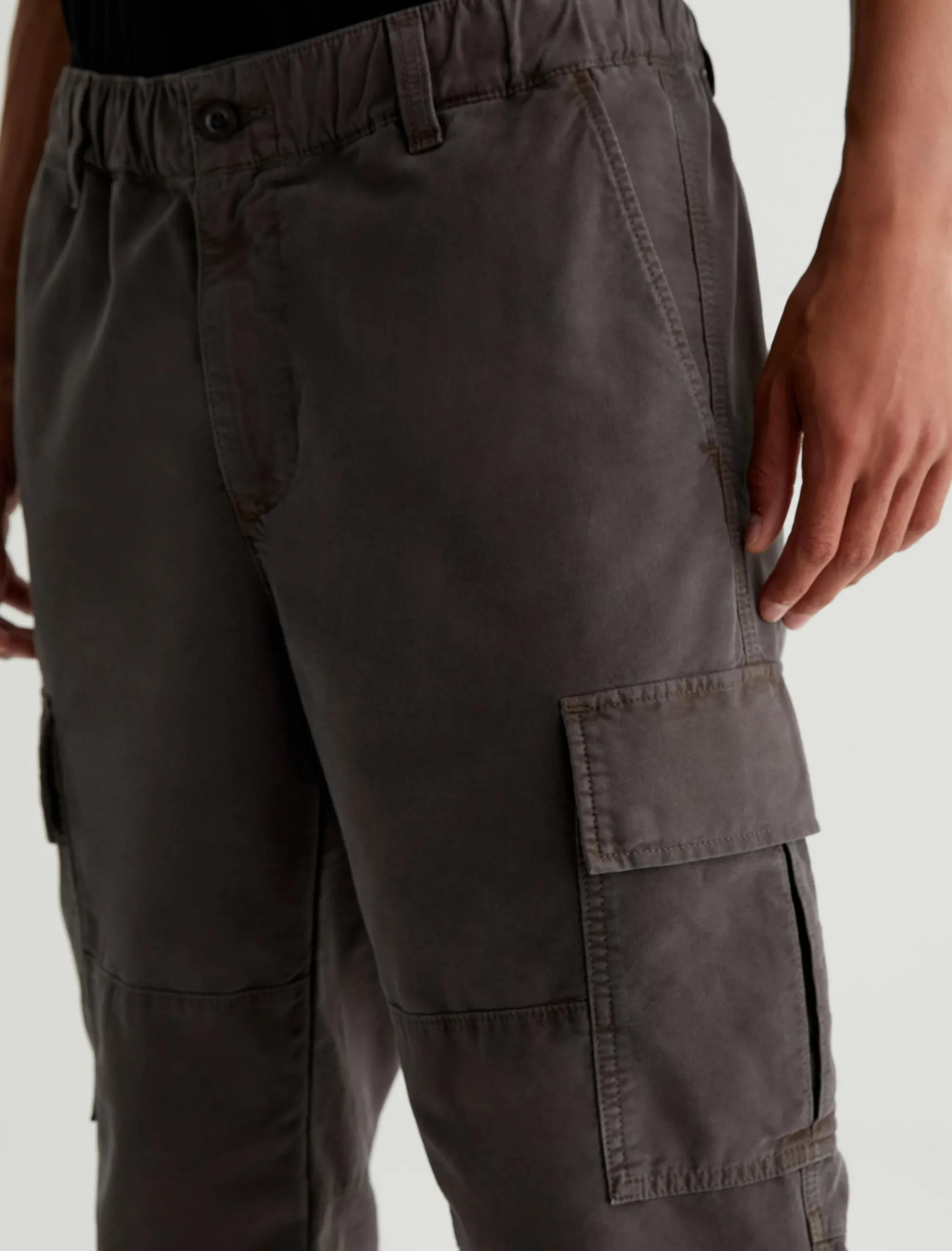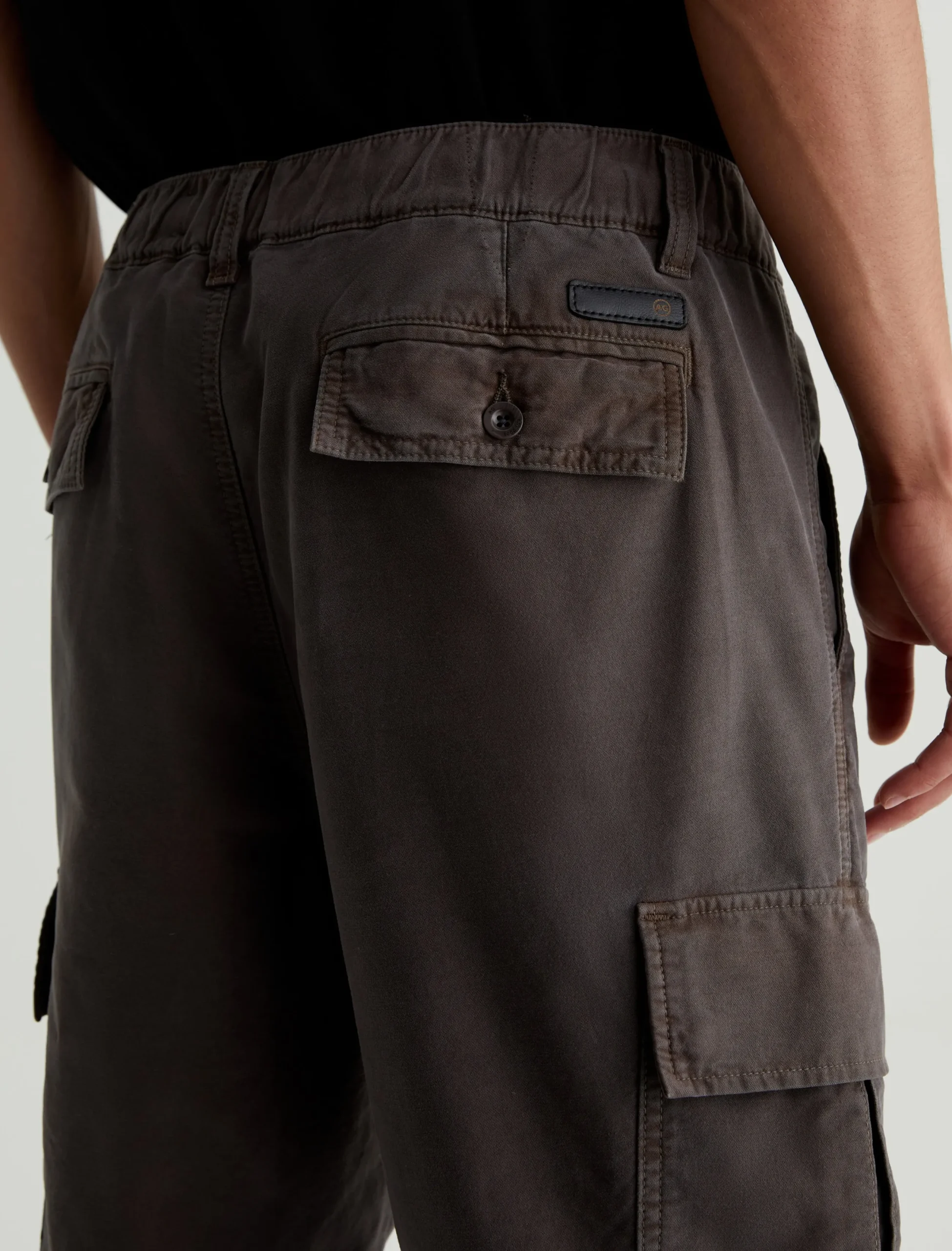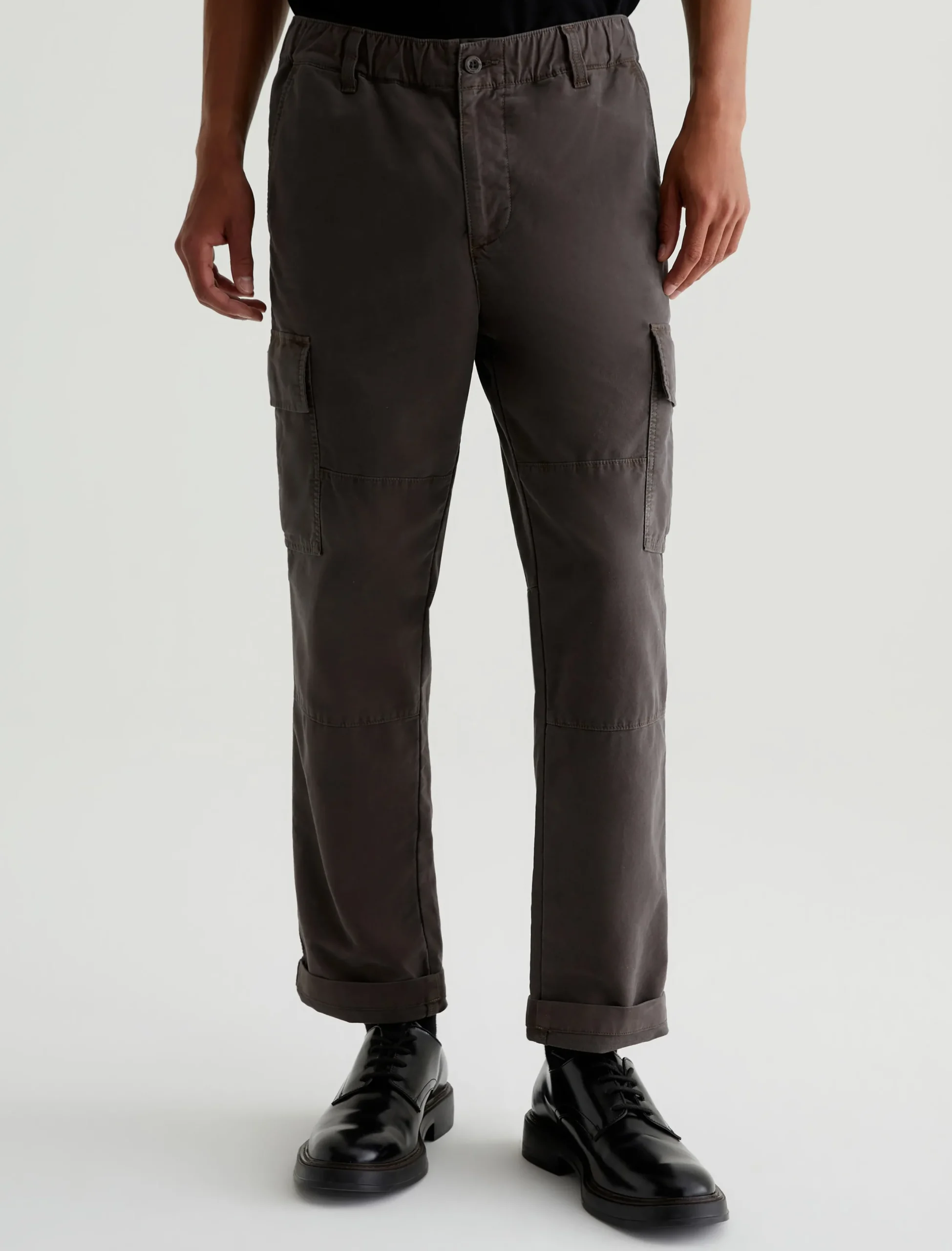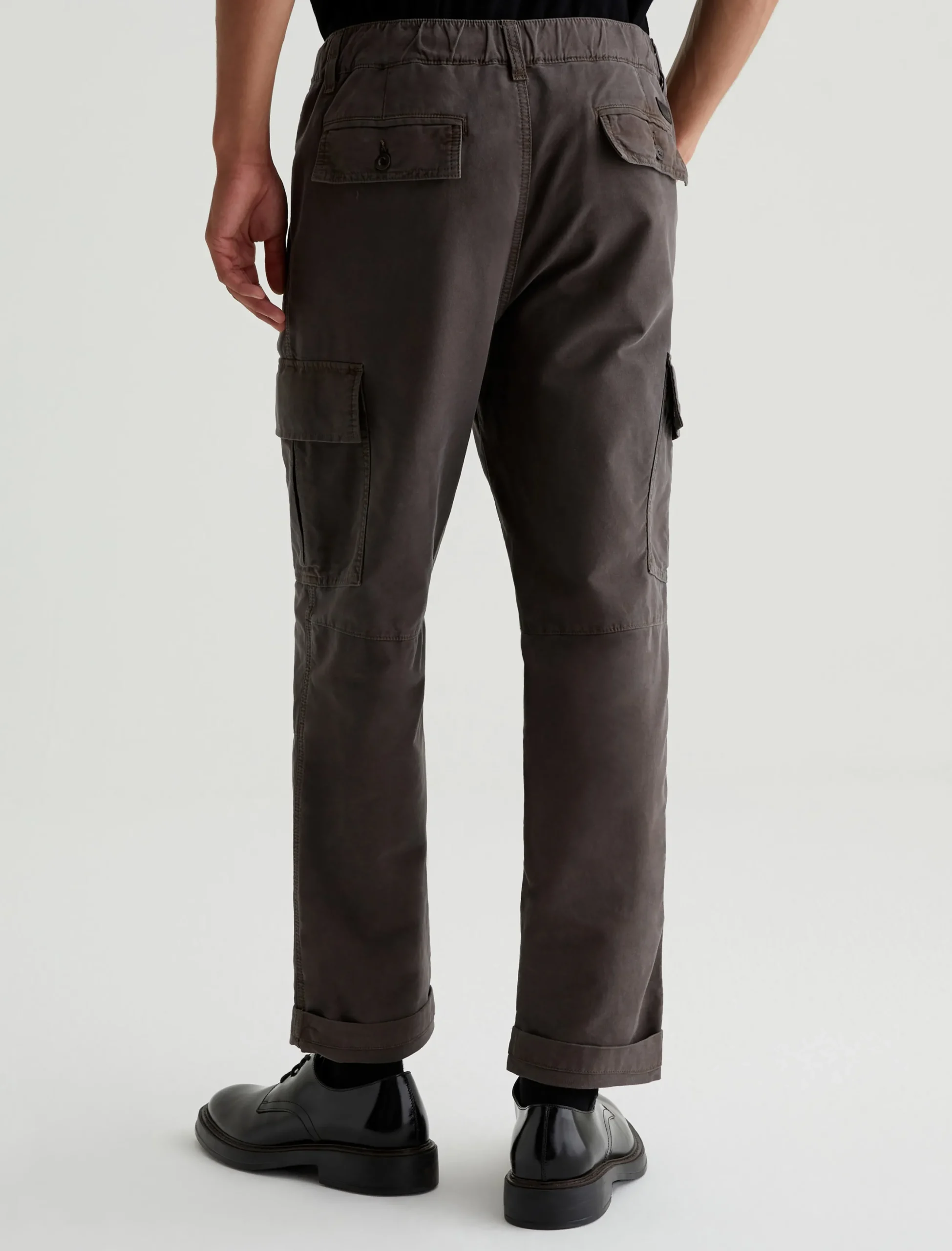The Kace 28 Cargo pants combine a modern straight-leg fit with utility-inspired details—paneled knees, cargo pockets at the sides, and flap pockets at the back. Cut from our 6.9 oz. Flex Cotton Blend in dark grey, the mid-rise pair has a relaxed fit from hip to knee before tapering to a cuff-ready leg opening. It’s got a comfortable elasticized waistband with a zip fly and button closure, plus an interior drawstring so you can adjust the fit.