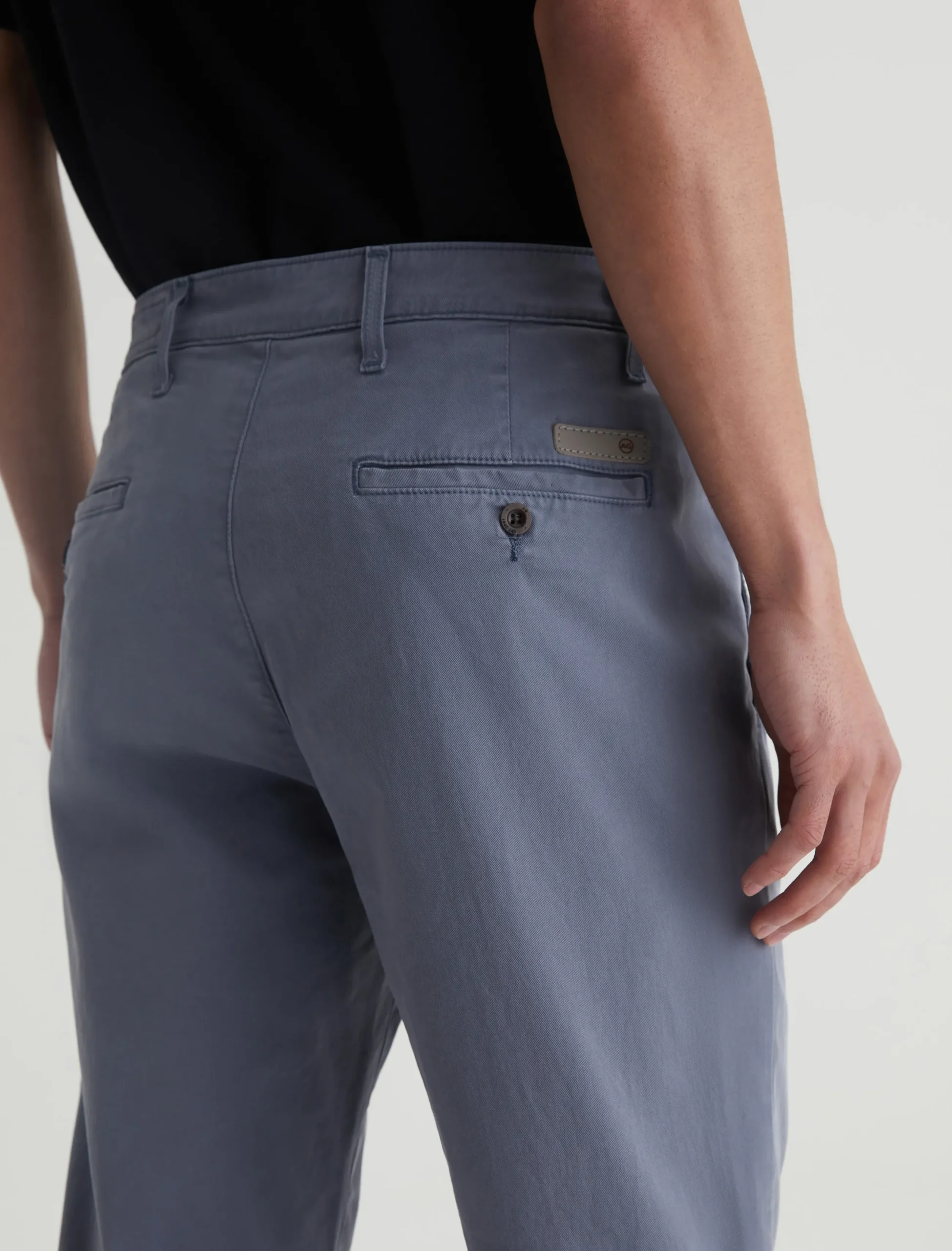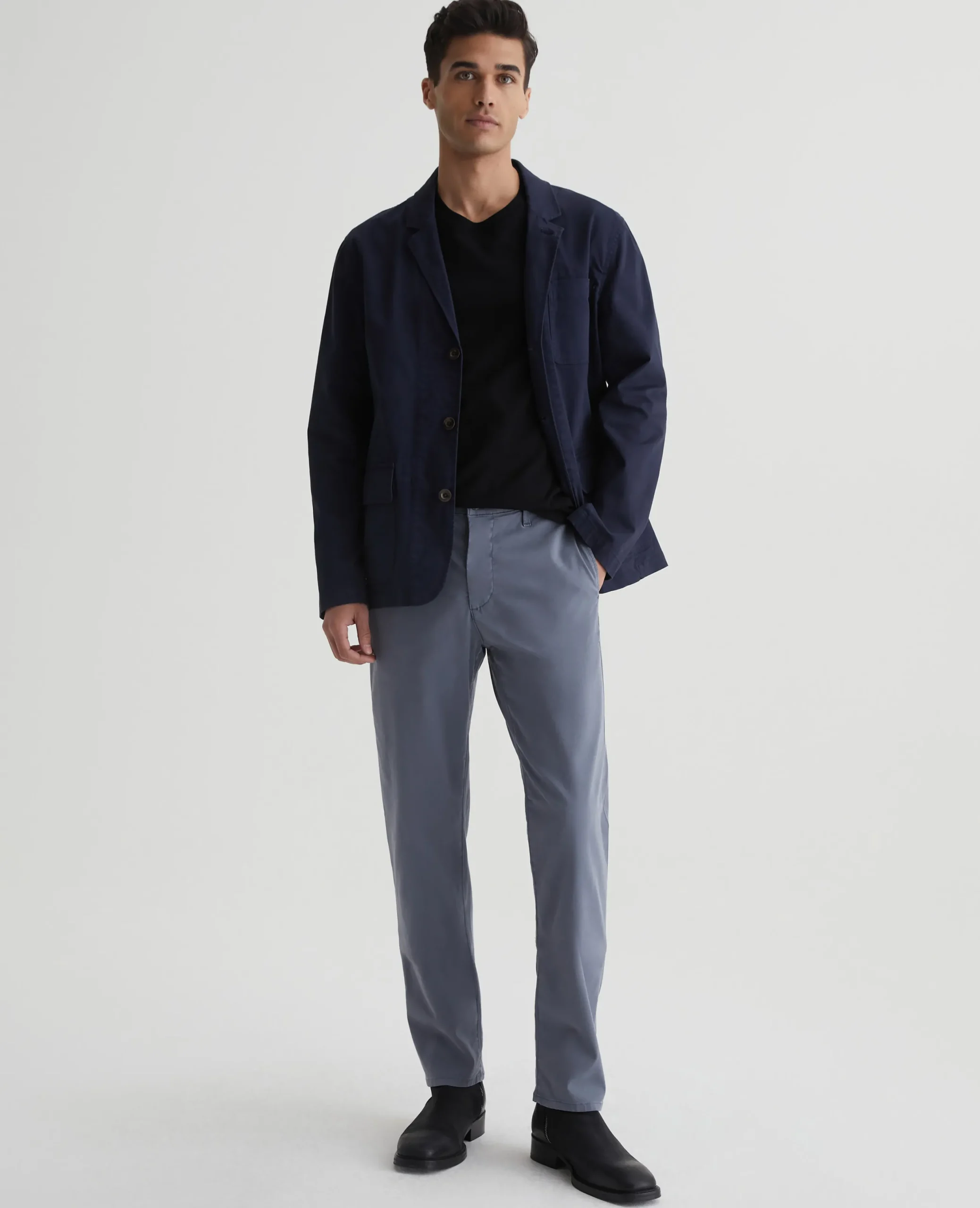 Kullen is a slim trouser crafted from 7.9 oz. Sorrento Stretch Twill, a refined Italian fabric in a light blue shade. These slim-cut men’s pants feature on-seam pockets for a streamlined aesthetic. Welt pockets at the back complete the look.