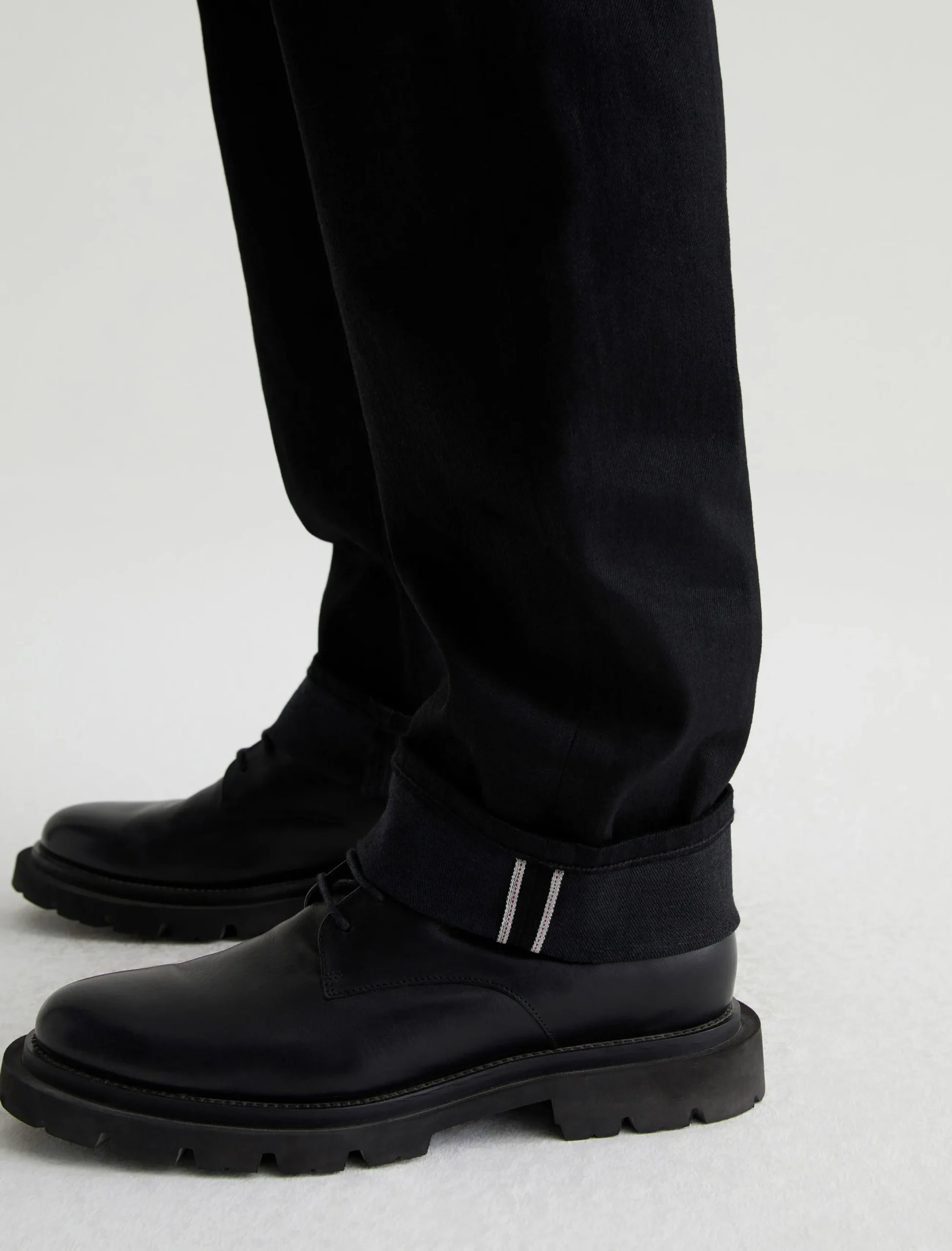 The Lochlan Trouser is updated in a 12 oz. Double Black Stretch Selvage Denim from Japan’s Kaihara Denim mill. Designed in 3×1 right-hand twill construction, the fabric features a vintage slub character and is rope-dyed to achieve its double sulfur-black cast. Detailed by a red ticker along the self-finished edge. Featuring more room through the thigh, knee, and calf, these pants are great option for athletic frames and guys who want a more easygoing fit. On-seam hip pockets and welt back pockets complete the look.