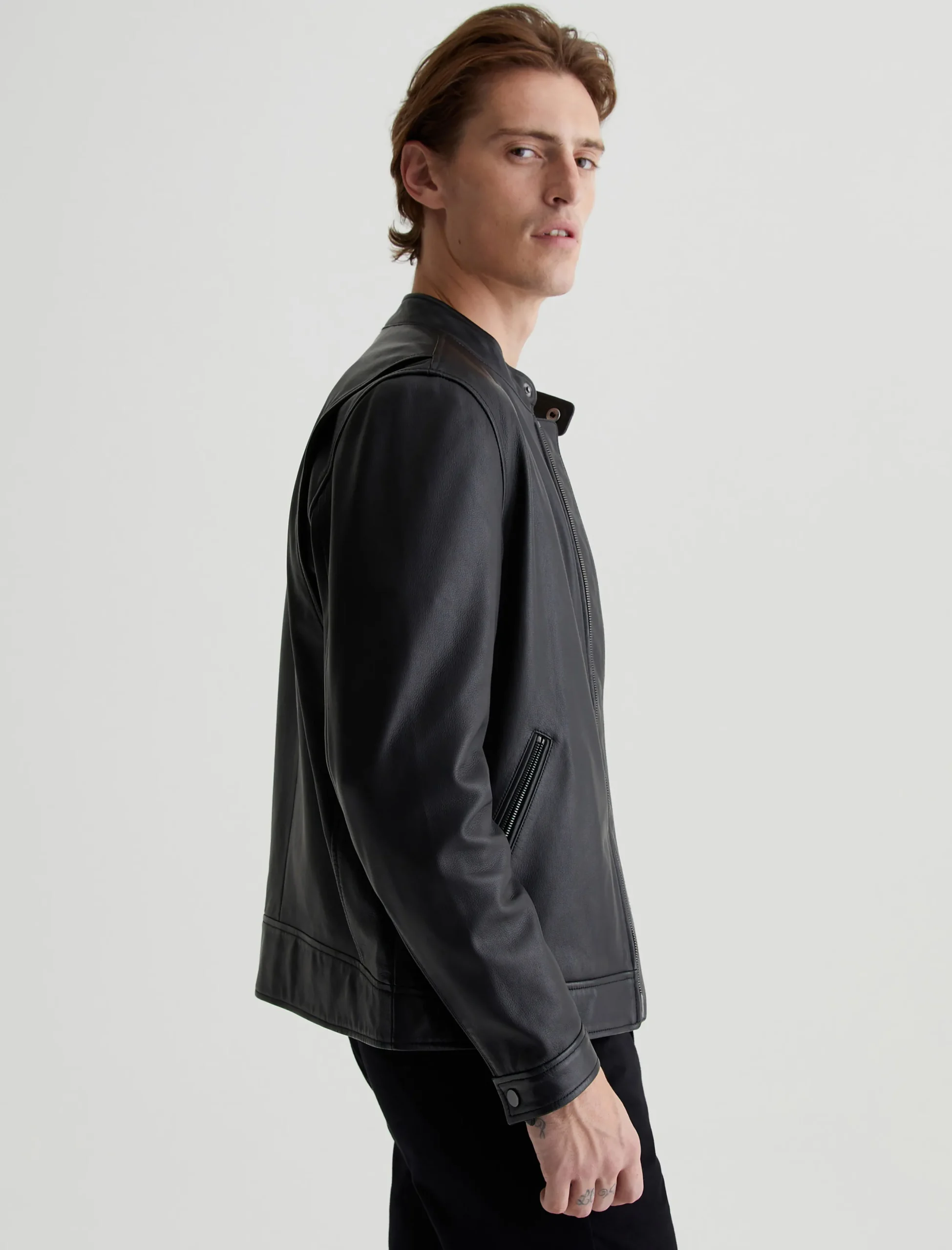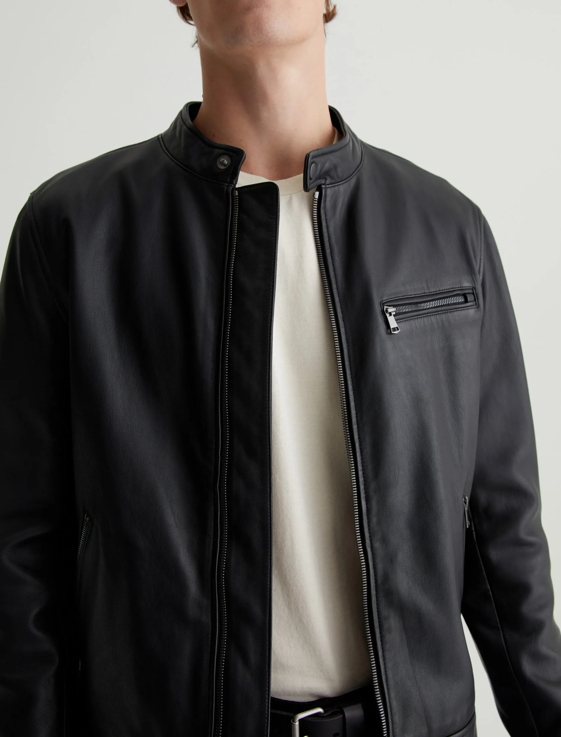 Crafted from supple black leather, the Marcel Jacket channels classic café racer style. Featuring zipped cuffs and multiple pockets, it’s a piece that gets even better with time. You’ll layer this one on for years to come.