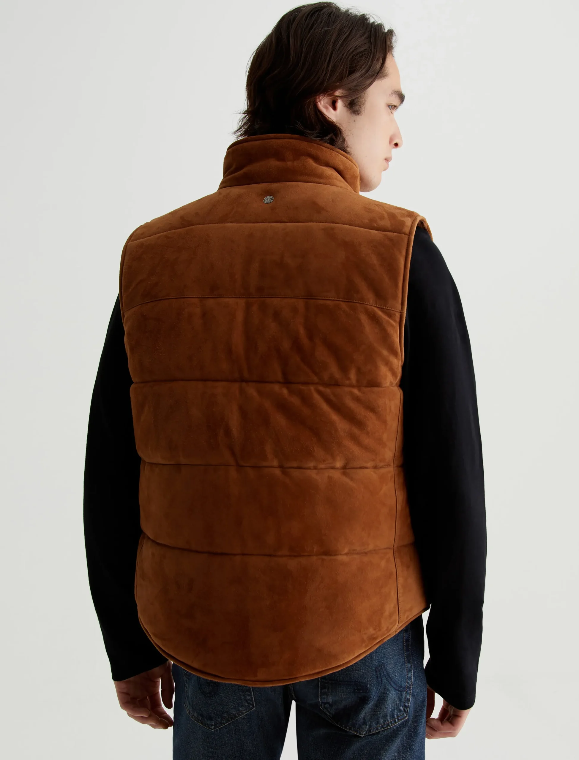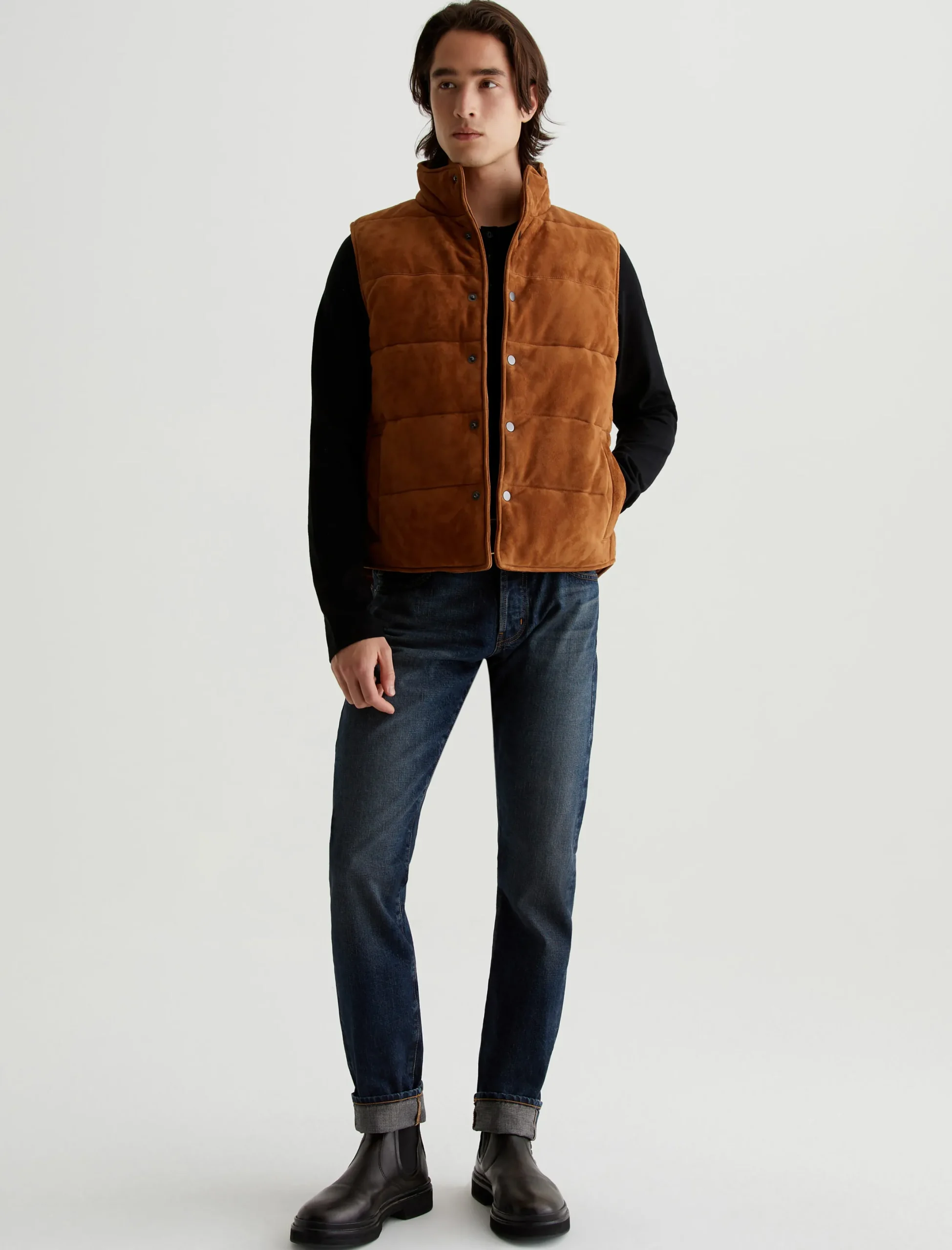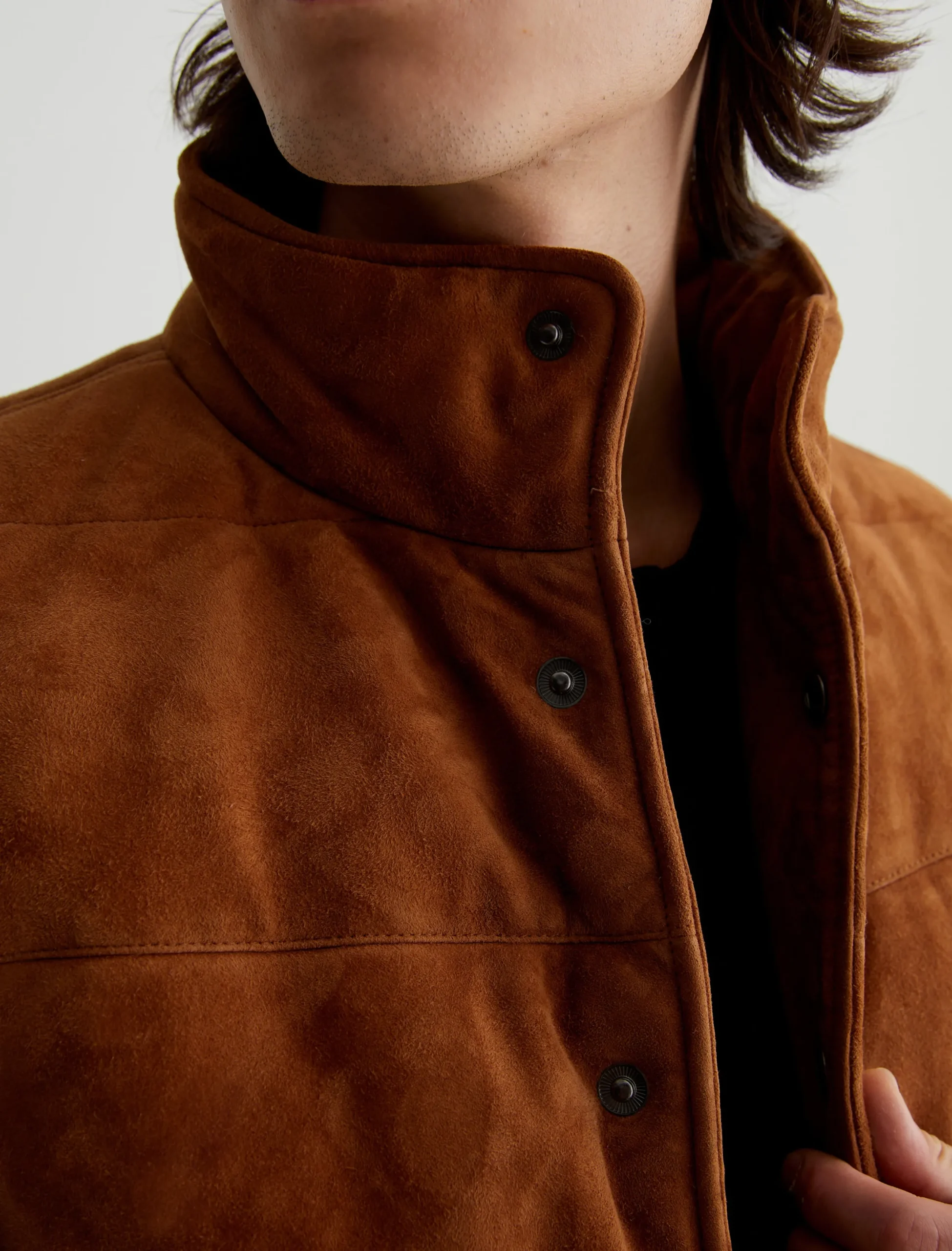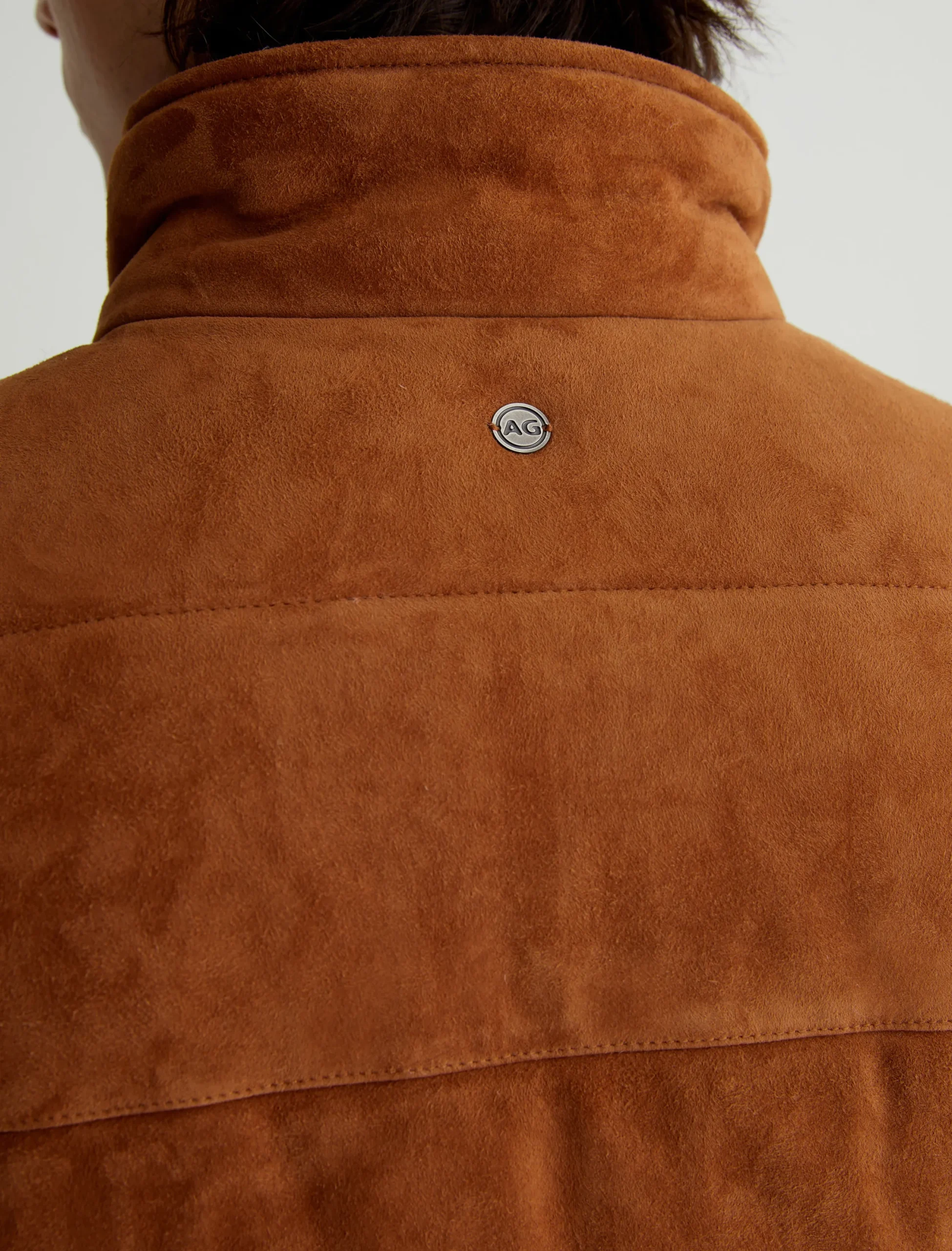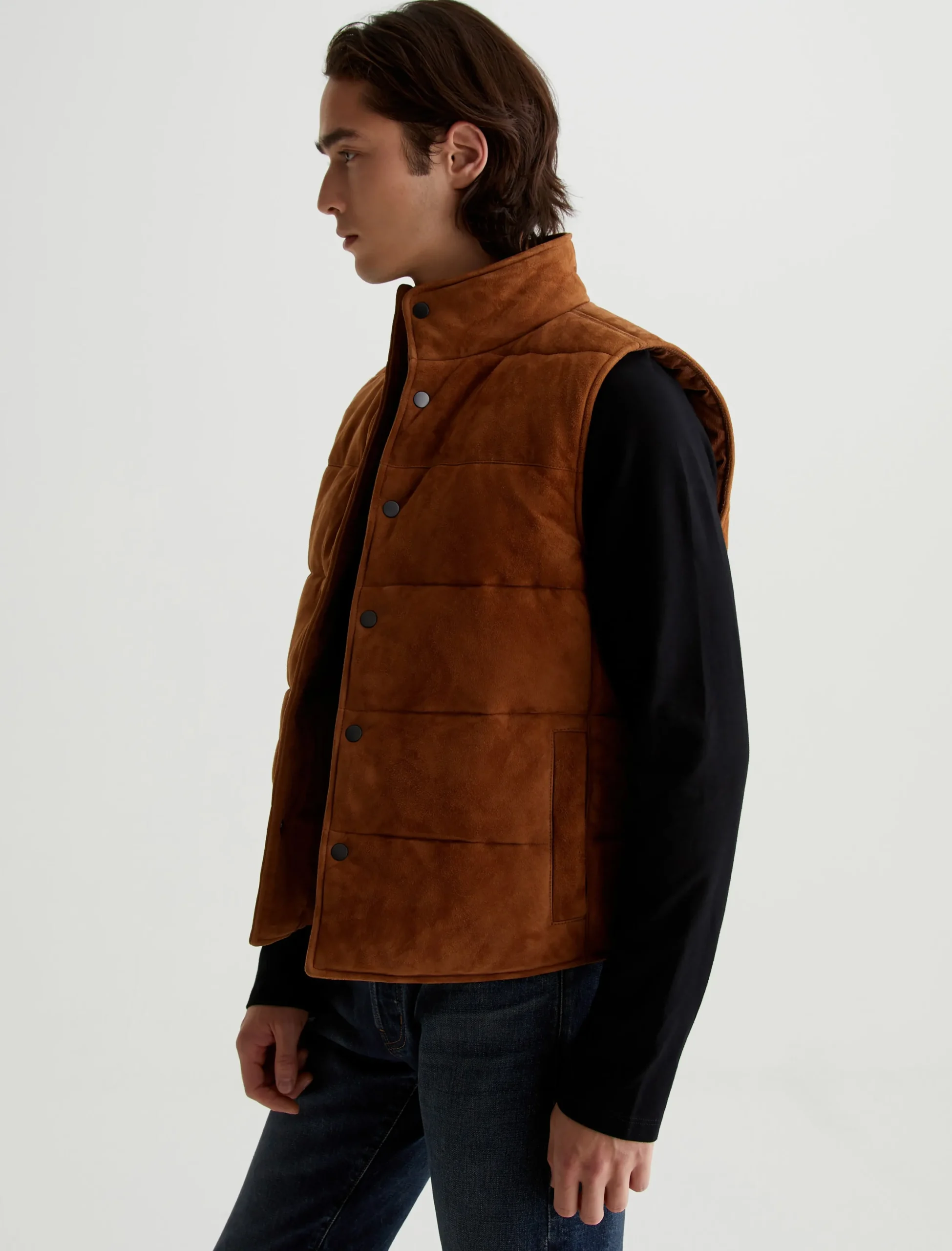 A sophisticated layer to slip on for extra warmth. The Neo Vest is crafted from supple suede in a rich cognac color. It’s got quilted construction with metal snap closures and concealed hip pockets for handy stashing.