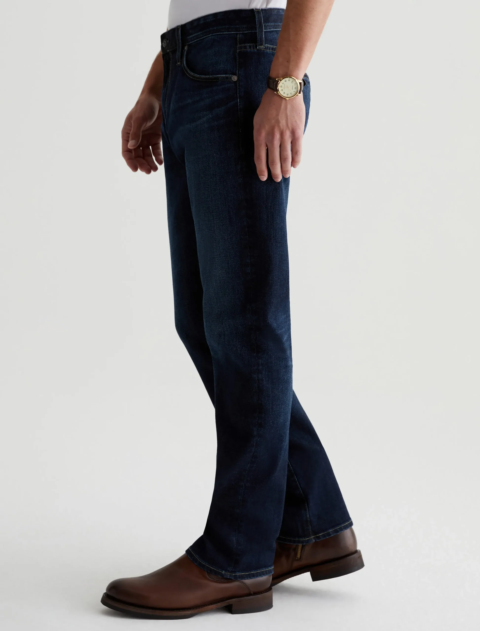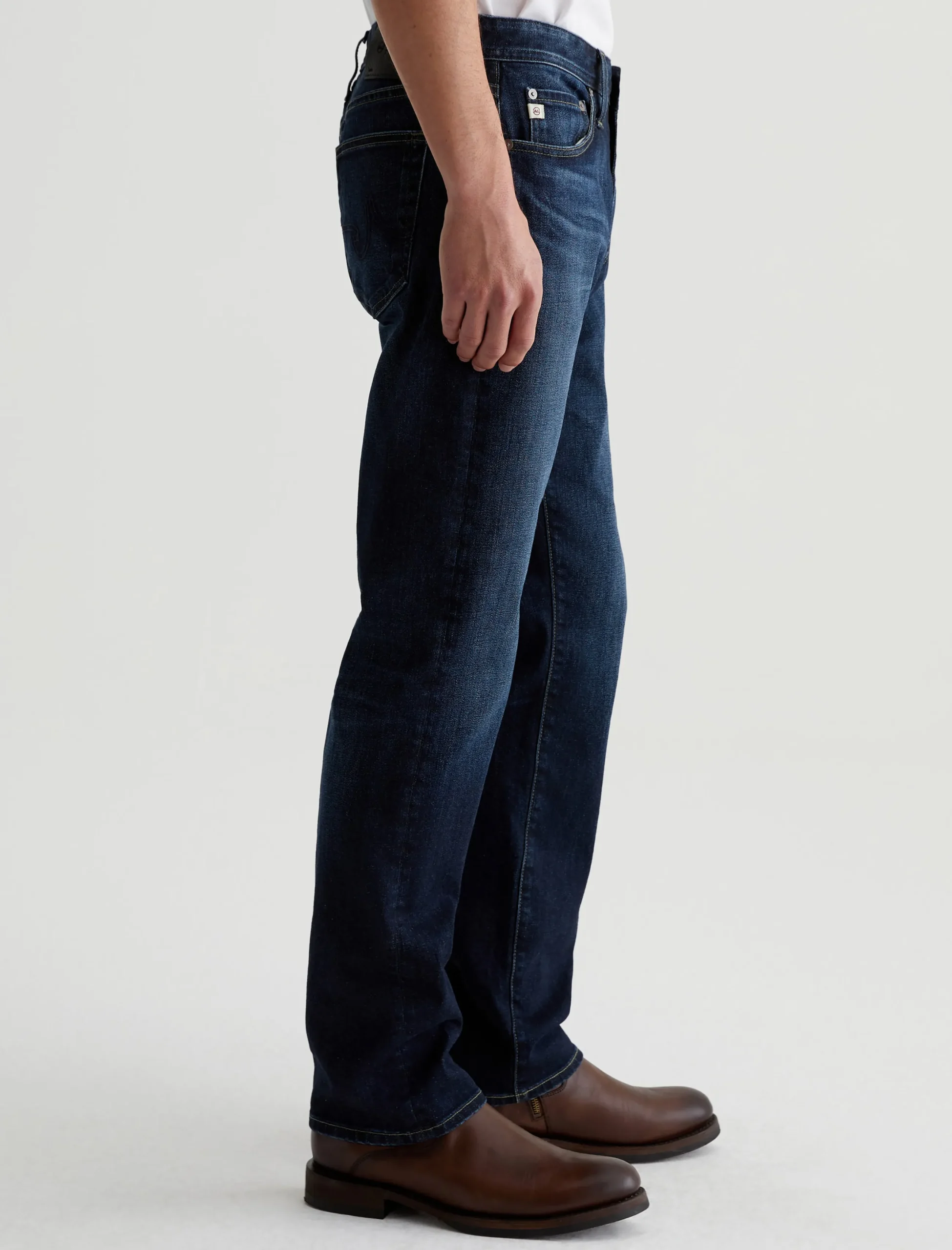 Our Protégé classic straight fit returns in 11.2 oz. New Union Dark Denim from Italy. Washed to a versatile indigo shade, it’s got an AG-ed™ 5-year fade with whiskering and contrast stitching. These men’s straight-leg jeans have an easy fit through the thighs and a clean finish at the leg openings.