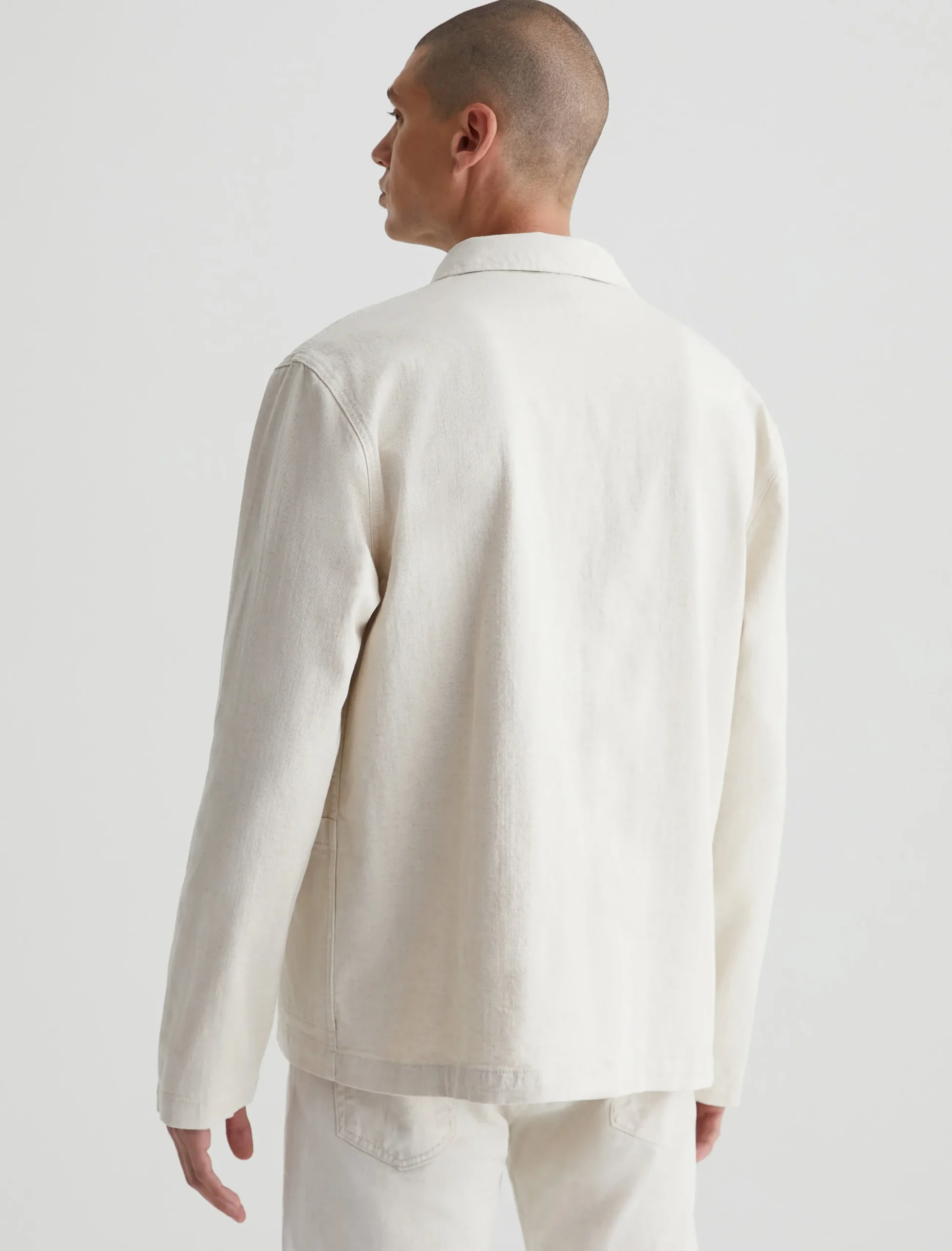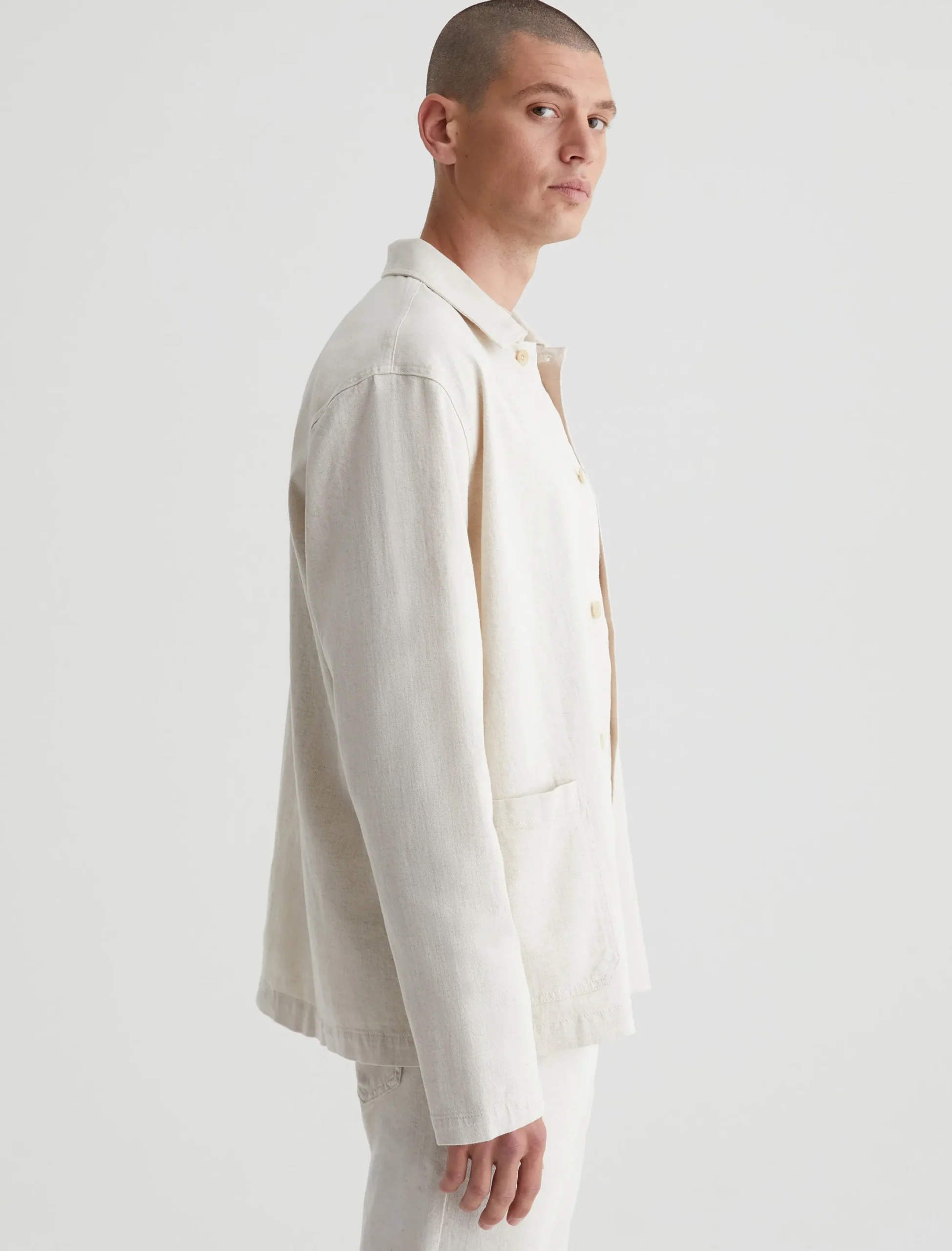 A lightweight layer inspired by the classic French chore coat. The Roari jacket has a loose fit with a slightly longer length and three patch pockets at the front. Fastened by tonal buttons at the front, it’s made from 7.8 oz. Simple Linen Twill with a touch of stretch.