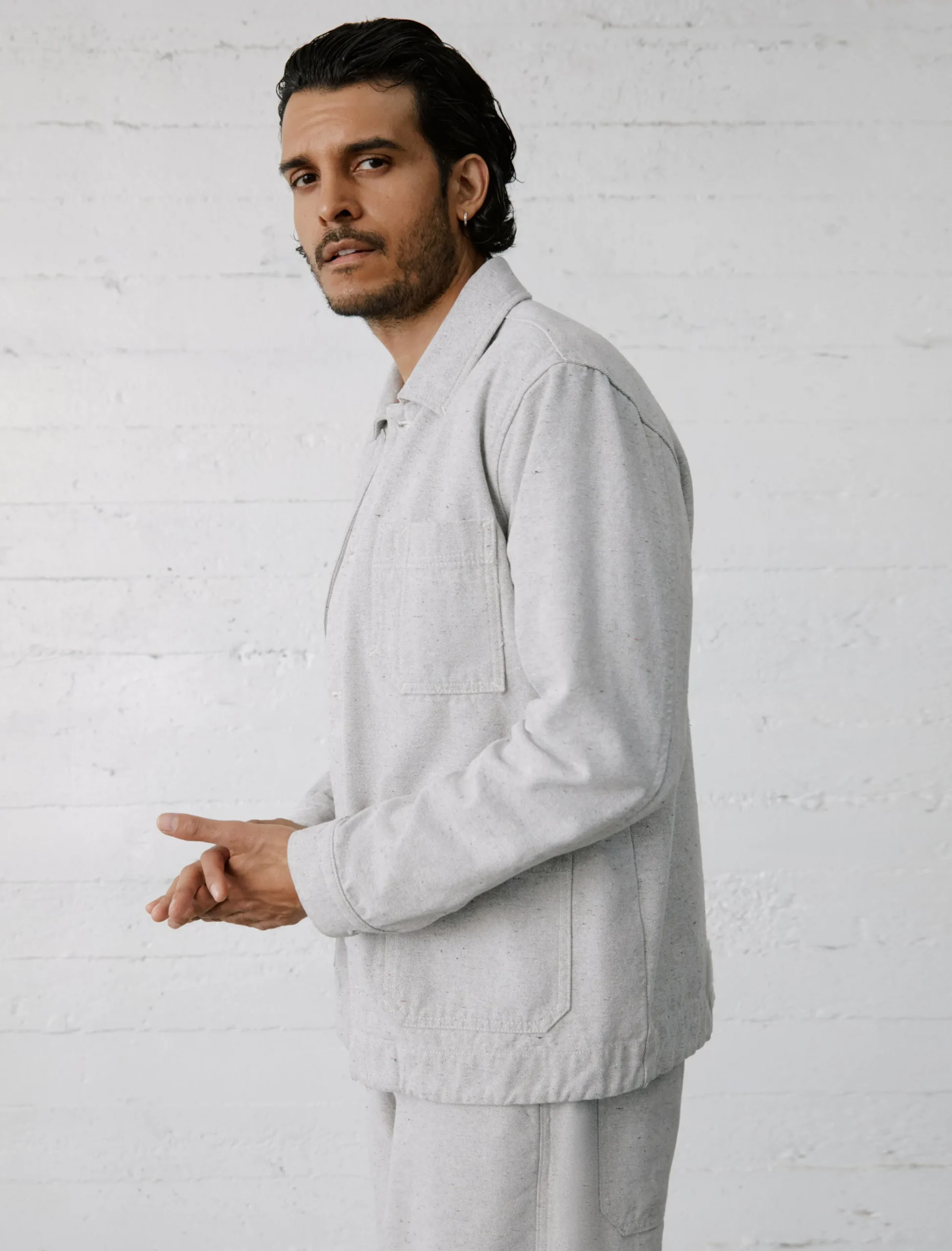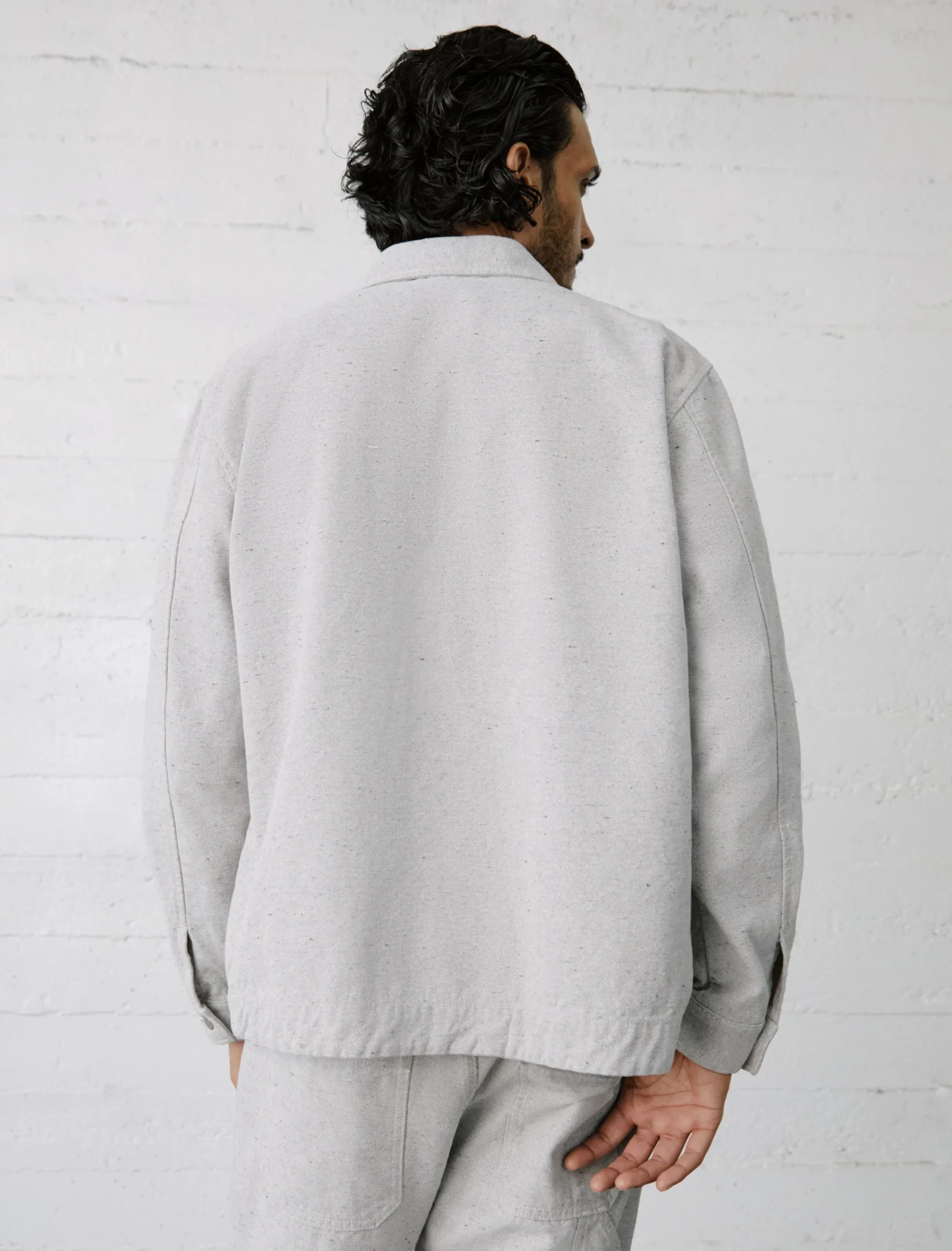 A modern take on the classic French chore coat. The Roari jacket has a loose fit with a slightly longer length and three patch pockets at the front. Part of our Circular Denim initiative from the Jean of Tomorrow collection, it’s crafted from 10.6 oz. Unify Taupe Twill made with recycled cotton and features colorful slubs from the post-consumer goods.