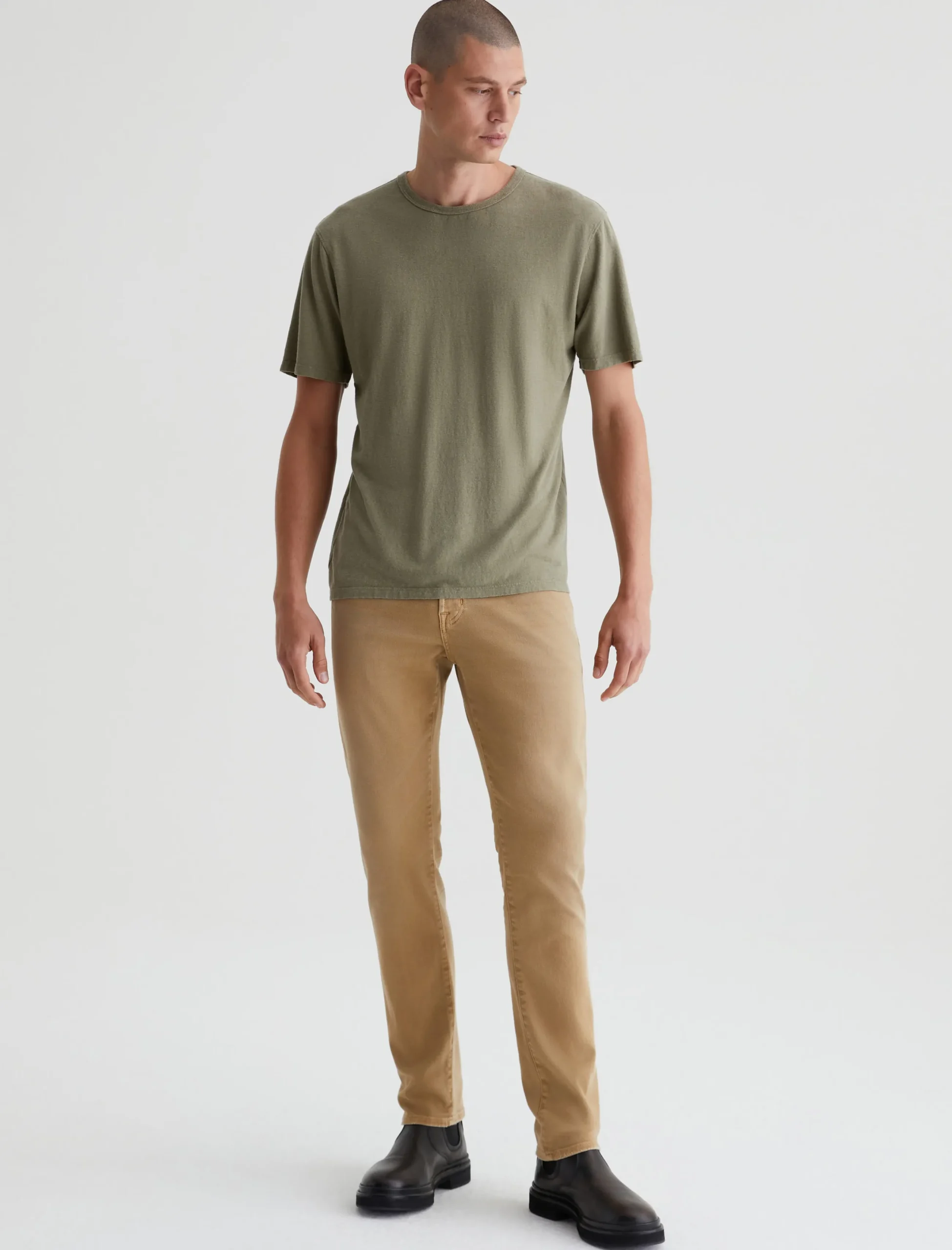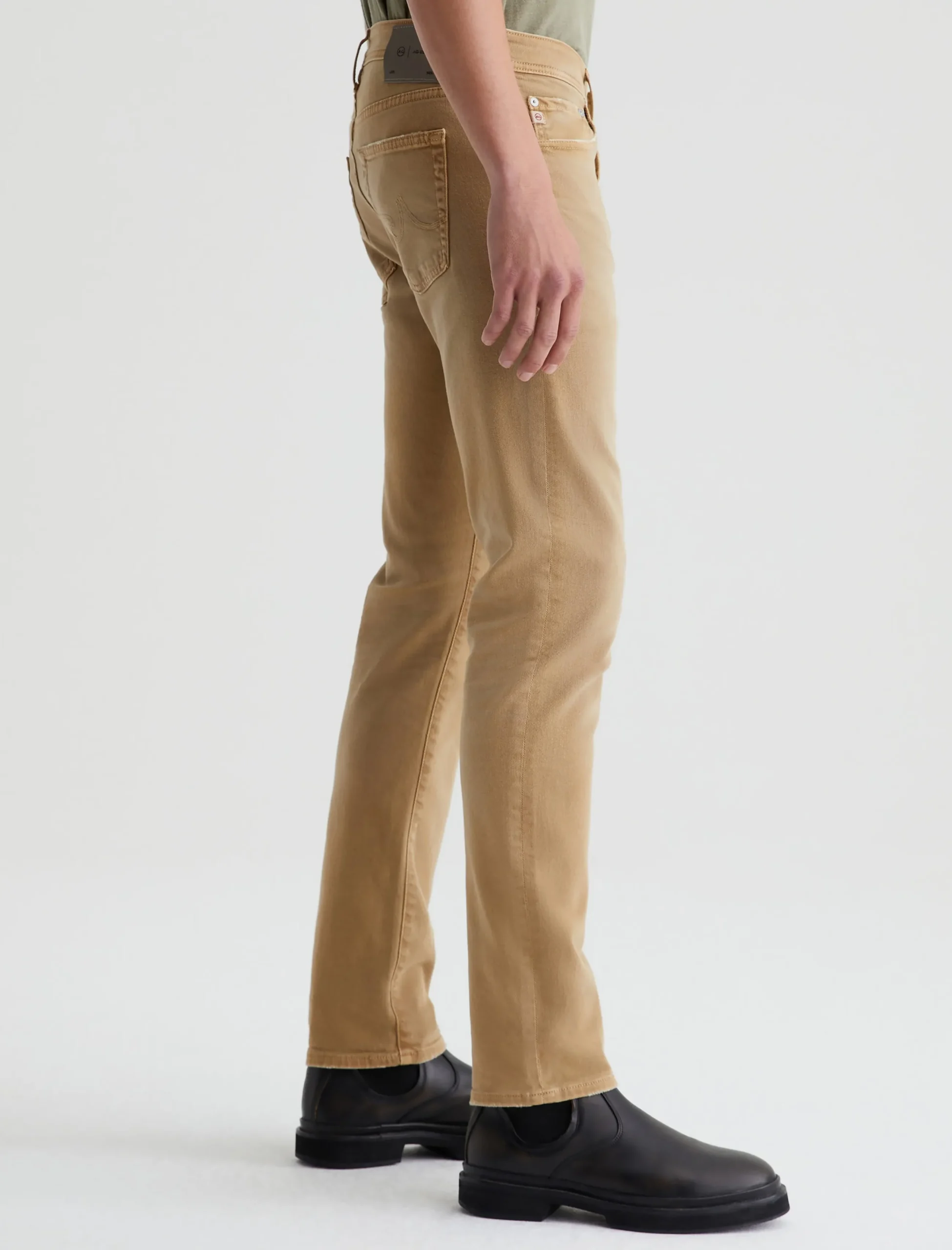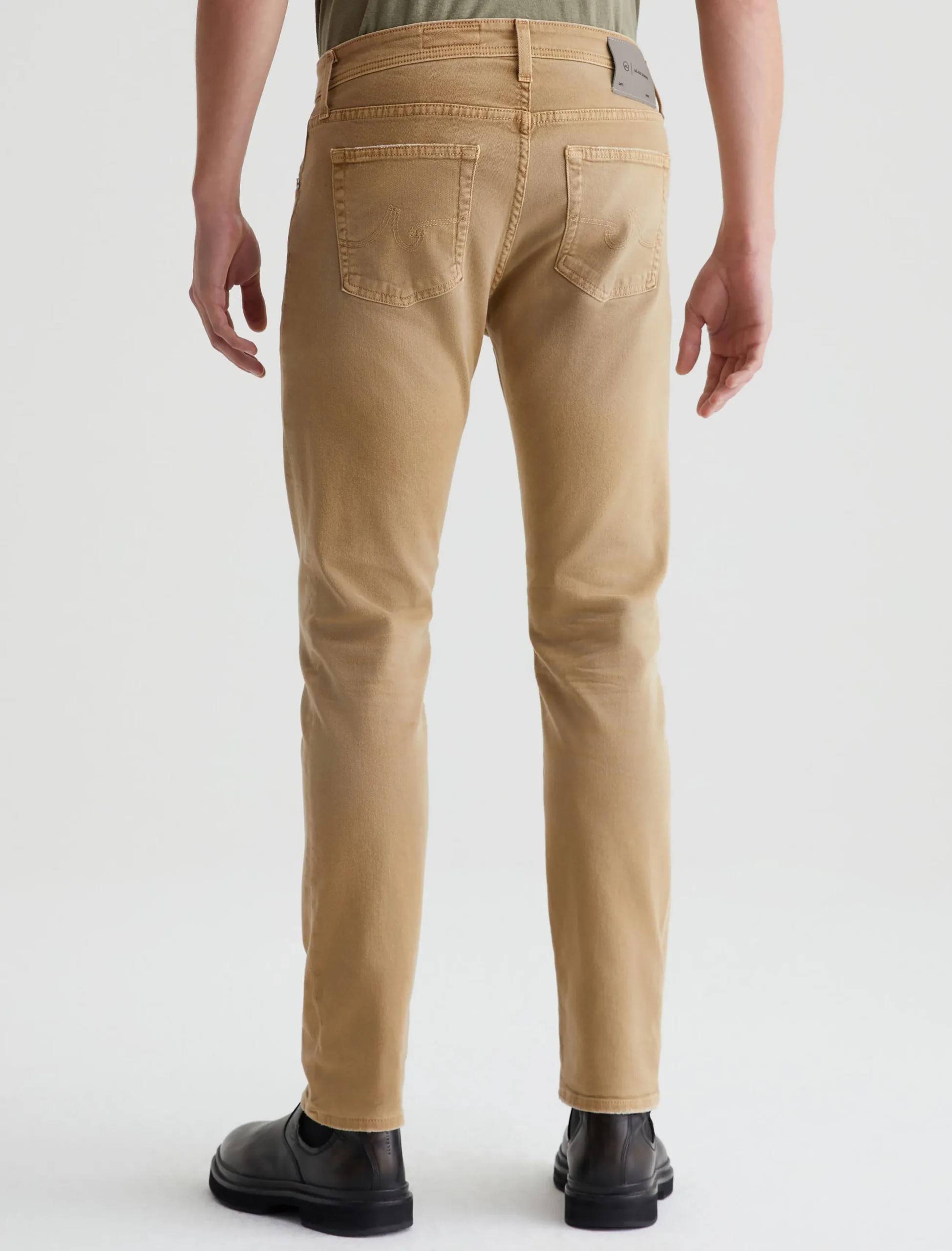Tellis is a modern slim fit for men, updated in a warm khaki shade that’s been AG-ed™ with fading and softly distressed pocket edges to emulate 7 years of wear. These five-pocket jeans have a fitted upper block and a tapered leg opening in 8.7 oz. Hyper Soft Bull Denim, our velvety left-hand twill fabric from the AG Cloud Soft Denim™ collection. The fabric’s special construction allows the yarns to gently relax and untwist for a supple feel that gets softer with every wear. Dual-elastic performance fibers offer elevated stretch and recovery.