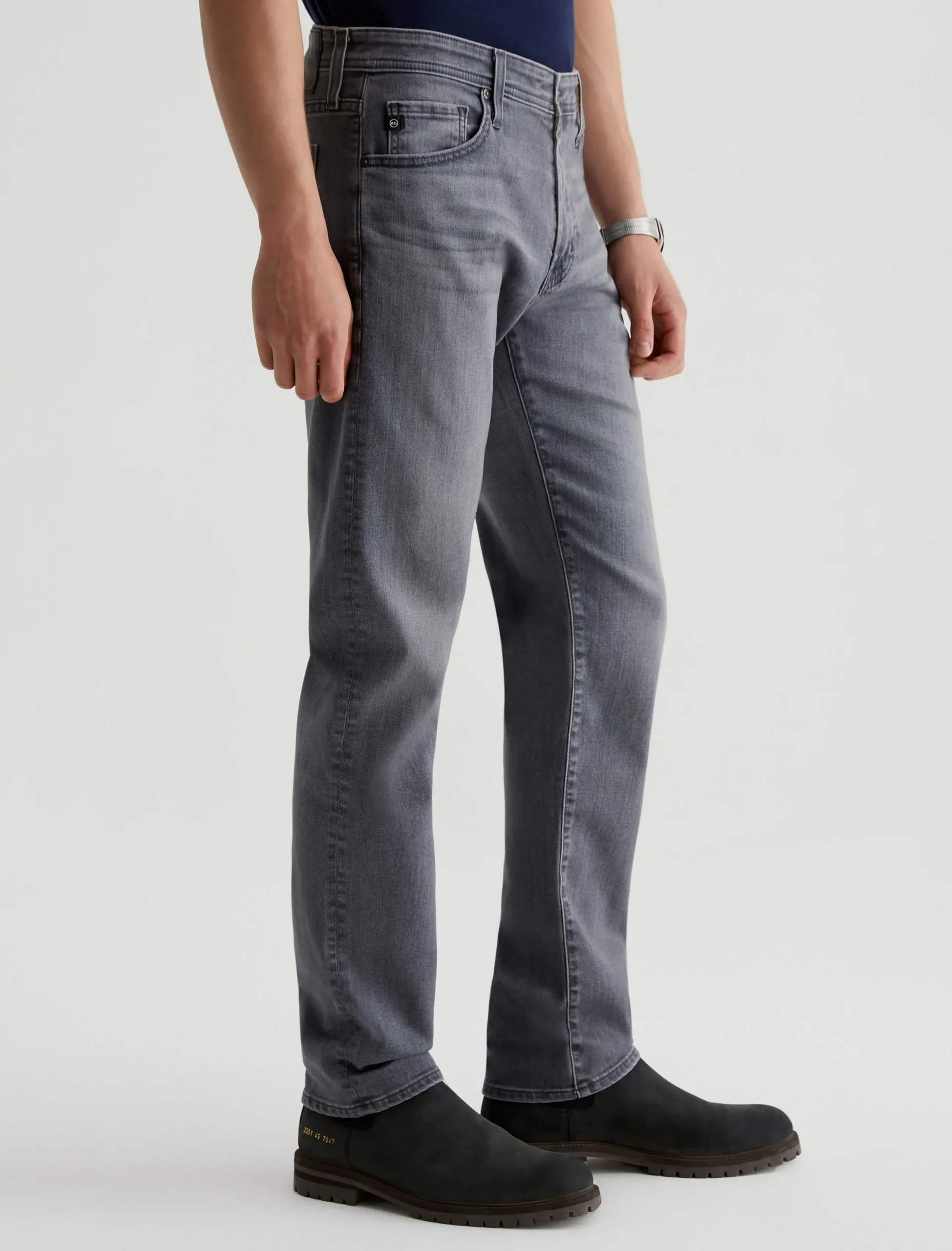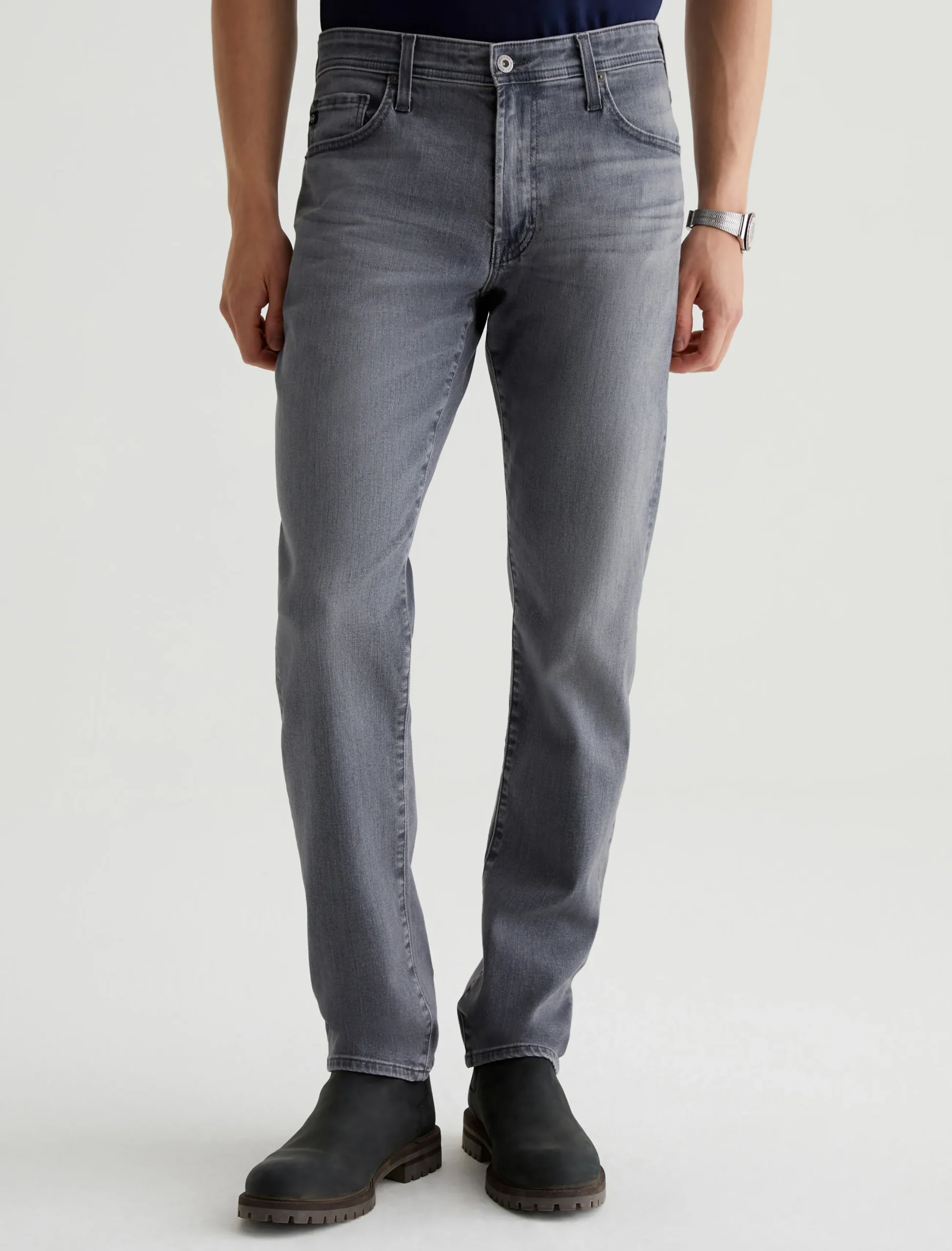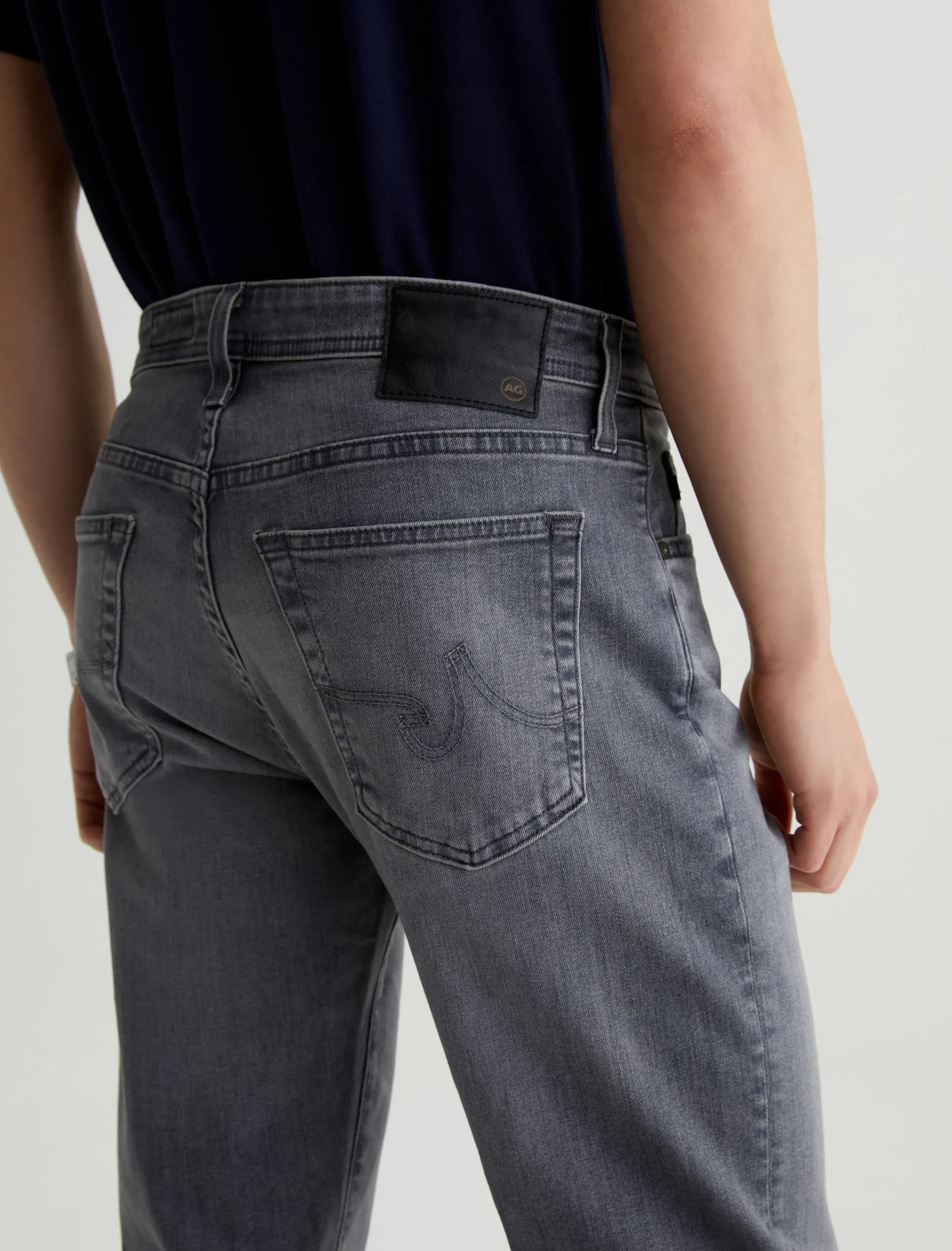 Tellis is a modern slim fit updated in a faded grey wash with hazy whiskering. Characterized by a fitted upper block and tapered leg openings, these five-pocket men’s jeans are designed in 10 oz. Ashen Stretch Denim for enhanced comfort. Our AG Vapor Wash™ process significantly reduces the use of water, chemicals, and energy to lessen environmental impact. Finished with a vegan and 100% biodegradable cellulose patch at the back waistband.