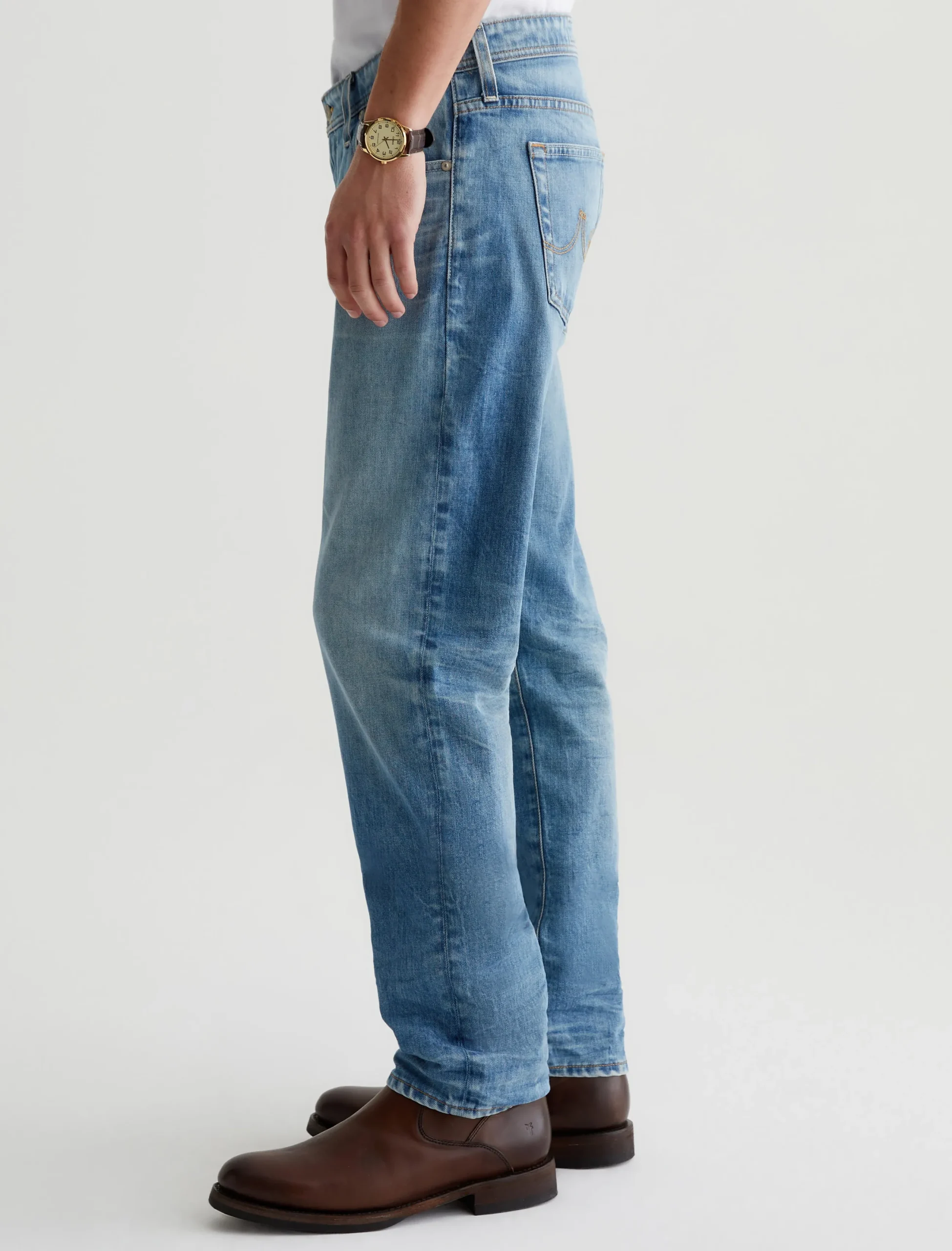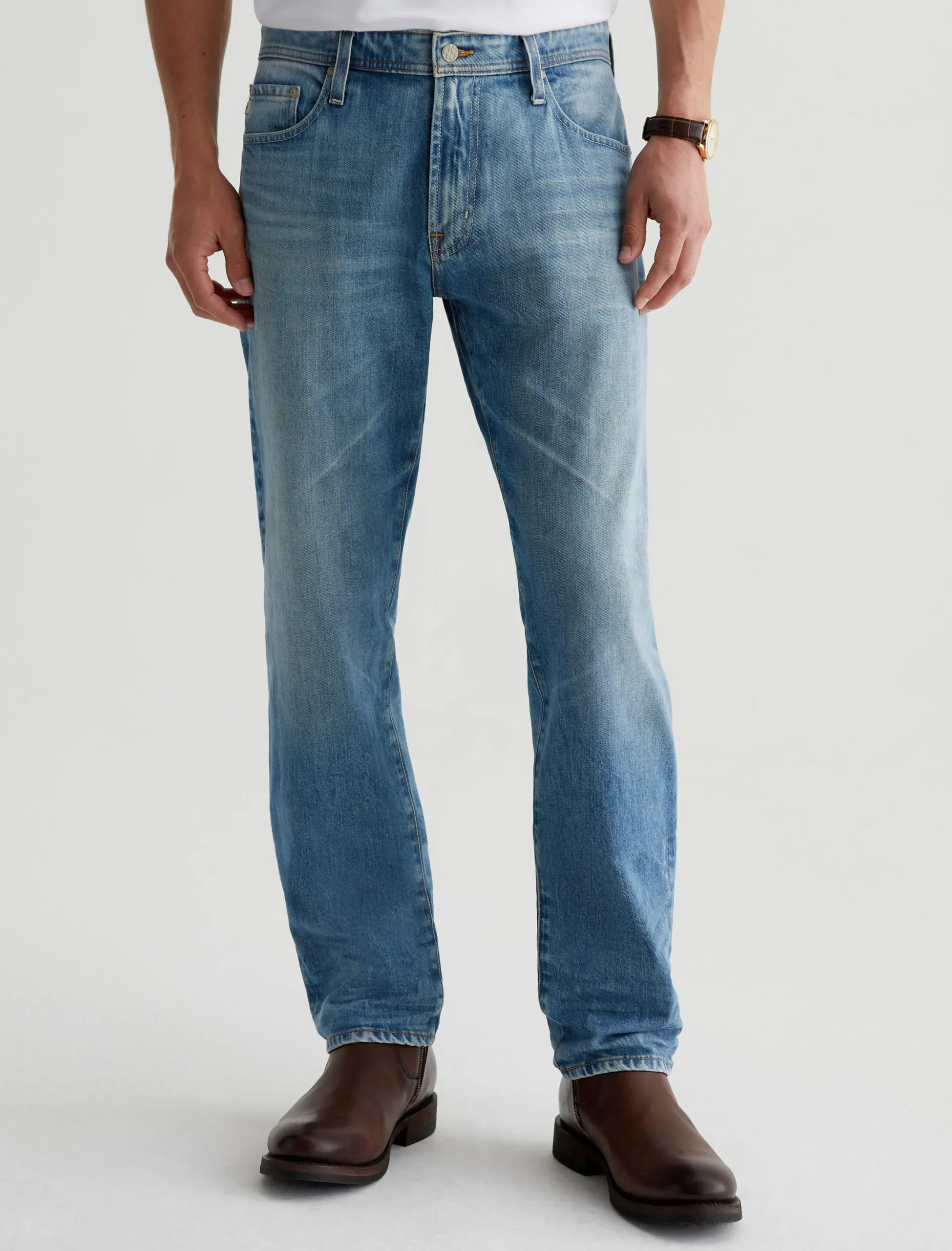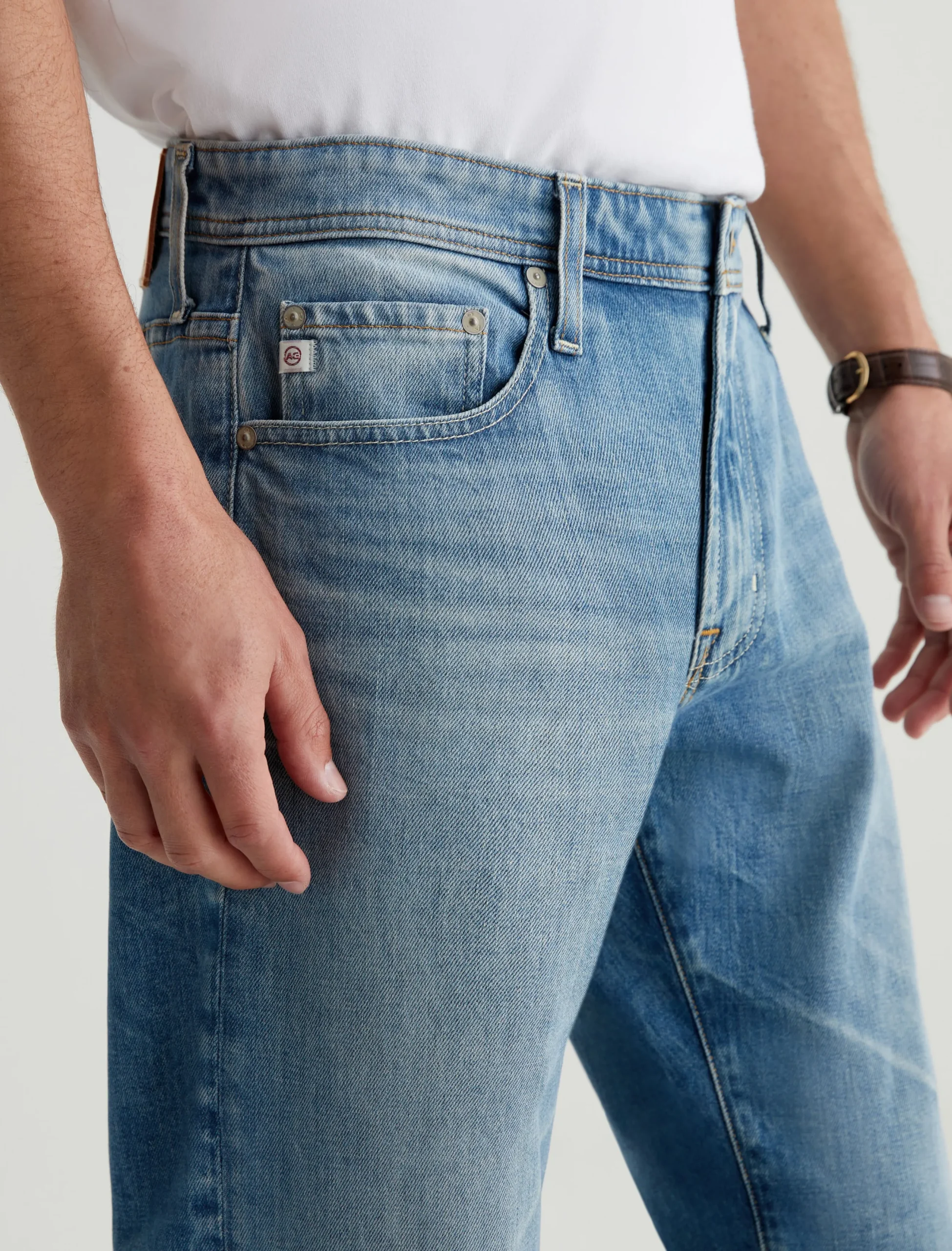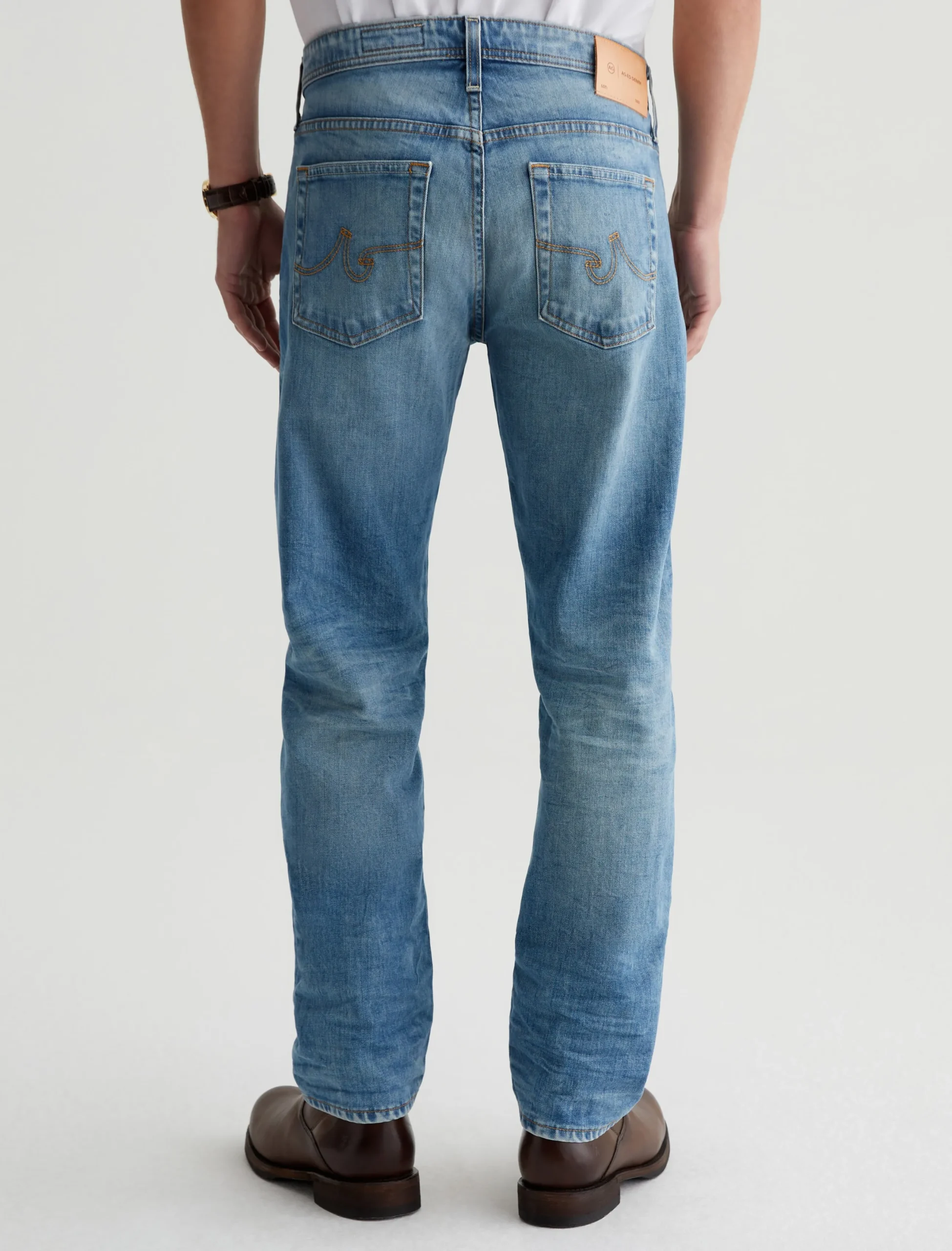 Tellis is our signature modern slim fit for men, updated here in a light blue wash characterized by an AG-ed™ 20-year fade. The style features a mid-rise waist, fitted upper block, and slim legs with a tapered finish. These five-pocket men’s jeans are cut from 11 oz. Journey Denim that’s blended with stretch for elevated comfort.