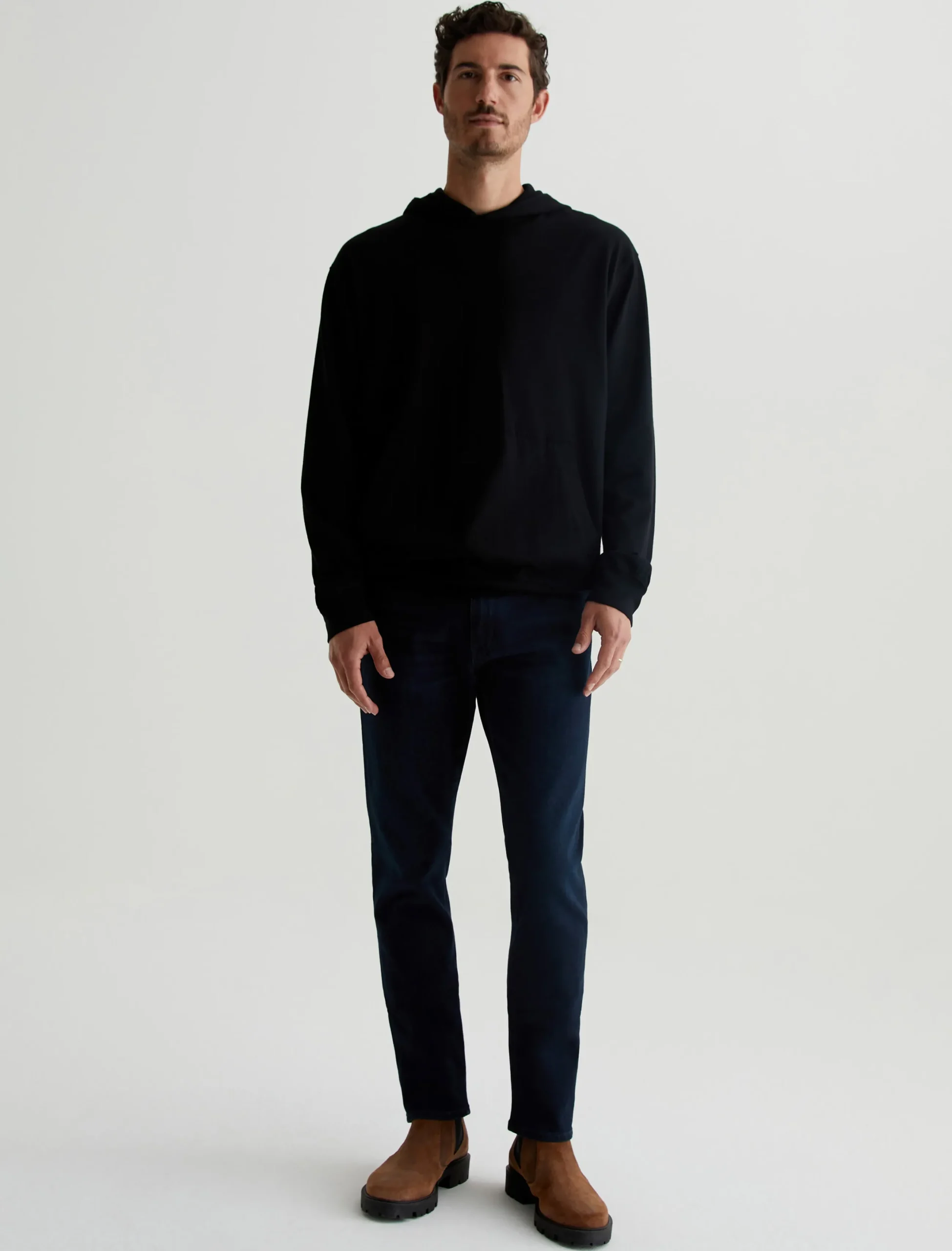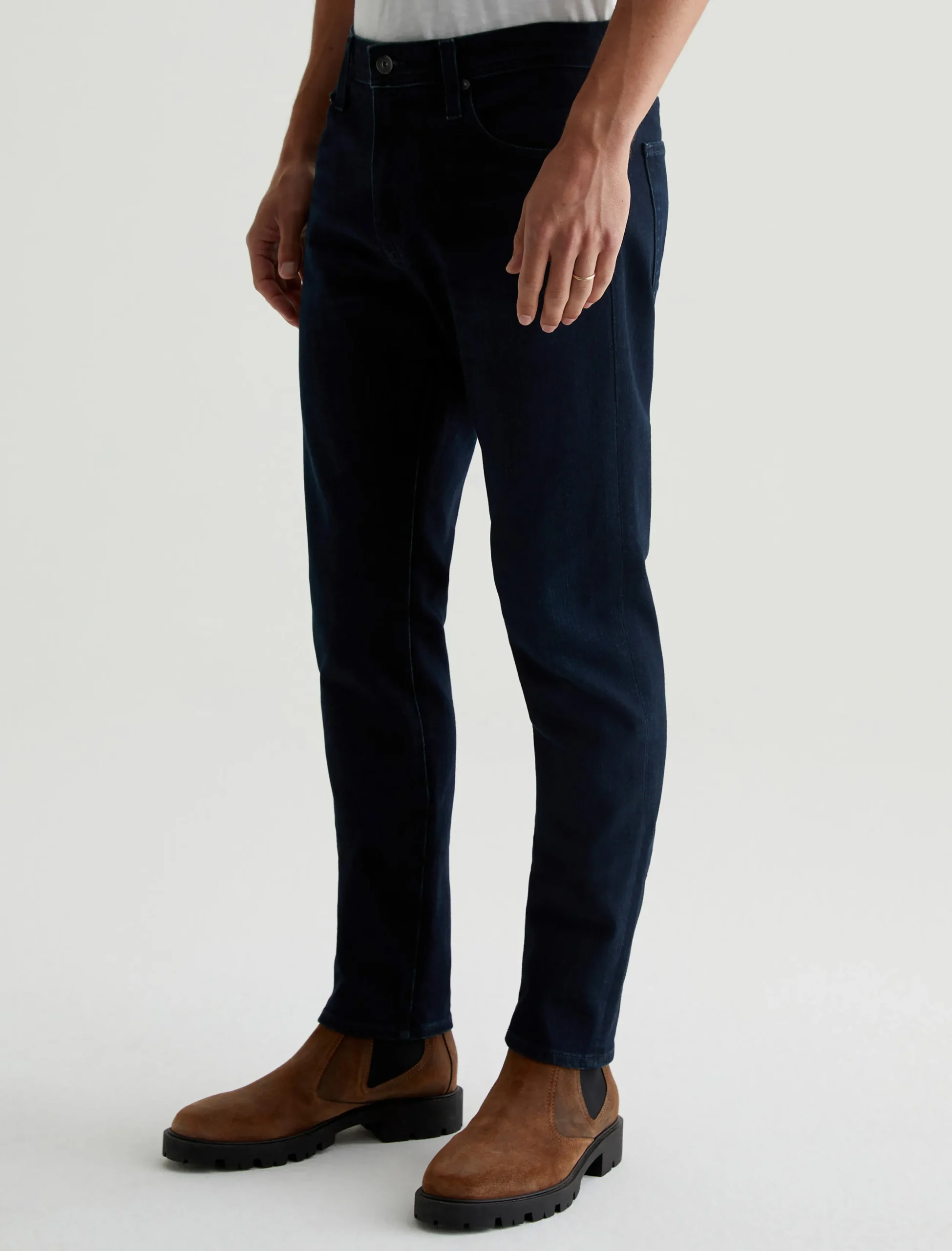 The Tellis modern slim jean for men features a fitted upper block and tapered leg opening—complete with a dark wash. This men’s pant is designed in 11.5 oz. 360° Denim.