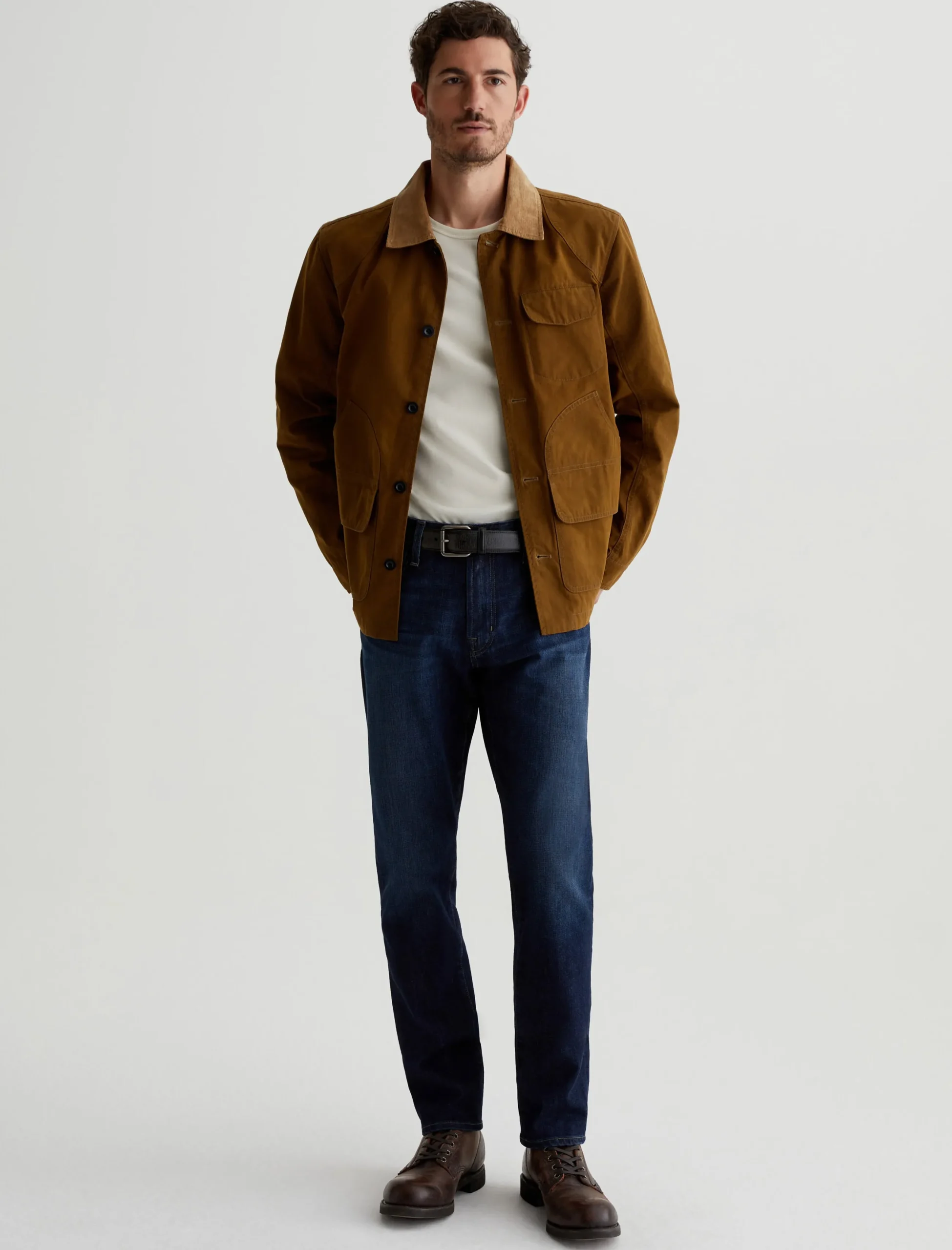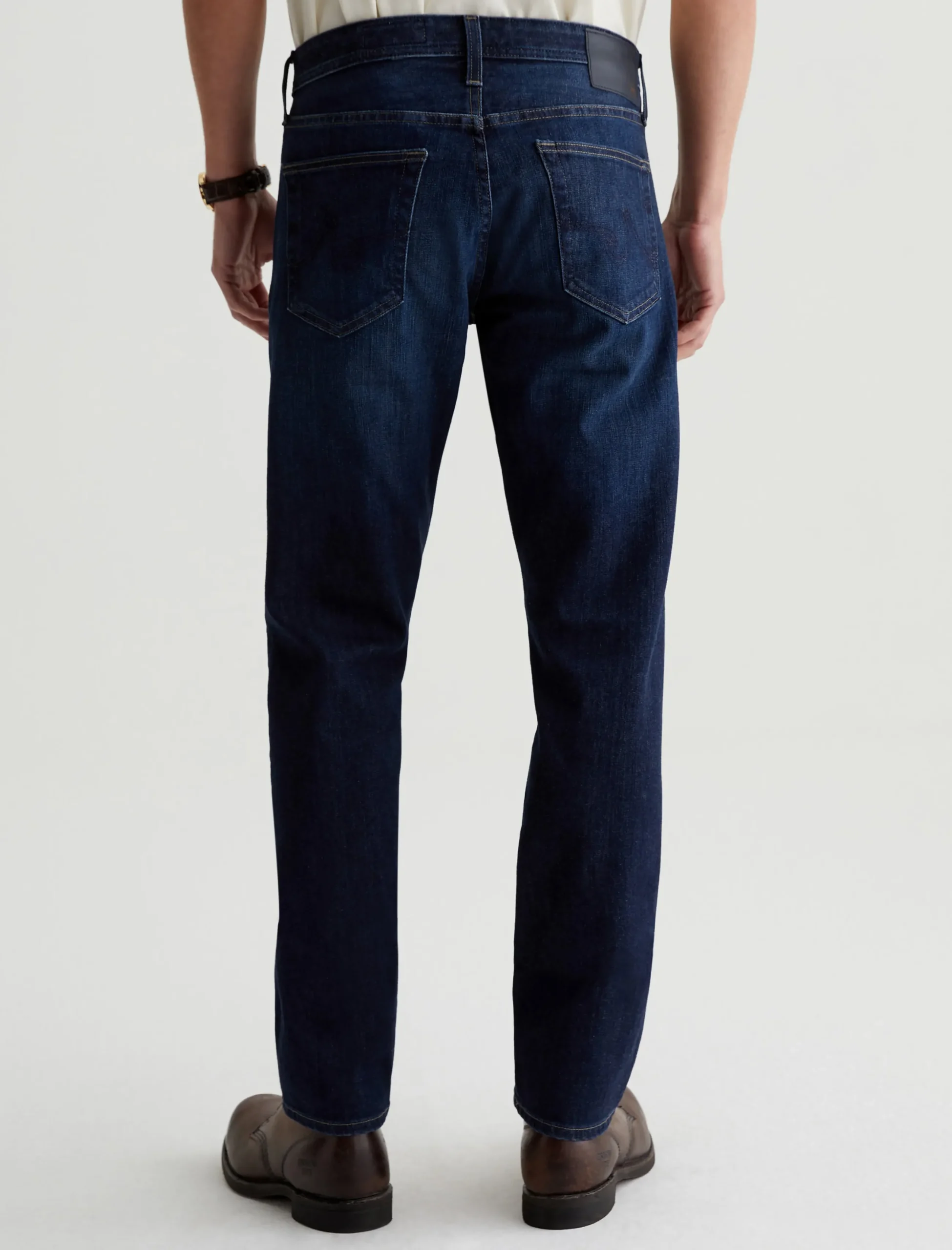 Our Tellis 360° is a modern slim featuring a fitted upper block and tapered leg opening. It’s done in a dark indigo wash with a bit of fading and whiskering. These slim-cut men’s jeans are incredibly comfortable and easy to wear in 11 oz. Flex 360° Denim from Japan.