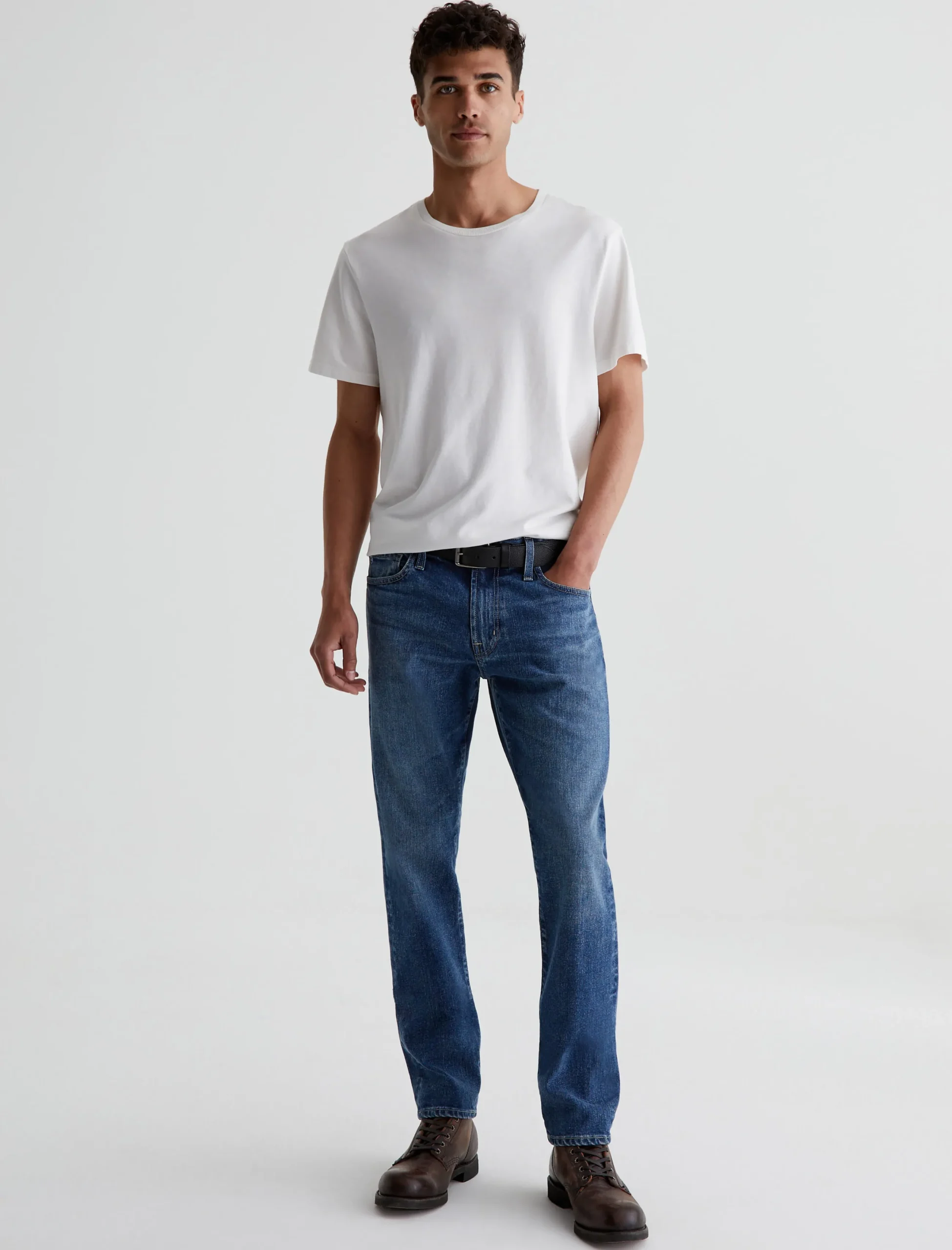 The Tellis modern slim fit is defined by a fitted upper block and a tapered leg opening. Part of our Circular Denim initiative from The Jean of Tomorrow™ collection, this pair comes in 12.5 oz. Revival Denim made from recycled AG jeans. It’s a soft cotton blend with a bit of stretch and a faded medium indigo wash.