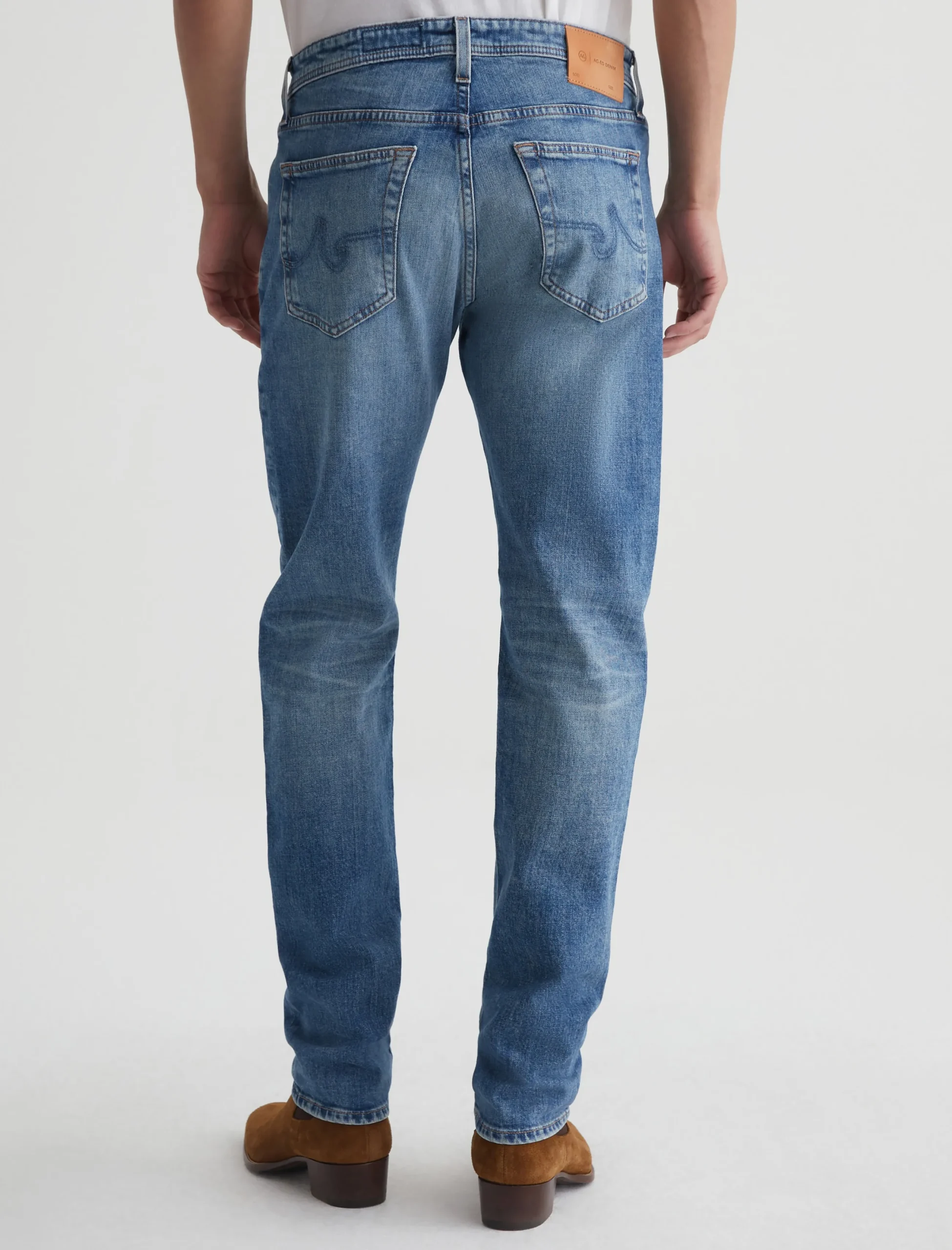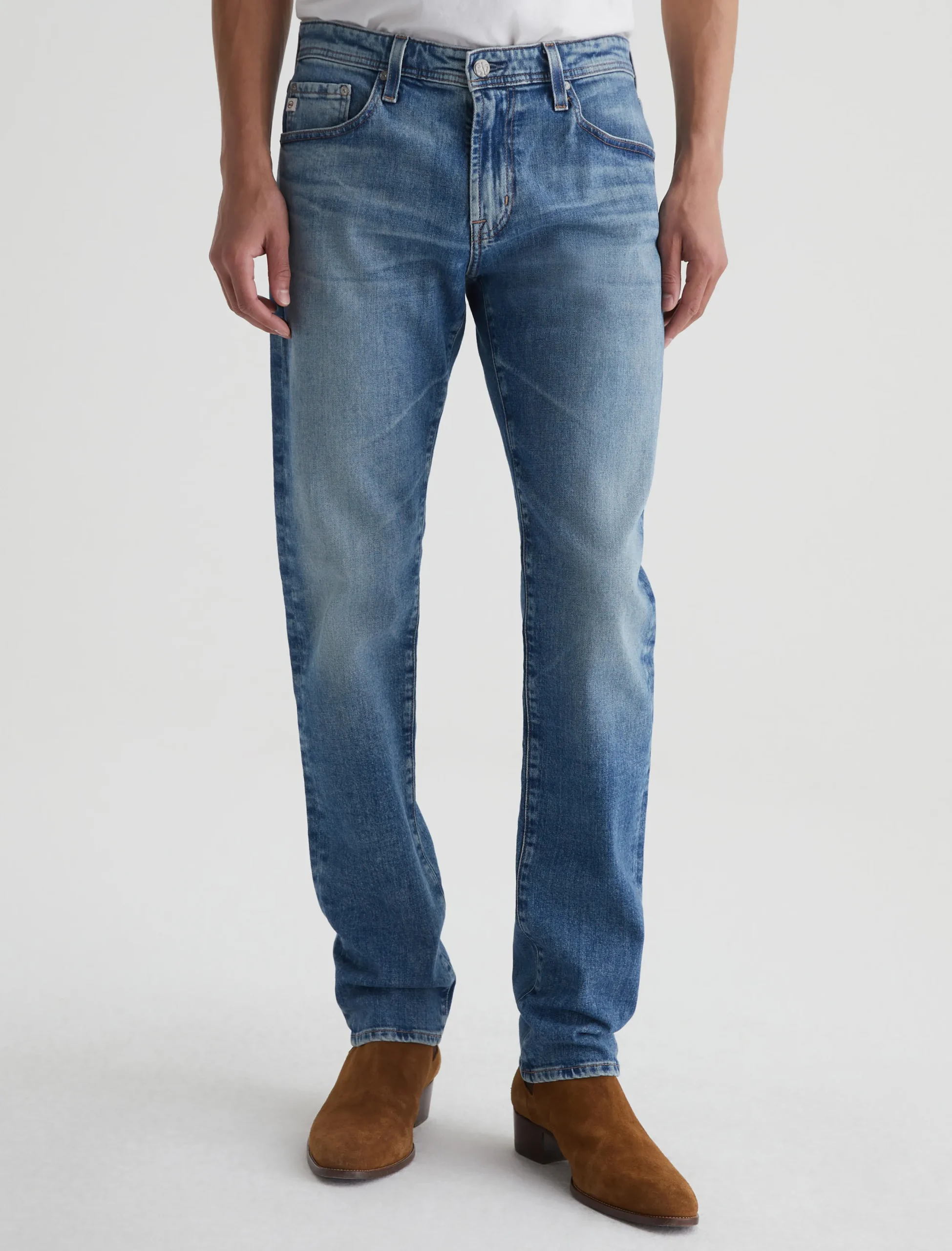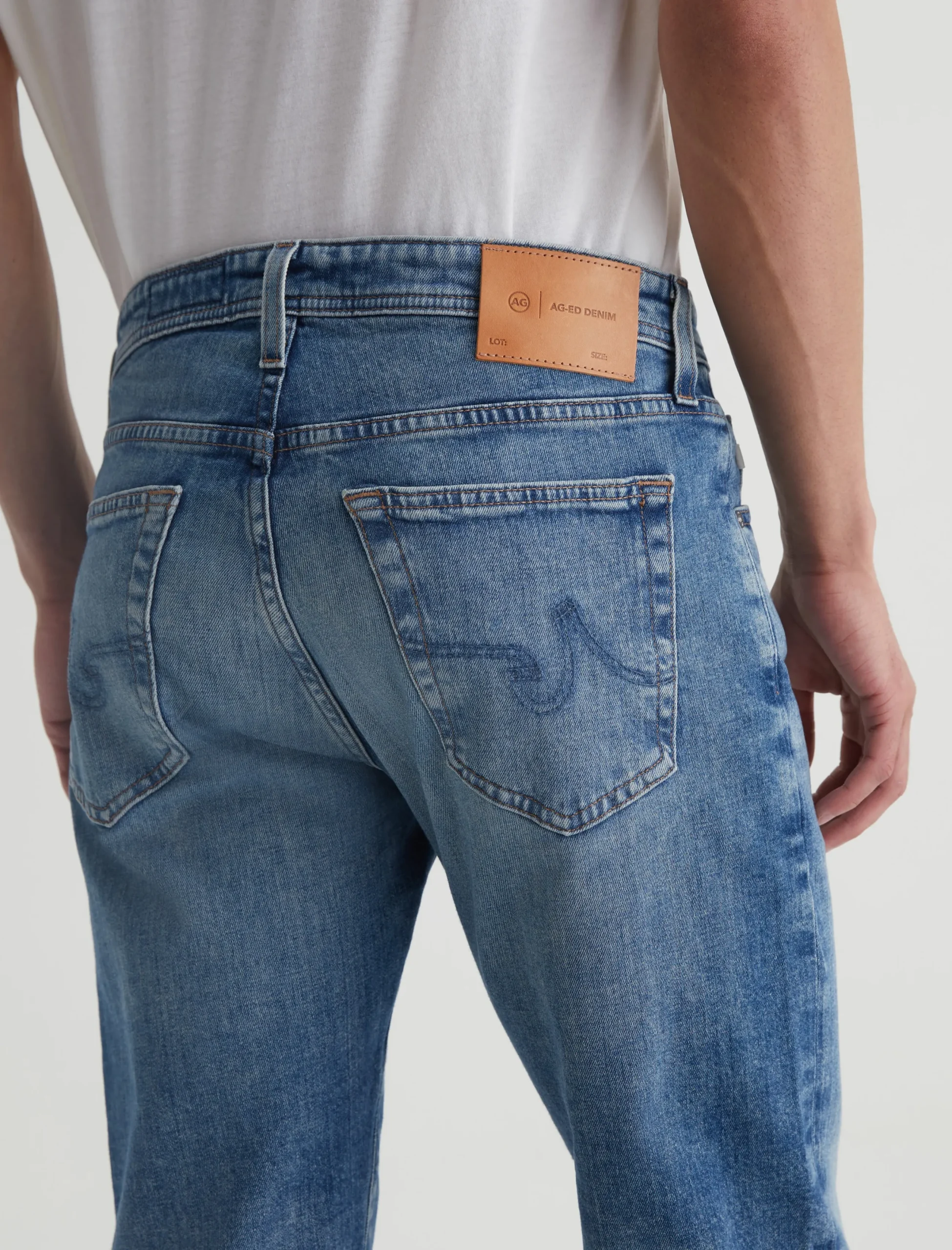 Tellis is our signature modern slim fit for men, updated here in a light blue wash with an AG-ed™ 19-year fade. The style has a mid-rise waist and a relaxed fit from hip to the knee before tapering at the leg opening. These 5-pocket men’s jeans are cut from 11 oz. Journey Denim that’s blended with stretch for elevated comfort.