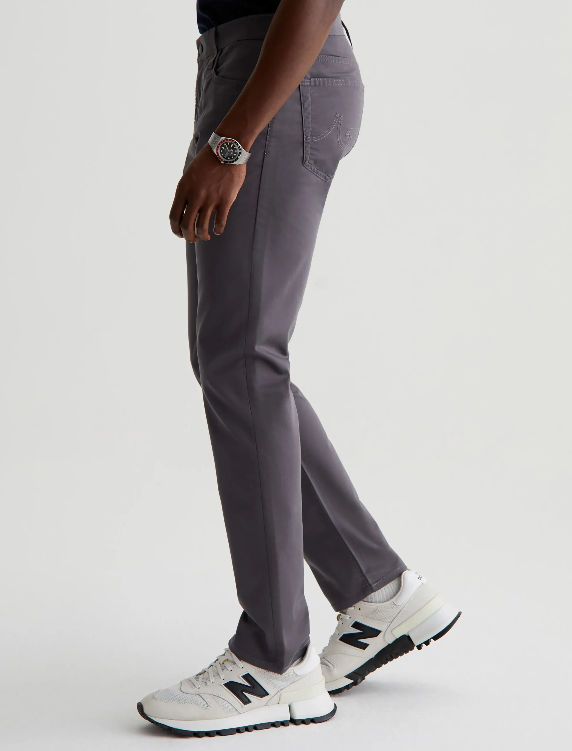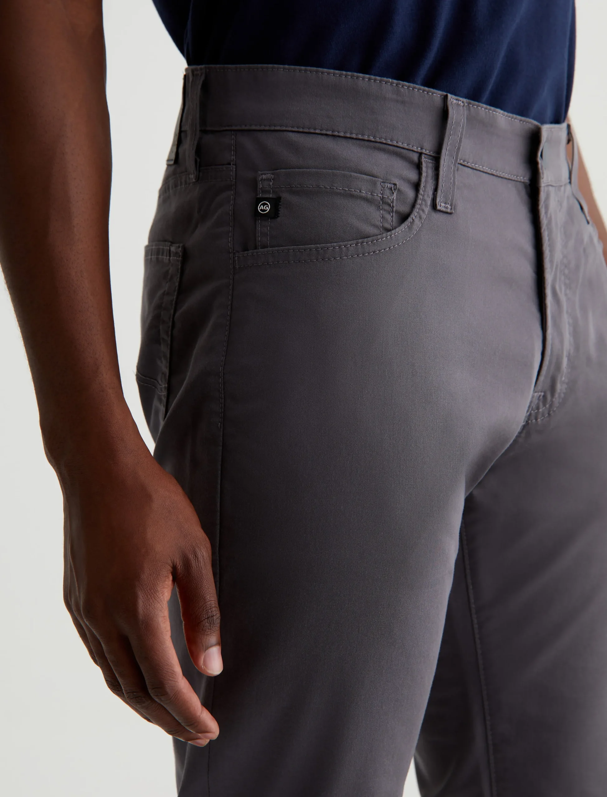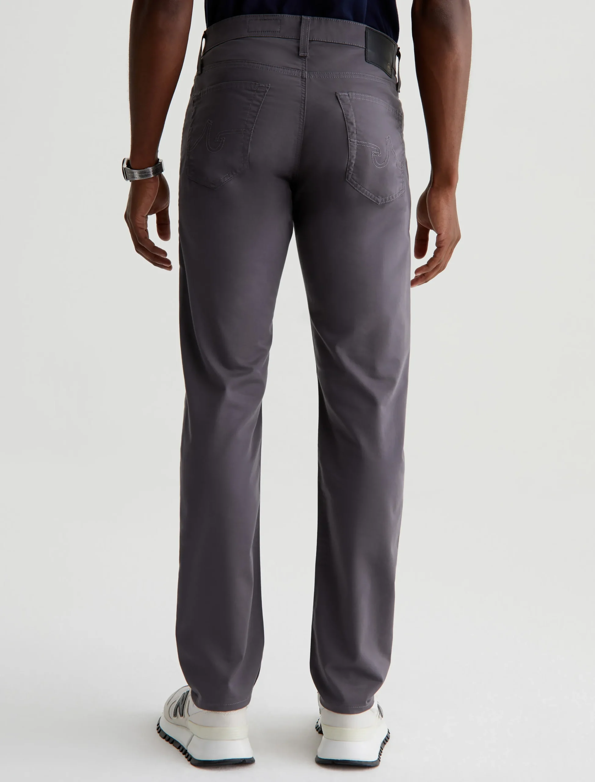 The Tellis is a modern slim fit updated in our new 5.9 oz. Commuter Performance Sateen with premium stretch for enhanced mobility. Featuring a fitted upper block and tapered leg opening, this five-pocket pant features a medium grey shade complemented by tonal stitching and a black shank button.